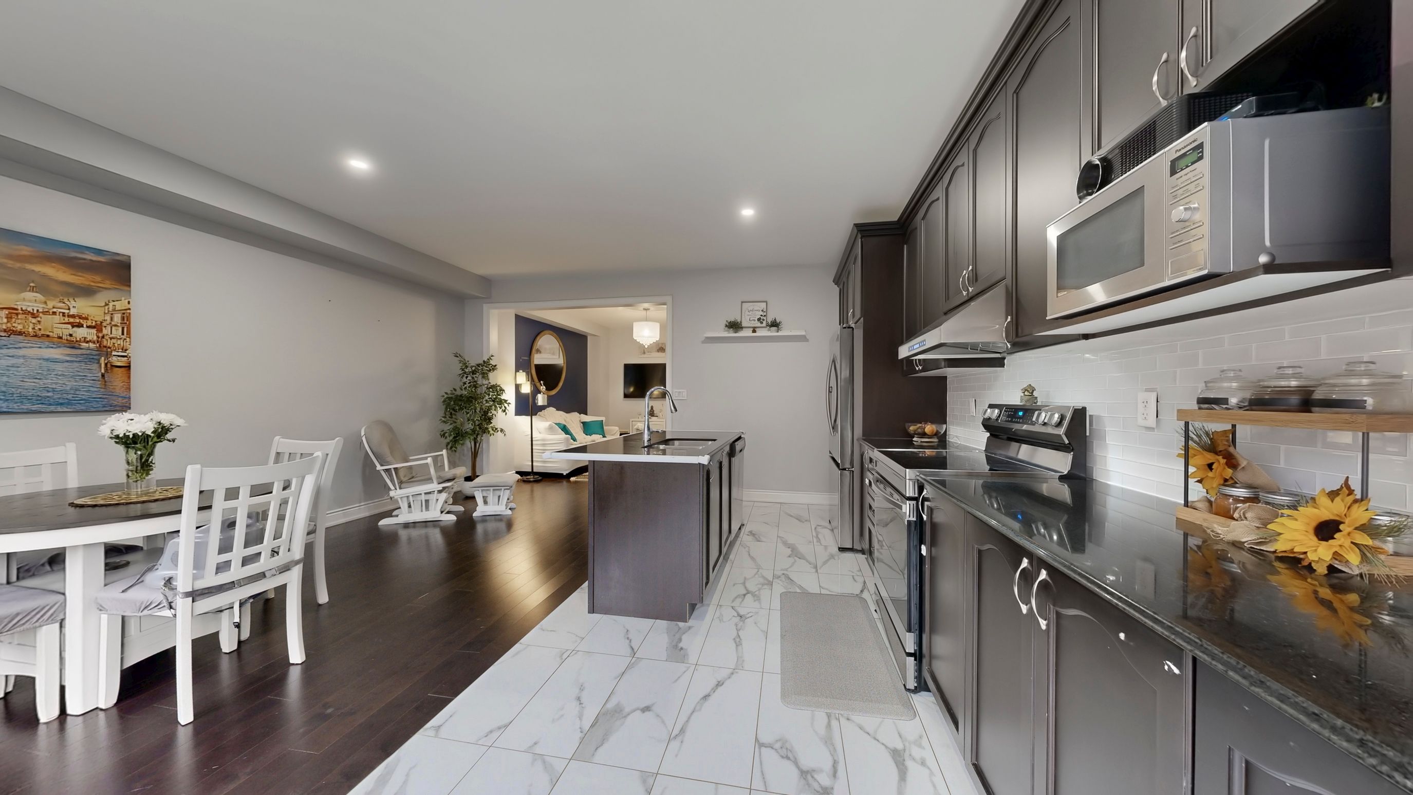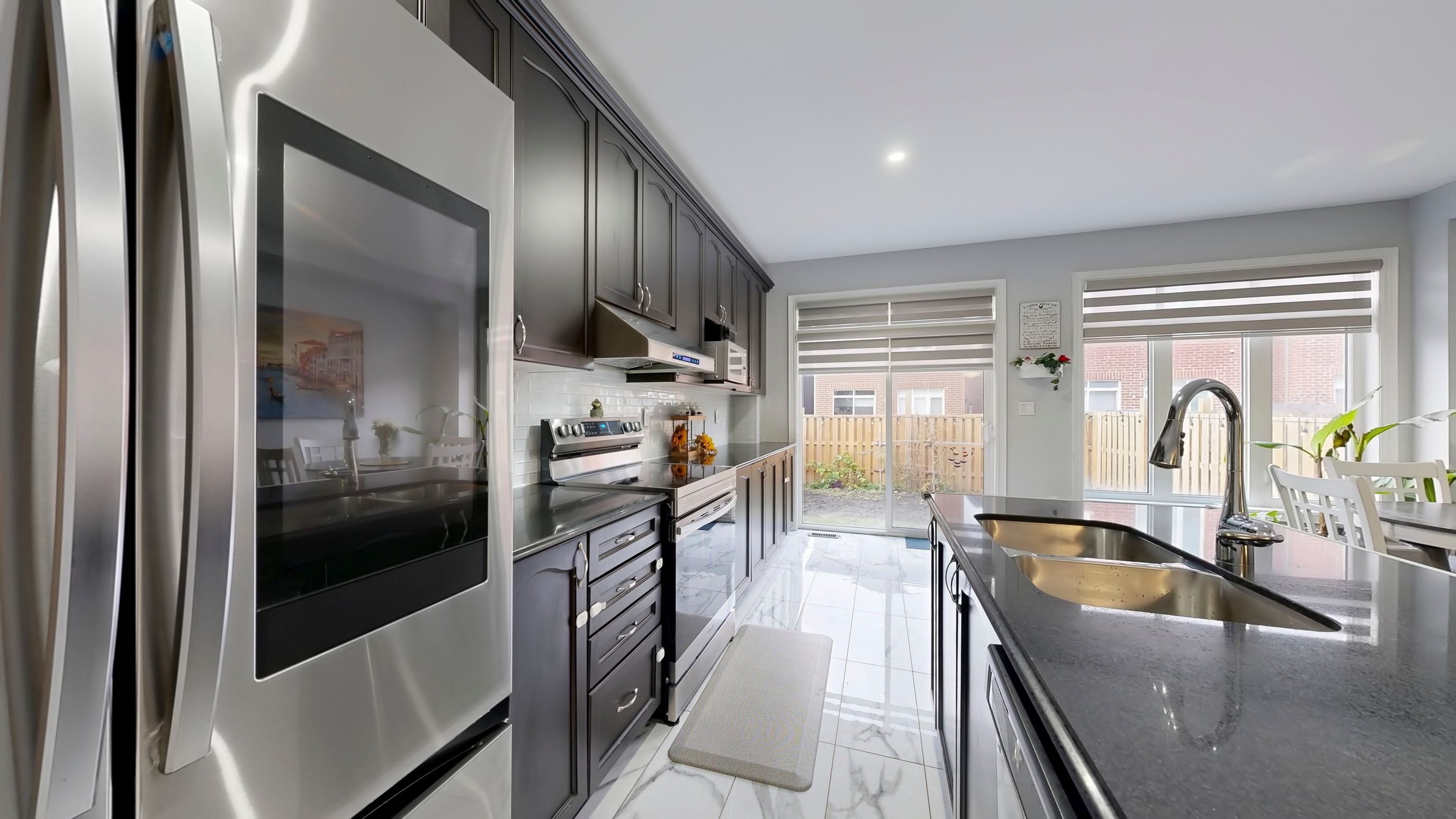 Stunning semi-detached linked home in cedarwood! 89 titan trail, markham 3+1 beds | 4 baths | 1,927 sq. Ft. Beautifully maintained home connected only by the garage. Bright open-concept main floor with hardwood throughout. Modern kitchen features a large island, granite counters, backsplash, stainless steel appliances, and 9' ceilings. Upper level offers 3 spacious bedrooms, including a serene primary suite, plus convenient upstairs laundry. Professionally finished basement with separate entrance, 1 bedroom, full kitchen, and 3-pc bath-ideal for in-laws or rental income. Fully fenced backyard and front interlocking with extra parking. Close to hwy 407/7, top schools, parks, costco, and all amenities. A must-see home in a high-demand neighborhood!