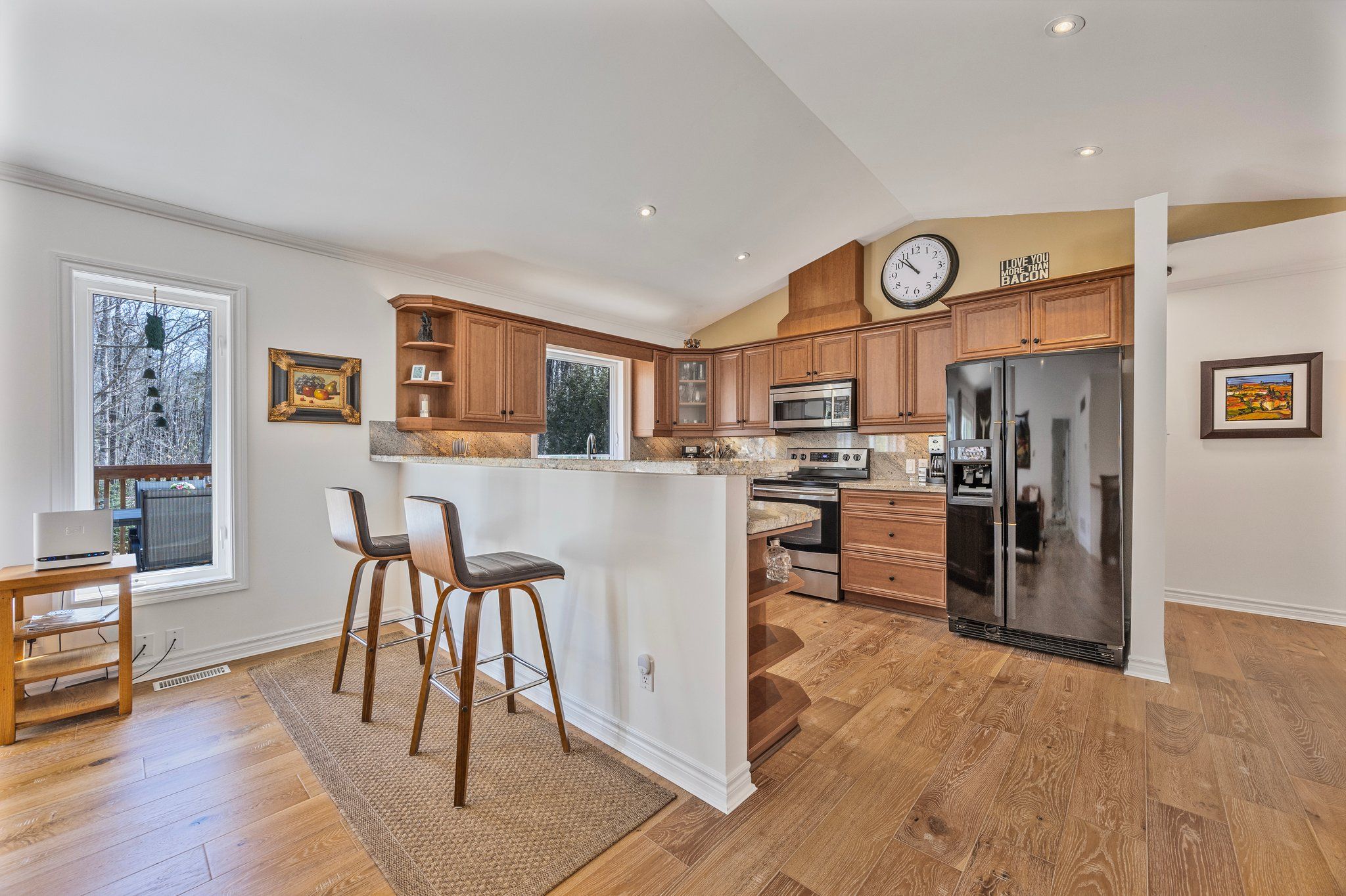 Your next chapter begins by georgian bay! Tucked against acres of tranquil forest and just a short stroll to the sparkling shores of georgian bay, this beautifully finished home delivers exceptional value and an even better lifestyle. Offering 3 bedrooms, 3 bathrooms, and a fully finished basement, it's perfectly suited for families, remote professionals, or those ready to embrace a quieter pace. Built in 2006 and thoughtfully updated, the home welcomes you with a bright open-concept main floor designed for effortless living and entertaining. Cozy up by the gas fireplace, or enjoy year-round comfort with forced-air gas heating and central a/c. Recent improvements include newer main-level windows and updated vinyl flooring in the lower level. The fully finished basement is a standout feature, filled with natural light from oversized windows and offering two spacious family room areas, a third full bathroom, and a flexible bonus room-ideal for a home office, guest suite, or creative space. Set on a deep, partially fenced lot, the professionally landscaped backyard feels like your own private retreat. Picture summer nights by the firepit, quiet mornings with coffee in hand, and peaceful moments surrounded by nature. Enjoy easy access to public beaches just steps away-perfect for swimming, kayaking, or paddleboarding-and take advantage of the nearby charm of lafontaine, only minutes away, with its local bakery, shops, and everyday conveniences. Thoughtfully designed, the layout offers separation between the primary suite and additional bedrooms, creating both privacy and functionality. With a new roof (2023), generac generator (2019), updated flooring, municipal water, bell fibe internet, and brand-new appliances (2025), this home has been meticulously maintained for peace of mind. More than just a home, this is your opportunity to embrace a slower, richer lifestyle-with nature, water, and community right at your doorstep.