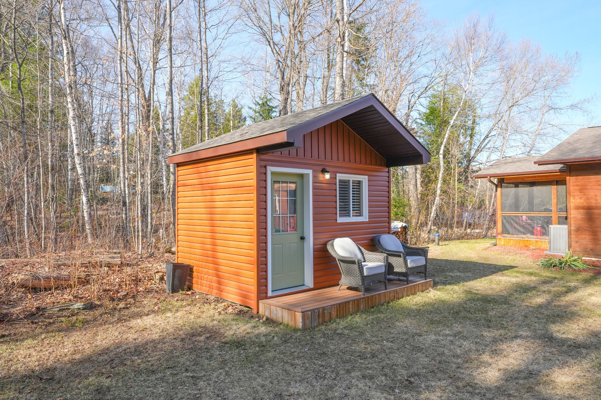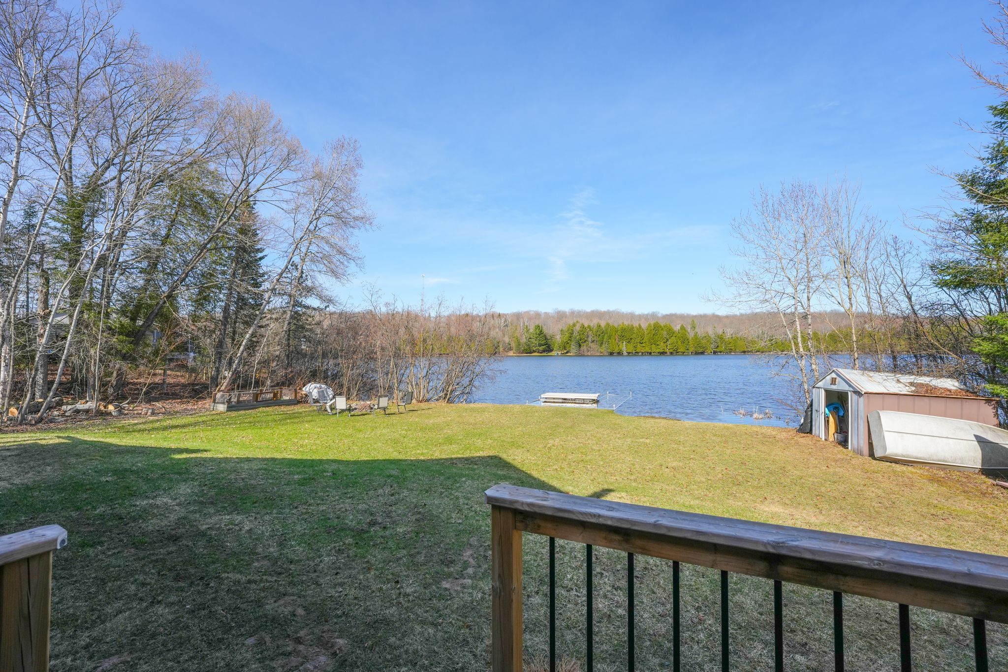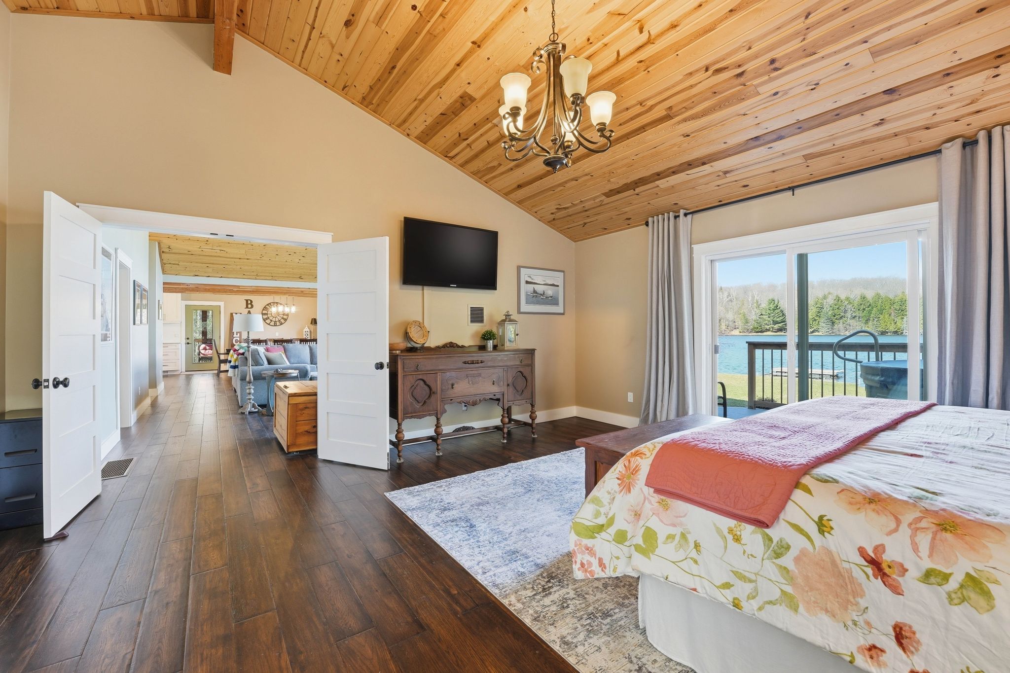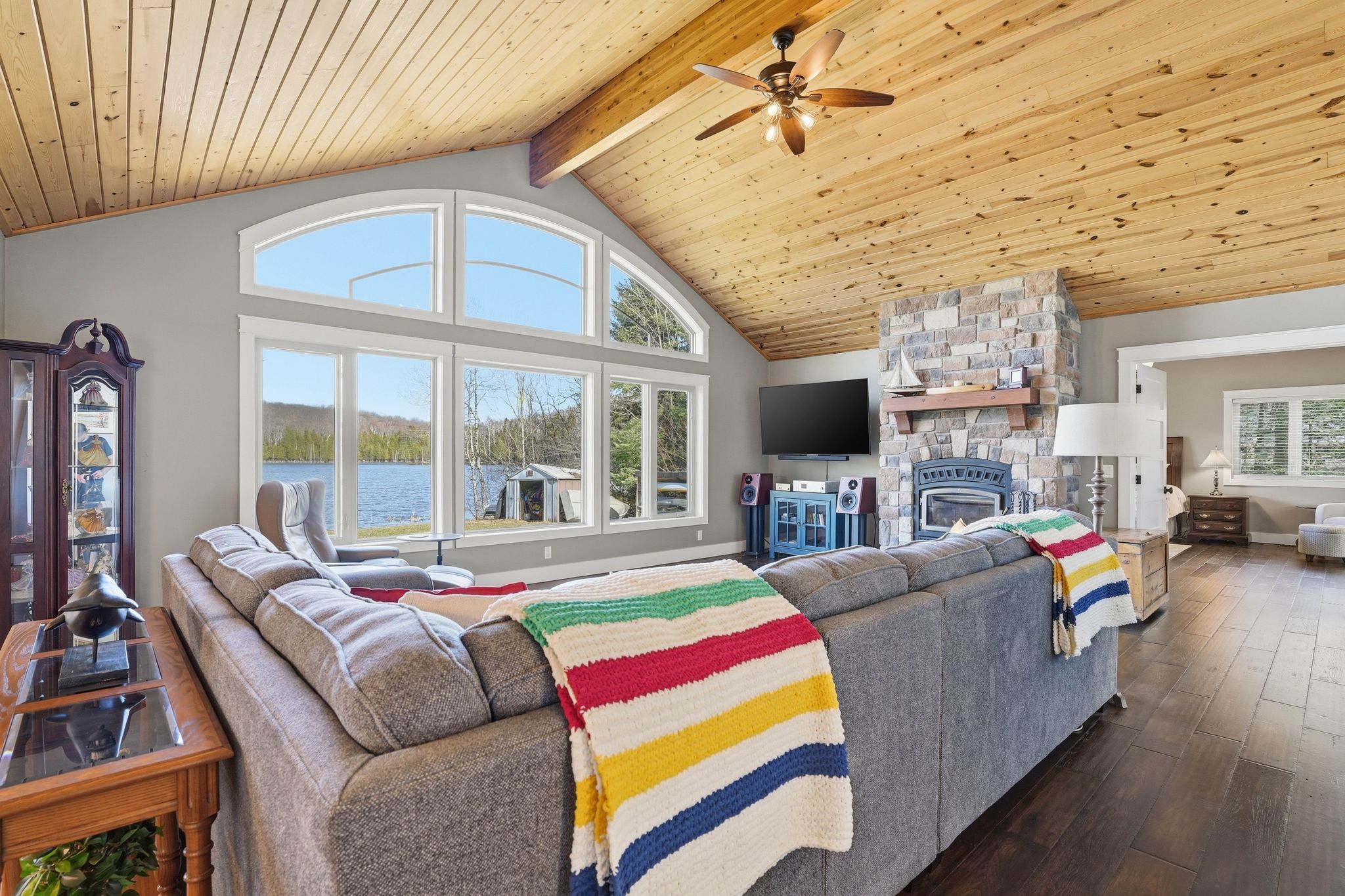 Welcome to your private lakeside waterfront retreat on beautiful vader lake-this custom-built linwood home offers the perfect lend of architectural charm, comfort, and cottage country living. Step inside and be captivated by the soaring cathedral ceilings and open-concept design, creating a bright and airy space filled with natural light from the abundance of windows throughout. The spacious living room is anchored by a stunning stone fireplace, making it the perfect place to gather and unwind. The thoughtfully designed main floor features a large primary bedroom complete with a walk-in closet and a 4-piece ensuite with patio doors leading directly to the deck and hot tub-your own private escape. And additional bedroom and 3-piece bathroom on the main level offer convenience for family and guests. The kitchen is both stylish and functional, showcasing granite countertops, professional grade appliances, quality finishes, and seamless flow into the dining and living areas. Engineered hardwood flooring and main floor laundry add to the home's everyday comfort. Enjoy the outdoors from the screened-in muskoka-style porch, ideal for relaxing bug-free summer evenings, or step outside and take in the peaceful surroundings. Enjoy the maintenance free composite decks & l-shaped decks & swim raft. Adding even more value is the charming bunkie with hydro, perfect for guests, extra sleeping space or a cozy retreat.