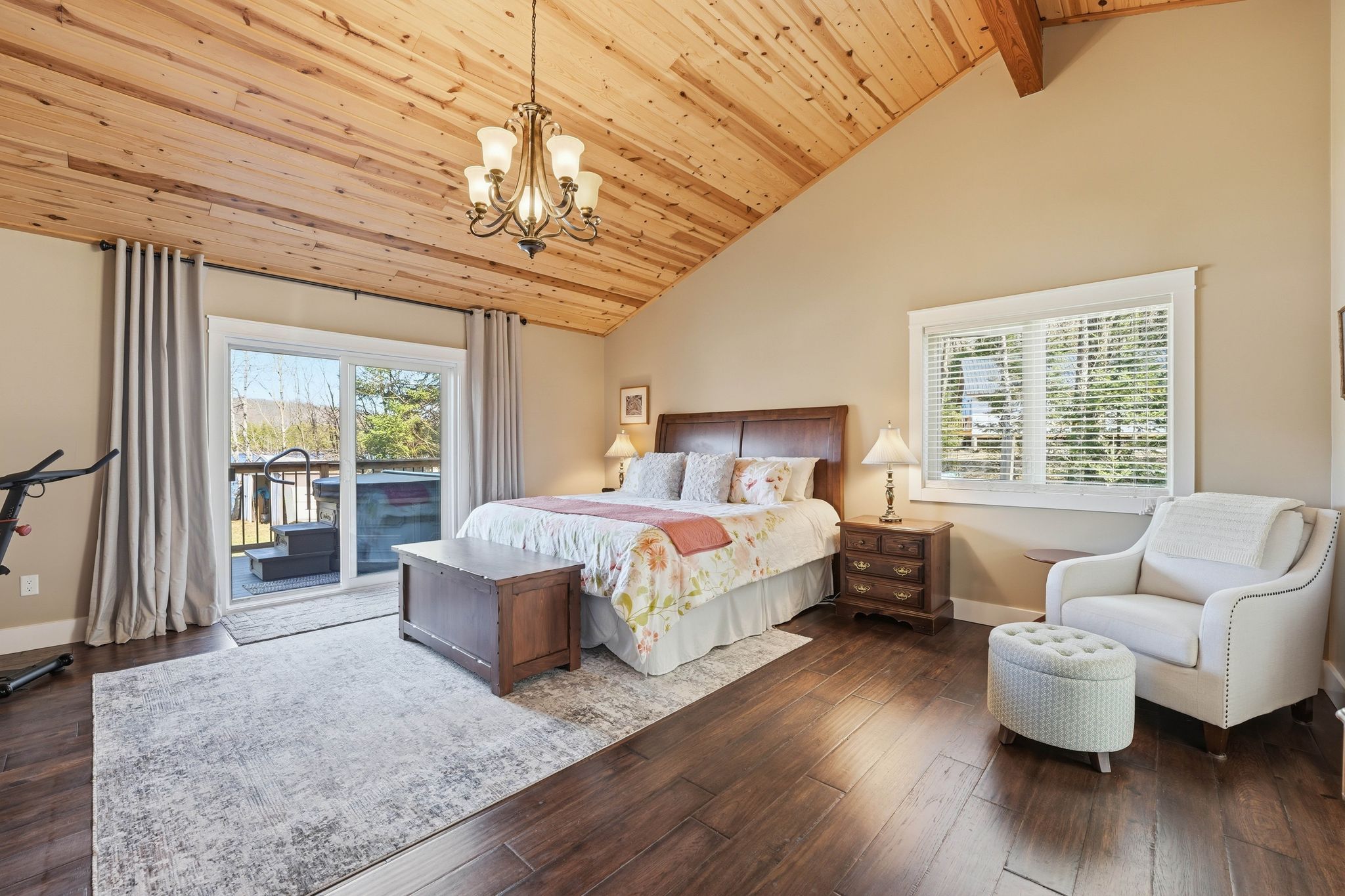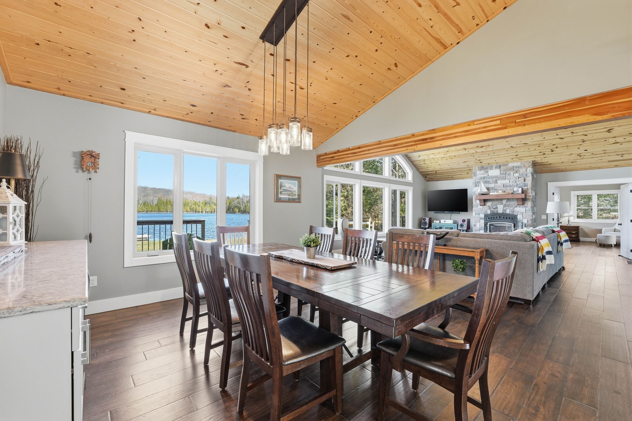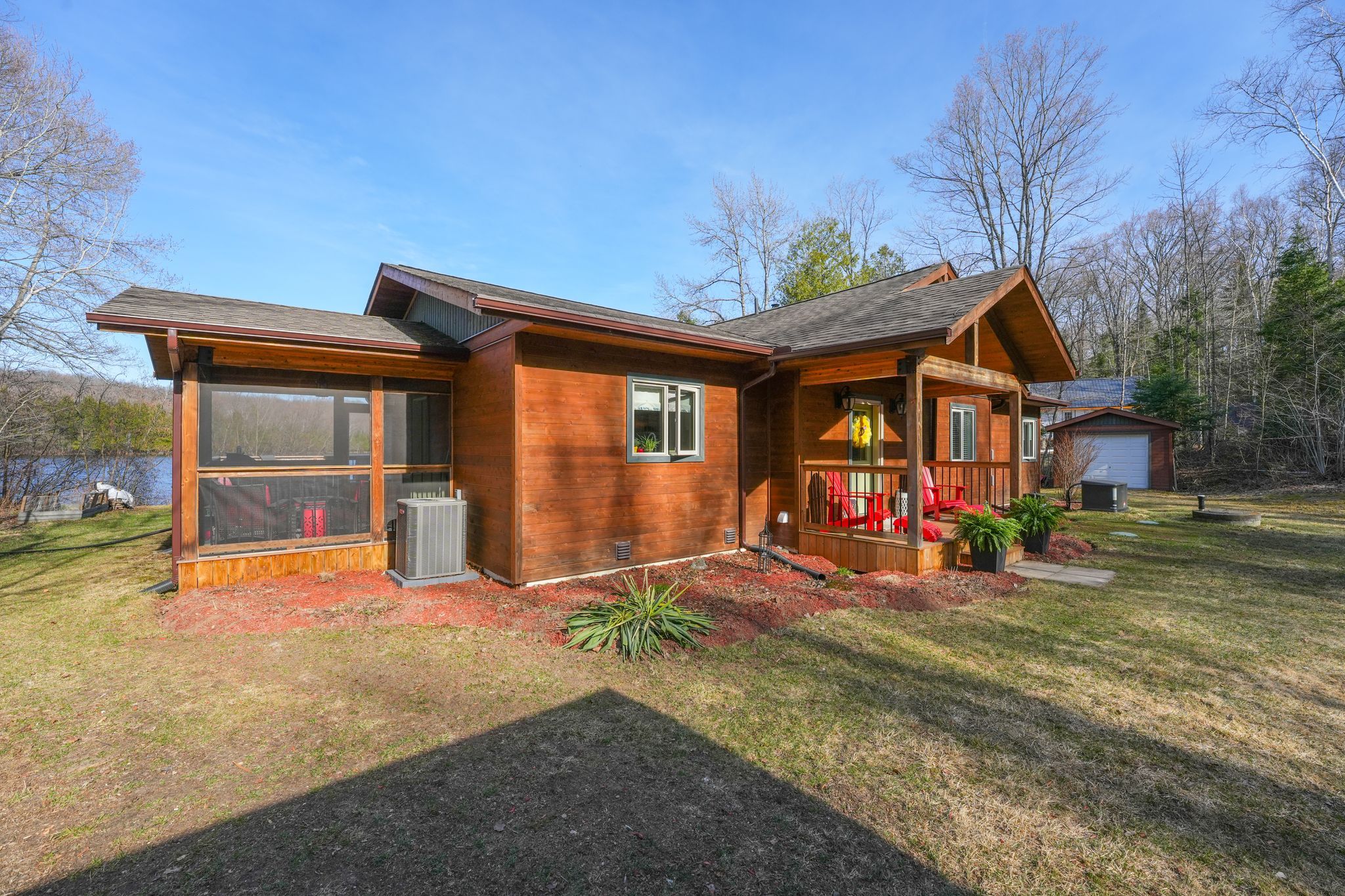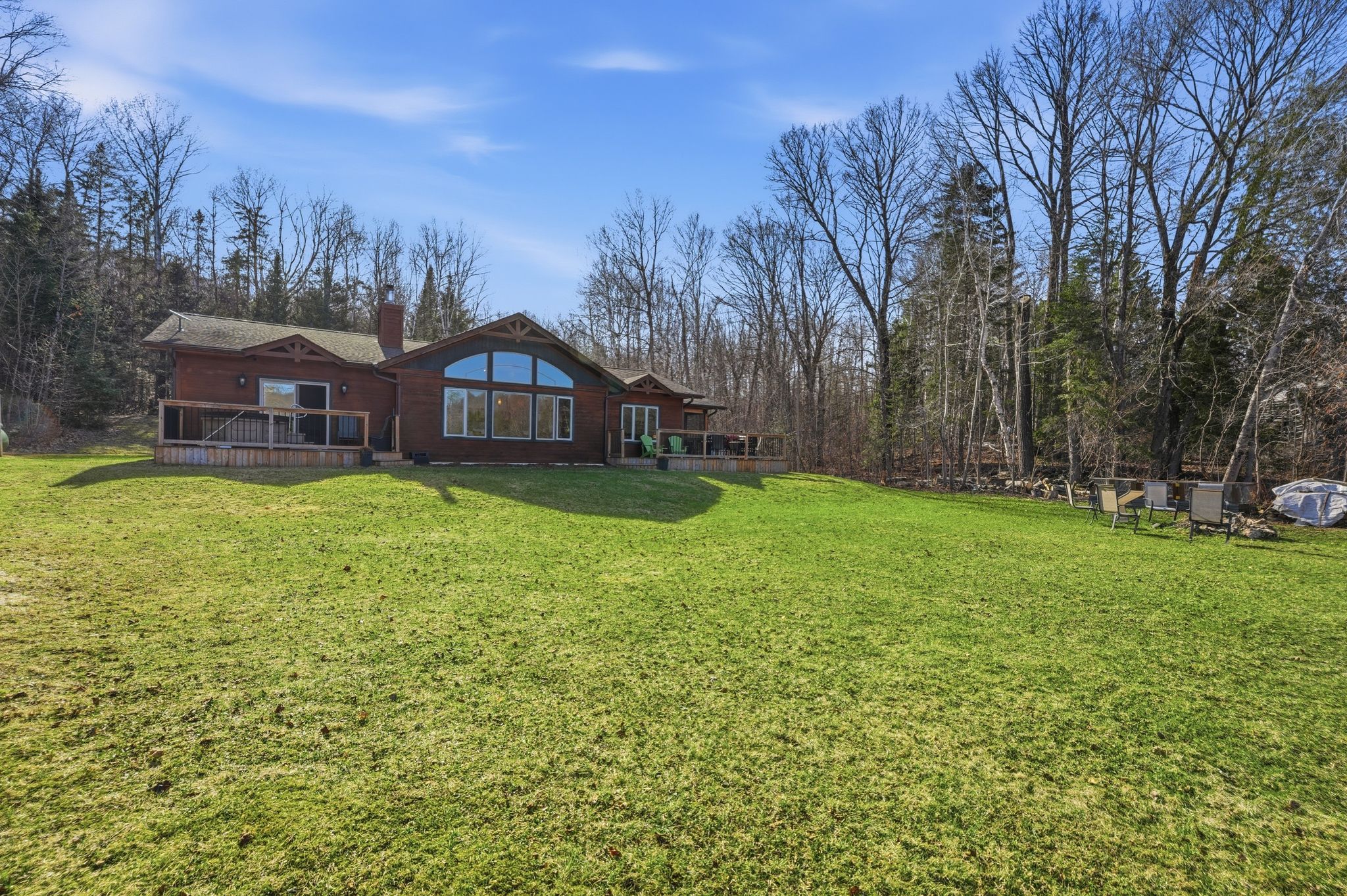 Welcome to your private lakeside waterfront retreat on beautiful vader lake-this custom-built linwood home offers the perfect lend of architectural charm, comfort, and cottage country living. Step inside and be captivated by the soaring cathedral ceilings and open-concept design, creating a bright and airy space filled with natural light from the abundance of windows throughout. The spacious living room is anchored by a stunning stone fireplace, making it the perfect place to gather and unwind. The thoughtfully designed main floor features a large primary bedroom complete with a walk-in closet and a 4-piece ensuite with patio doors leading directly to the deck and hot tub-your own private escape. And additional bedroom and 3-piece bathroom on the main level offer convenience for family and guests. The kitchen is both stylish and functional, showcasing granite countertops, professional grade appliances, quality finishes, and seamless flow into the dining and living areas. Engineered hardwood flooring and main floor laundry add to the home's everyday comfort. Enjoy the outdoors from the screened-in muskoka-style porch, ideal for relaxing bug-free summer evenings, or step outside and take in the peaceful surroundings. Enjoy the maintenance free composite decks & l-shaped decks & swim raft. Adding even more value is the charming bunkie with hydro, perfect for guests, extra sleeping space or a cozy retreat.