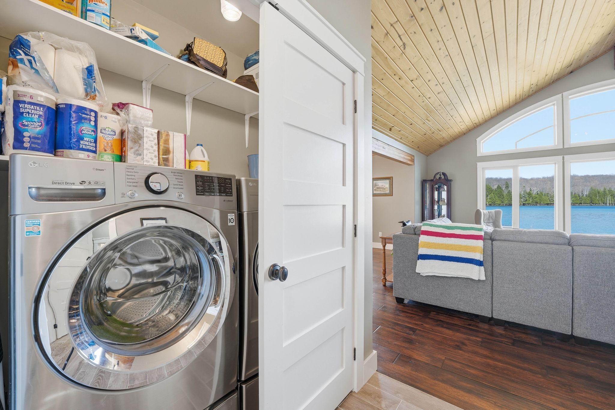 Subtype DetachedIndoor Features Primary Bedroom - Main Floor, StorageOutdoor Features Deck, Hot Tub, Landscaped, Privacy, Recreational Area, Year Round LivingAmenities Lake Access, Level, WaterfrontOwnership FreeholdViews Trees/WoodsWaterfront DirectAppliances Multiple Entrances, ParkingBasement Crawl SpaceFoundation Block, Concrete, Poured ConcreteHeating / Cooling Forced AirHeating Fuel ElectricSewer Septic