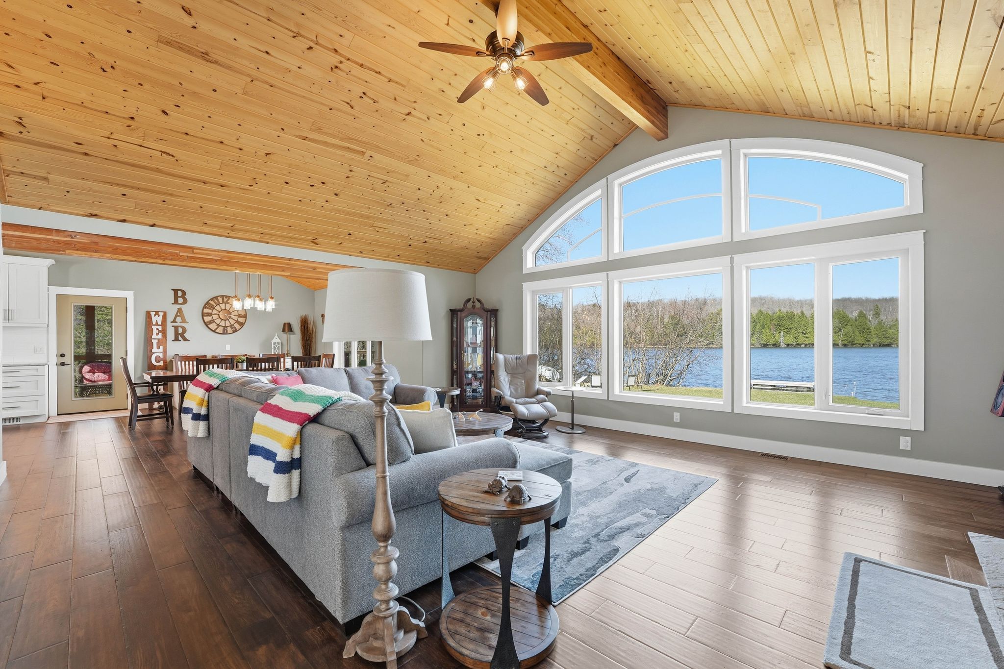 • Bright, open-concept living space with soaring cathedral ceilings.