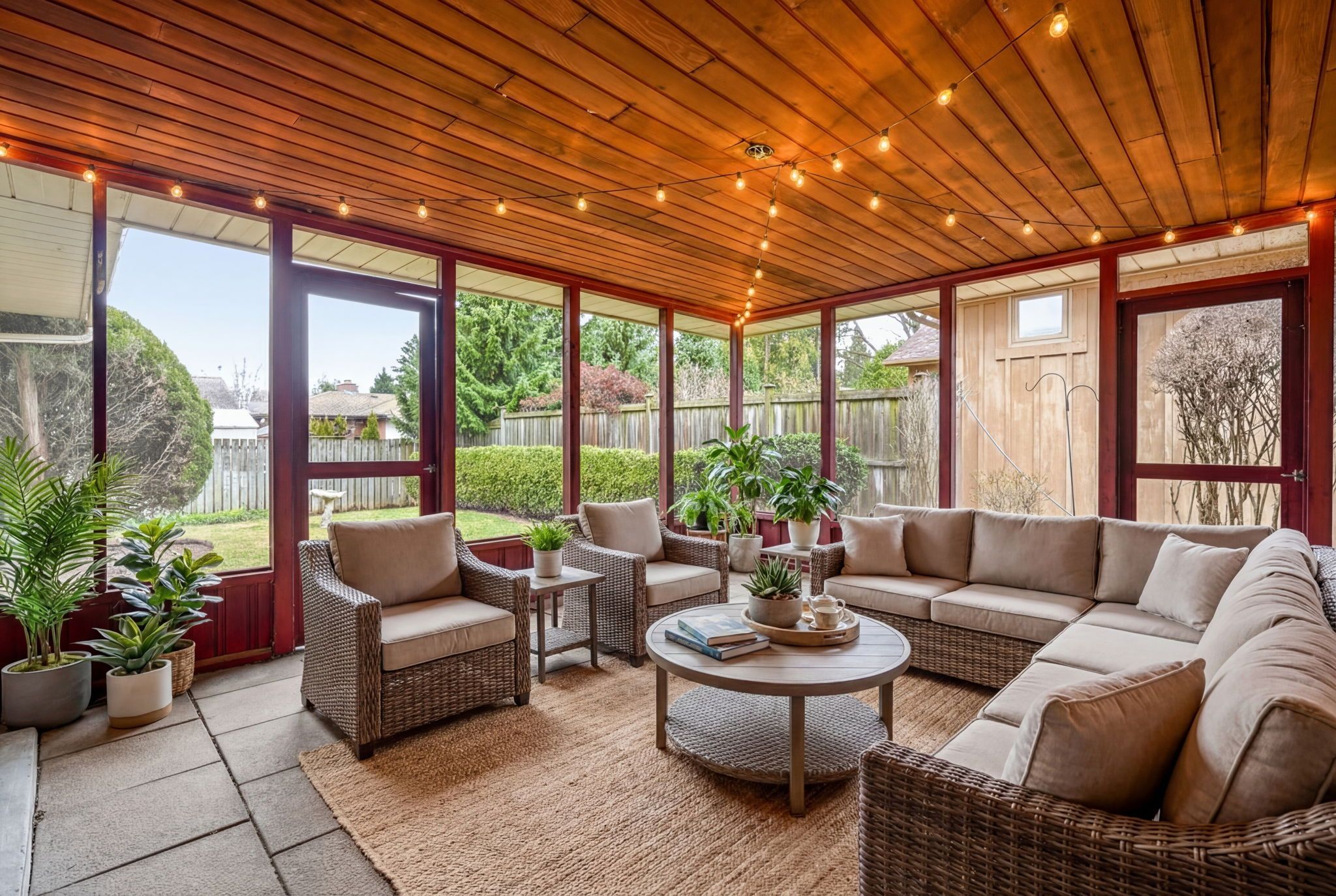 • Beautiful yard with manicured gardens and a screened porch.