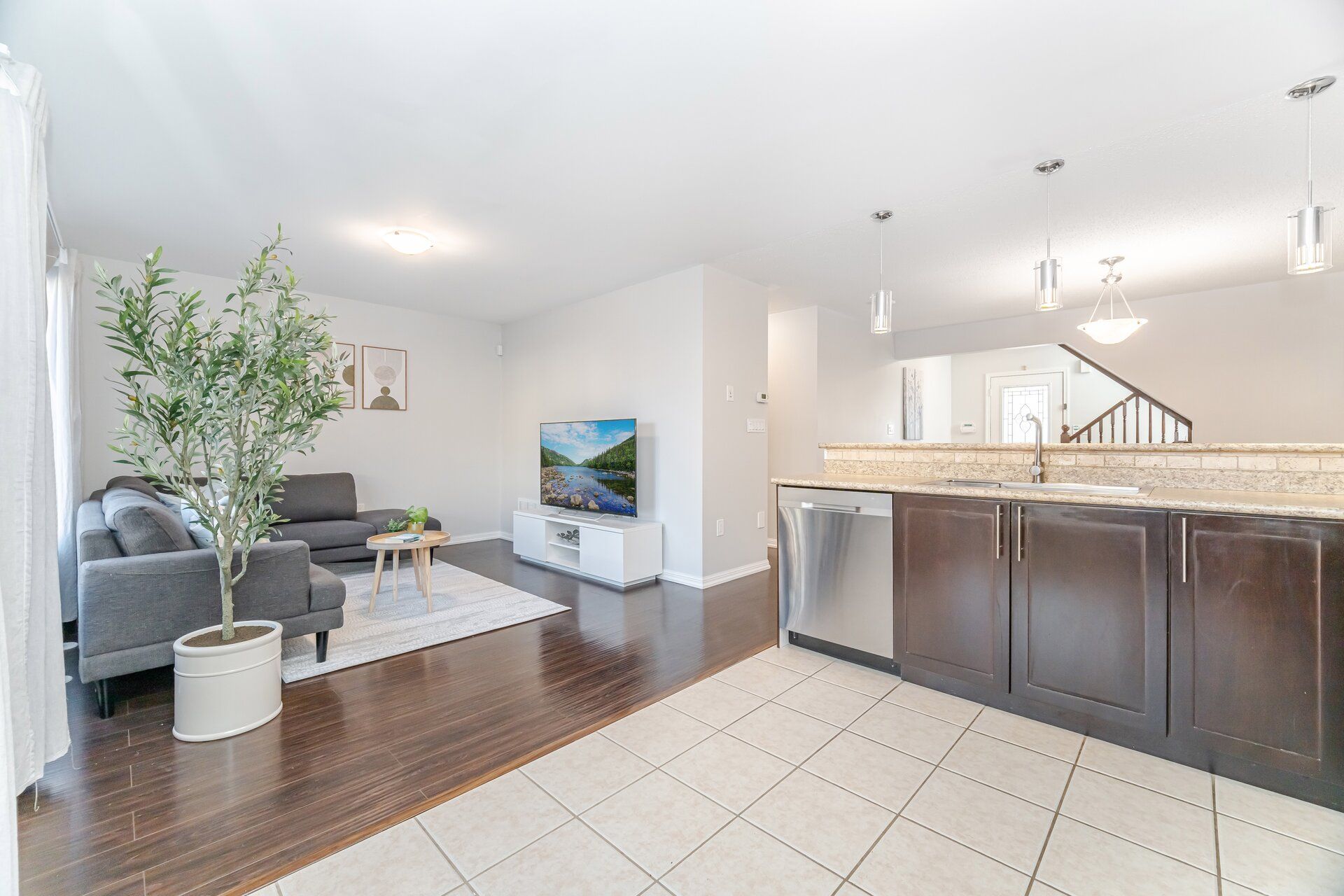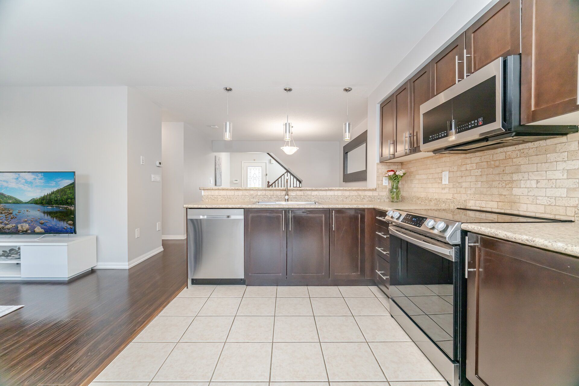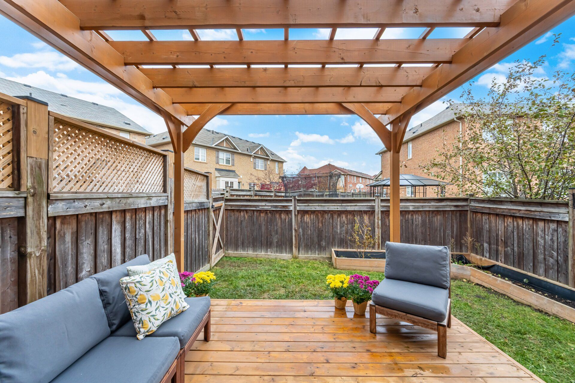 Prepare to be wowed at 891 mcewan drive! This spacious freehold townhome boasts many custom features. From the oversized driveway, you and your guests will love the beautifully interlocked walkway. This meticulously maintained residence showcases quality upgrades throughout, including a custom 12' x 12' pergola with matching garden boxes, a custom wooden shed, extra cabinet storage in the garage, and a built-in 100" motorized projector screen and projector! Step inside and be captivated by the stunning open-concept main floor-perfect for dinner parties and gatherings of all kinds. The open kitchen overlooks both the living and dining areas and offers convenient access to the backyard. Outside, enjoy a beautiful deck and pergola for the ideal day-to-night space for entertaining and relaxation. The incredible finished basement features a large open-concept layout to entertain your guests with your own private movie theatre! Also included is a stylish 3-piece bathroom with heated floors, new water efficient toilets and a defogging led mirror, plus a modern, inviting laundry room. Need extra storage? This thoughtfully designed basement offers an additional led lit storage space under the stairs. After a day of hosting, retreat to the spacious primary bedroom, designed for rest and relaxation. Enjoy your private ensuite with a beautifully tiled walk-in shower and a generous walk-in closet that's sure to impress. The second floor also includes two additional well-designed bedrooms, offering plenty of room for a home office, guest space, or family needs. To top it all off, this fantastic location provides easy access to great schools, shopping, dining, and many of the amenities milton has to offer. Make this impressive one of a kind space yours today!