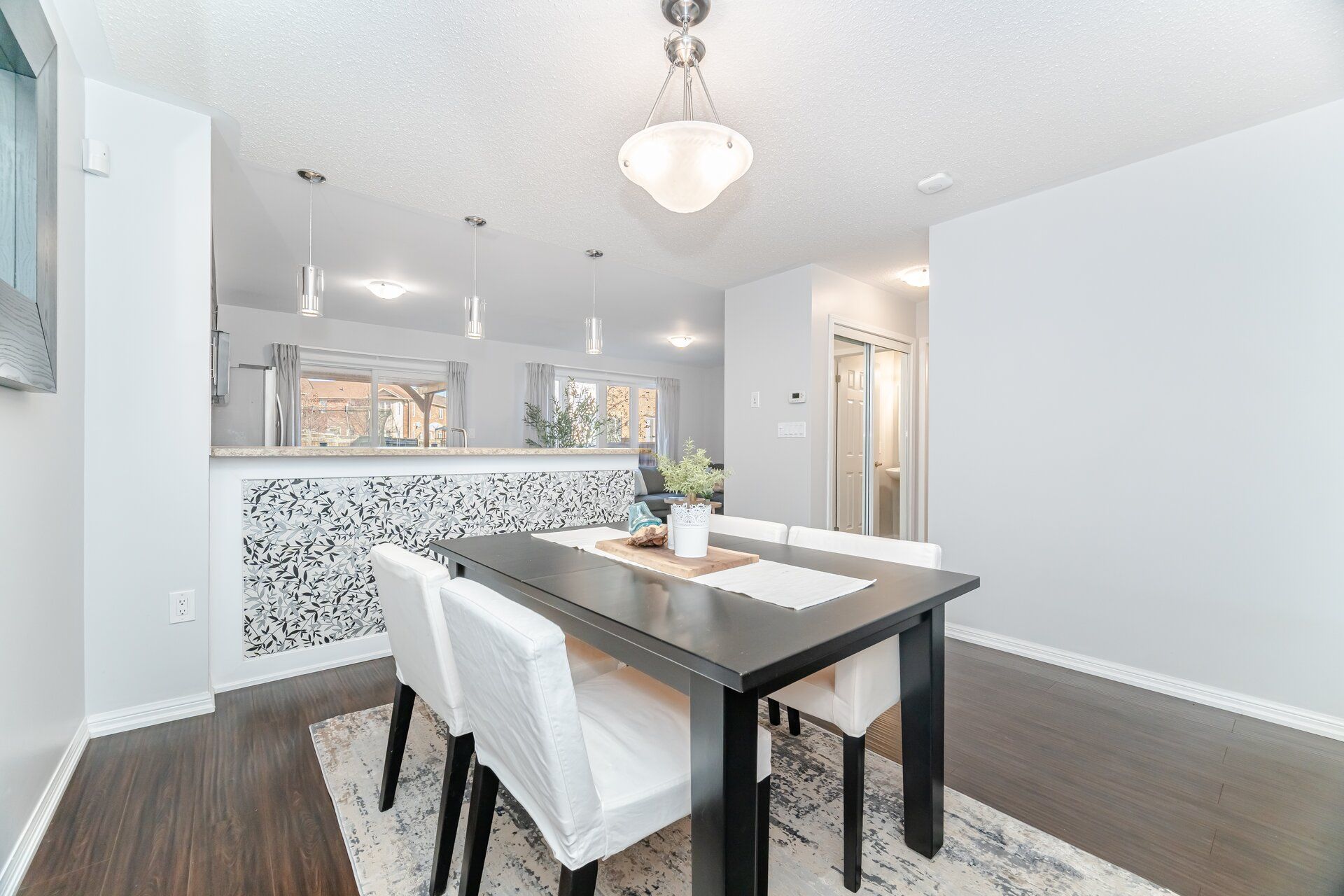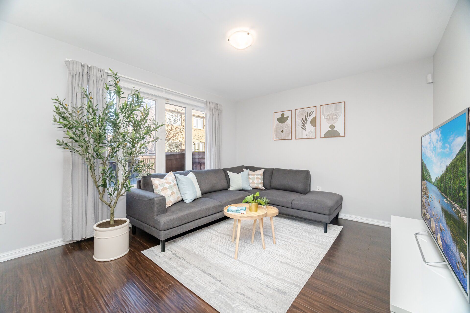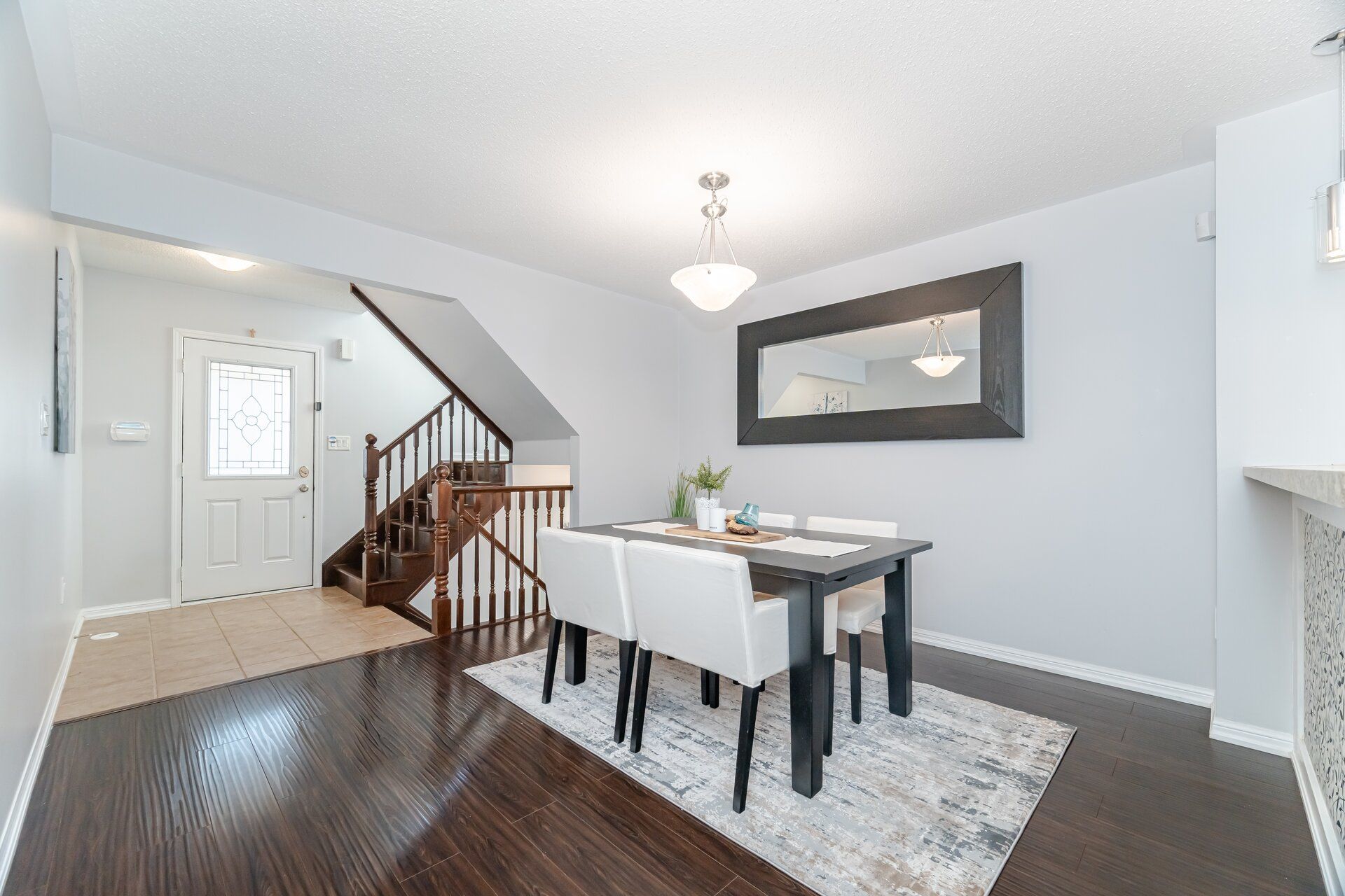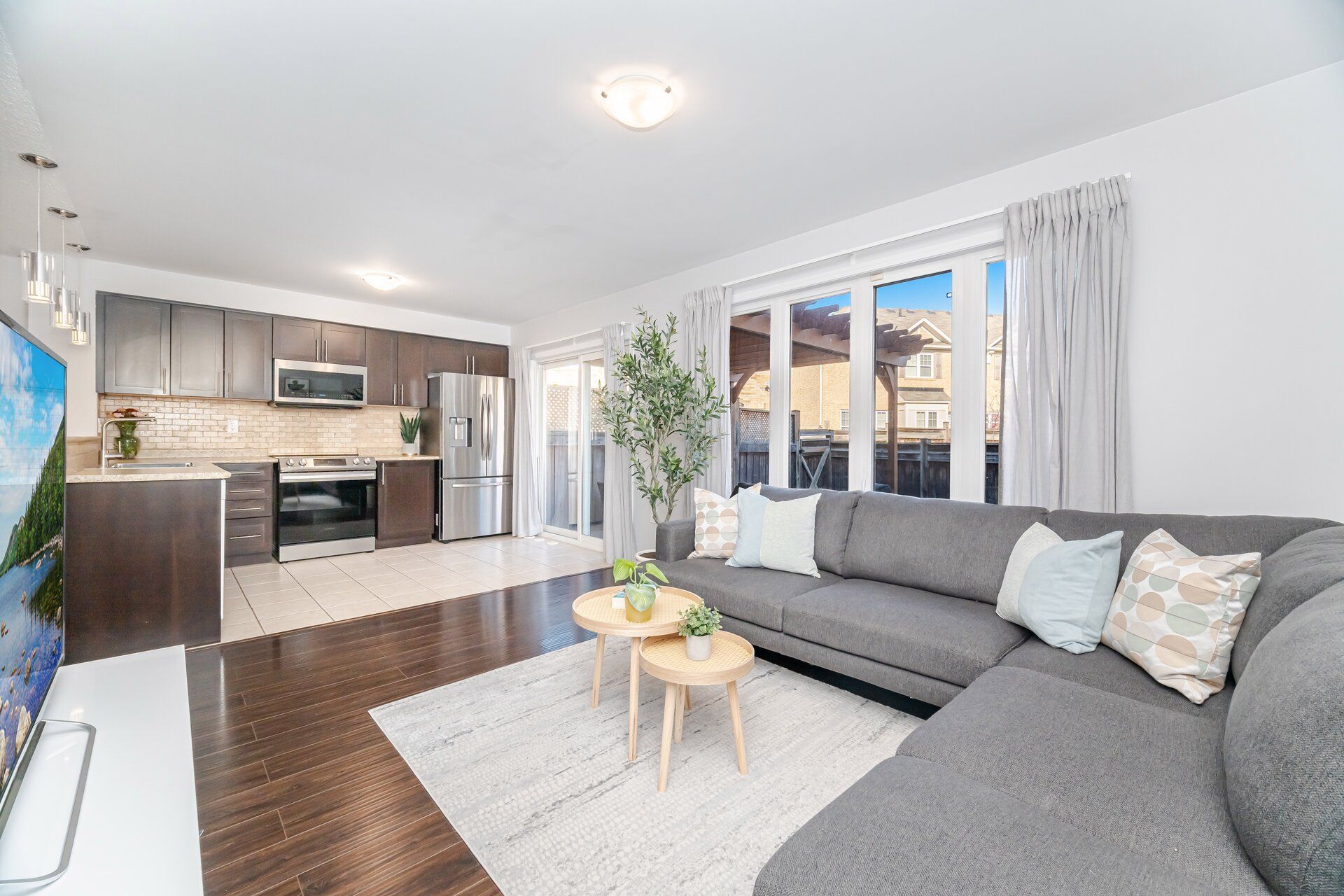 Prepare to be wowed at 891 mcewan drive! This spacious freehold townhome boasts many custom features. From the oversized driveway, you and your guests will love the beautifully interlocked walkway. This meticulously maintained residence showcases quality upgrades throughout, including a custom 12' x 12' pergola with matching garden boxes, a custom wooden shed, extra cabinet storage in the garage, and a built-in 100" motorized projector screen and projector! Step inside and be captivated by the stunning open-concept main floor-perfect for dinner parties and gatherings of all kinds. The open kitchen overlooks both the living and dining areas and offers convenient access to the backyard. Outside, enjoy a beautiful deck and pergola for the ideal day-to-night space for entertaining and relaxation. The incredible finished basement features a large open-concept layout to entertain your guests with your own private movie theatre! Also included is a stylish 3-piece bathroom with heated floors, new water efficient toilets and a defogging led mirror, plus a modern, inviting laundry room. Need extra storage? This thoughtfully designed basement offers an additional led lit storage space under the stairs. After a day of hosting, retreat to the spacious primary bedroom, designed for rest and relaxation. Enjoy your private ensuite with a beautifully tiled walk-in shower and a generous walk-in closet that's sure to impress. The second floor also includes two additional well-designed bedrooms, offering plenty of room for a home office, guest space, or family needs. To top it all off, this fantastic location provides easy access to great schools, shopping, dining, and many of the amenities milton has to offer. Make this impressive one of a kind space yours today!