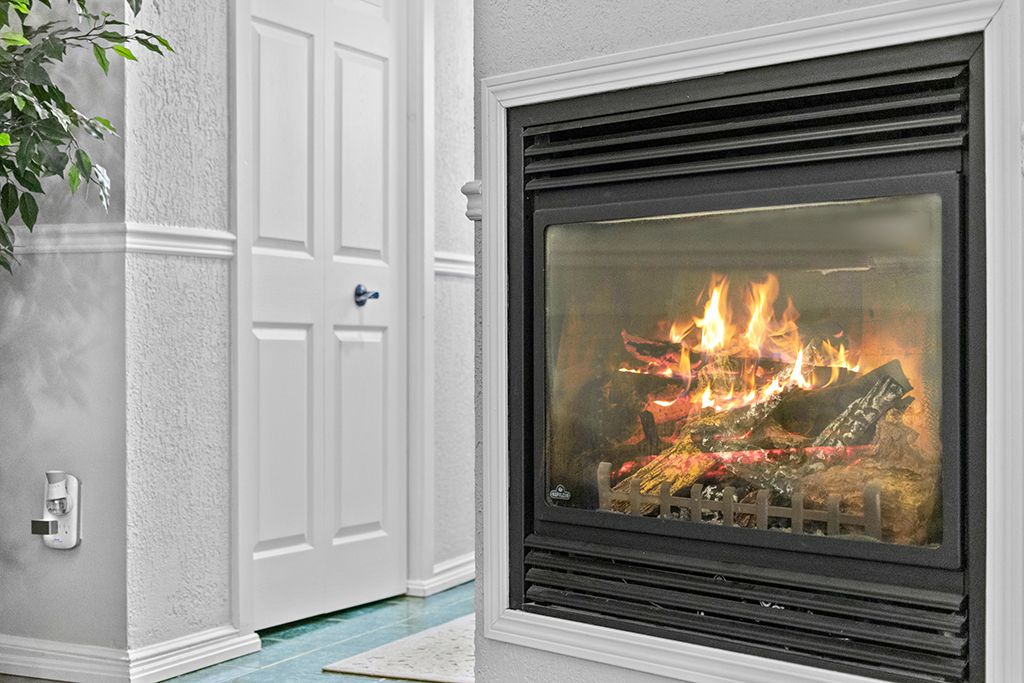 • Private patio and cozy gas fireplace for relaxation.