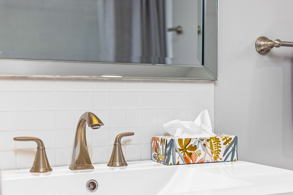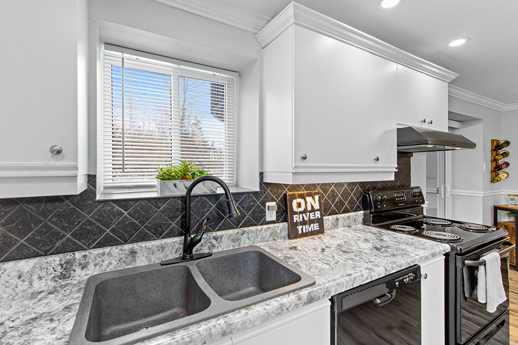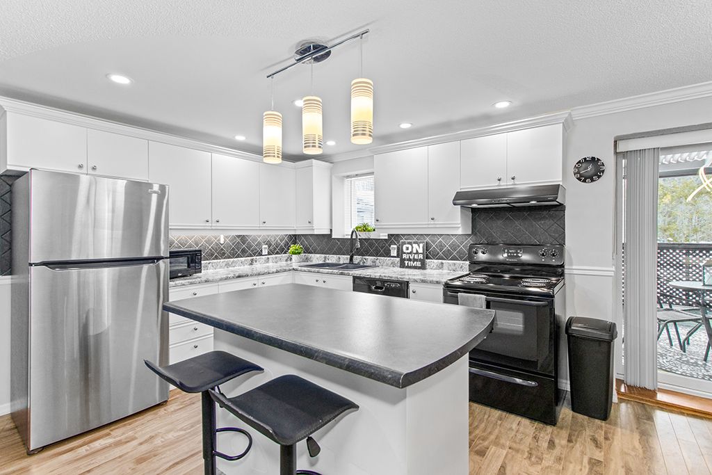 • Modern kitchen with updated appliances and breakfast bar.