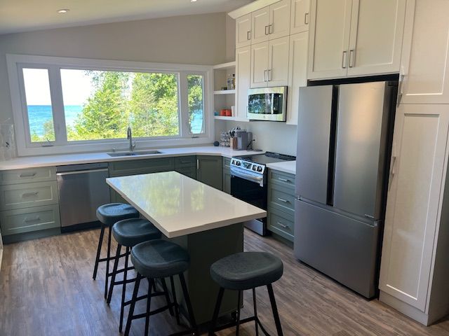 • Completely renovated cottage with modern kitchen and quartz countertops.