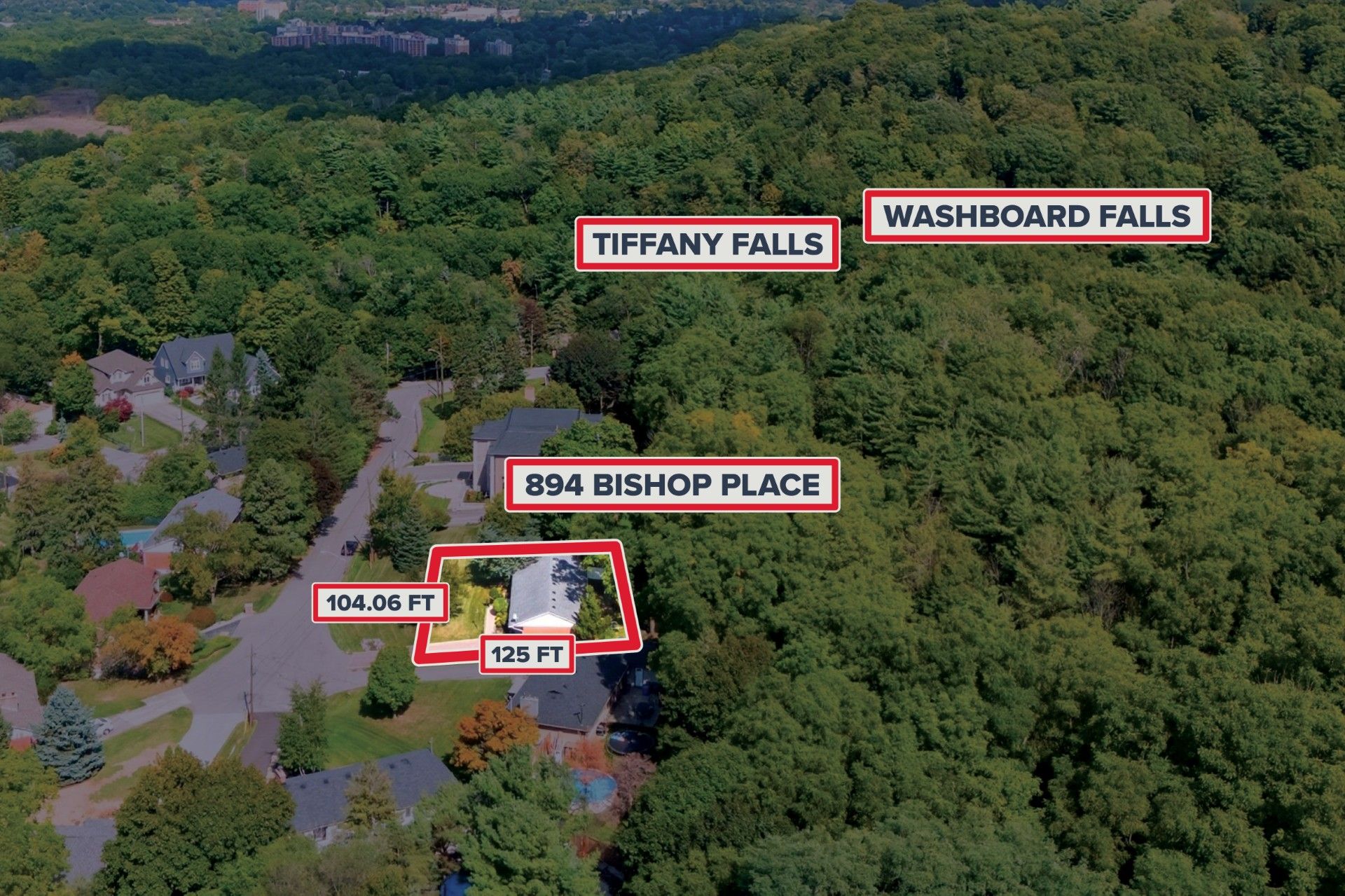• Set on a large lot with no rear neighbors backing onto Tiffany Falls.