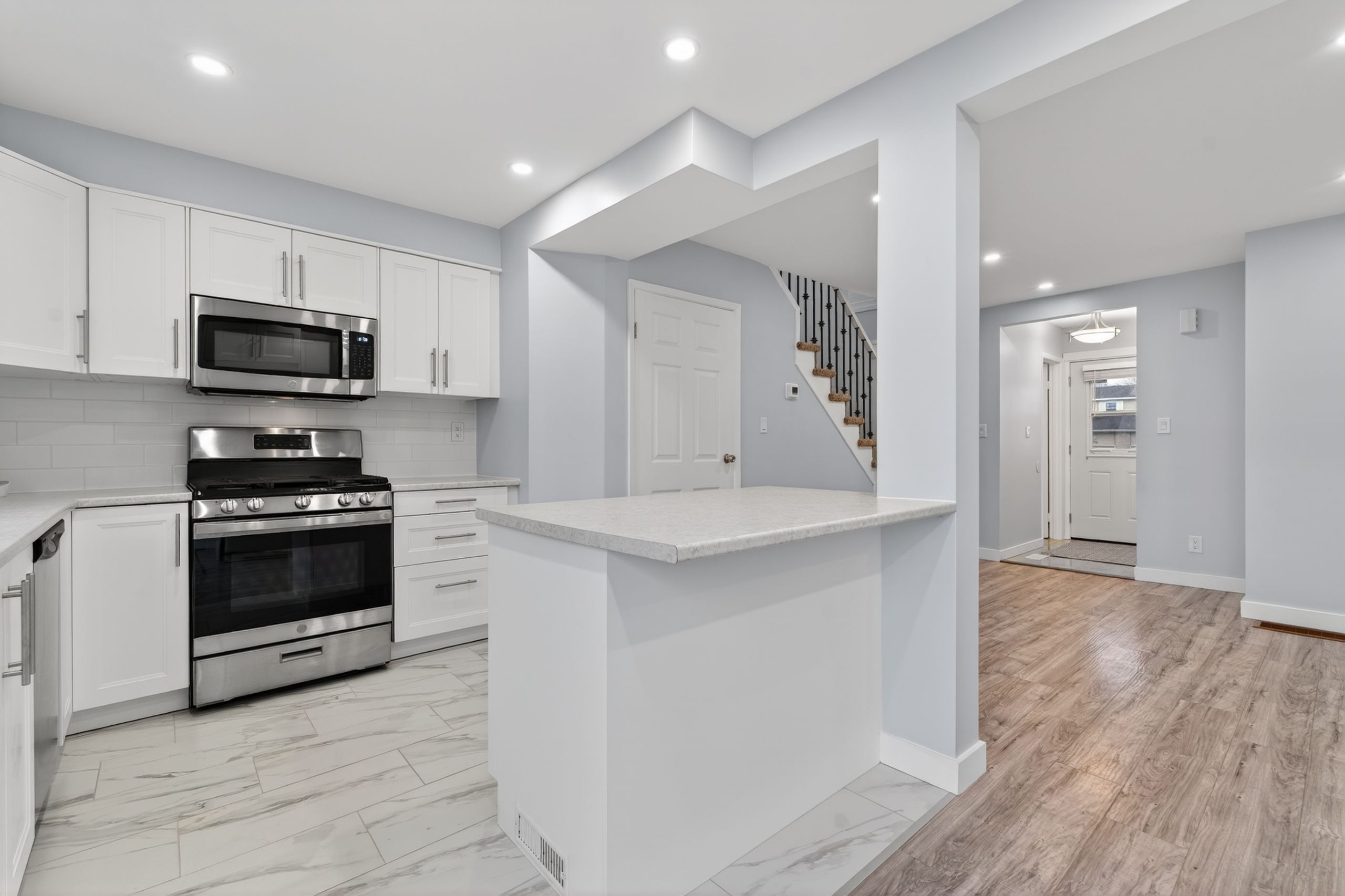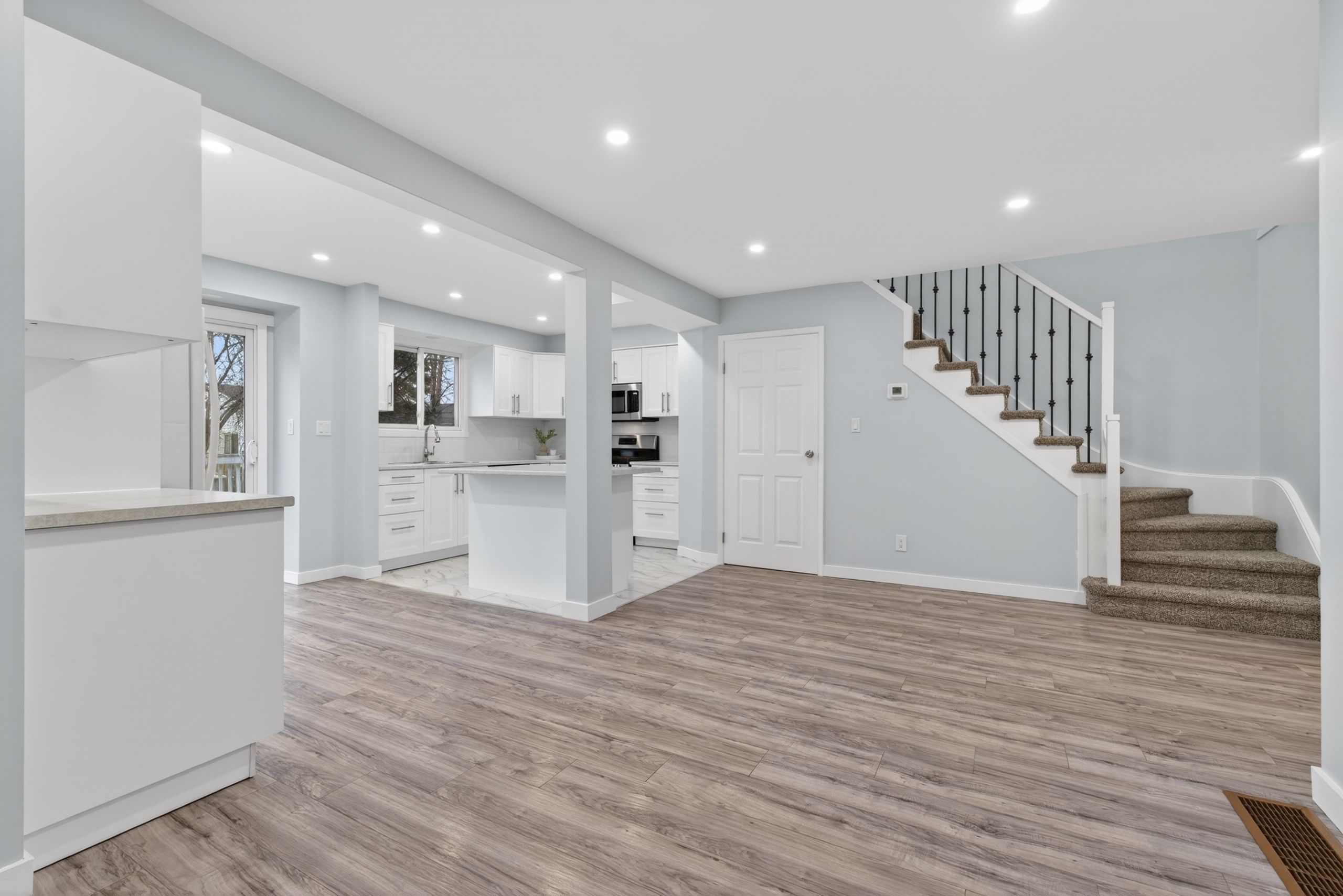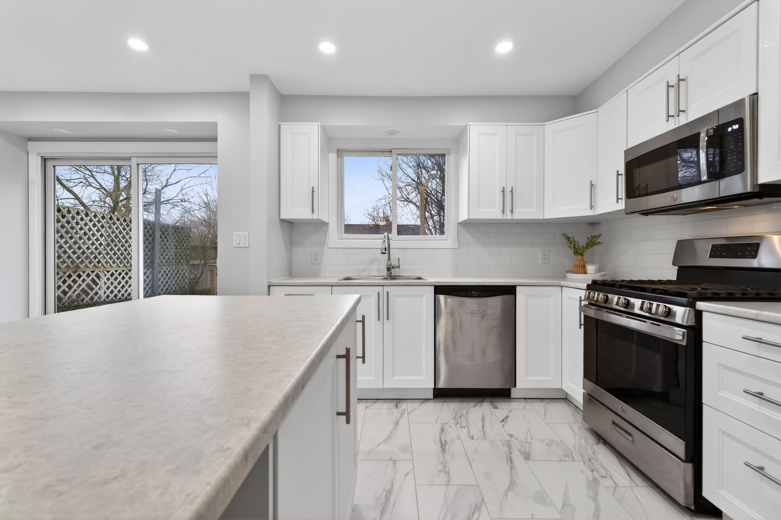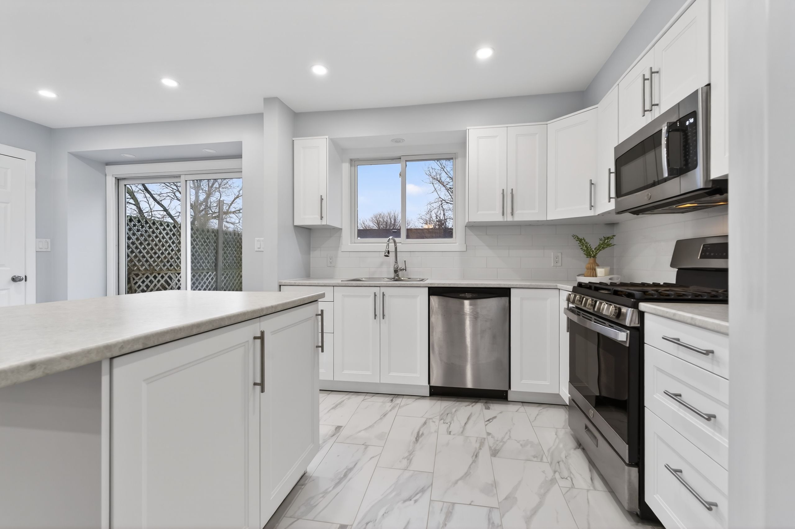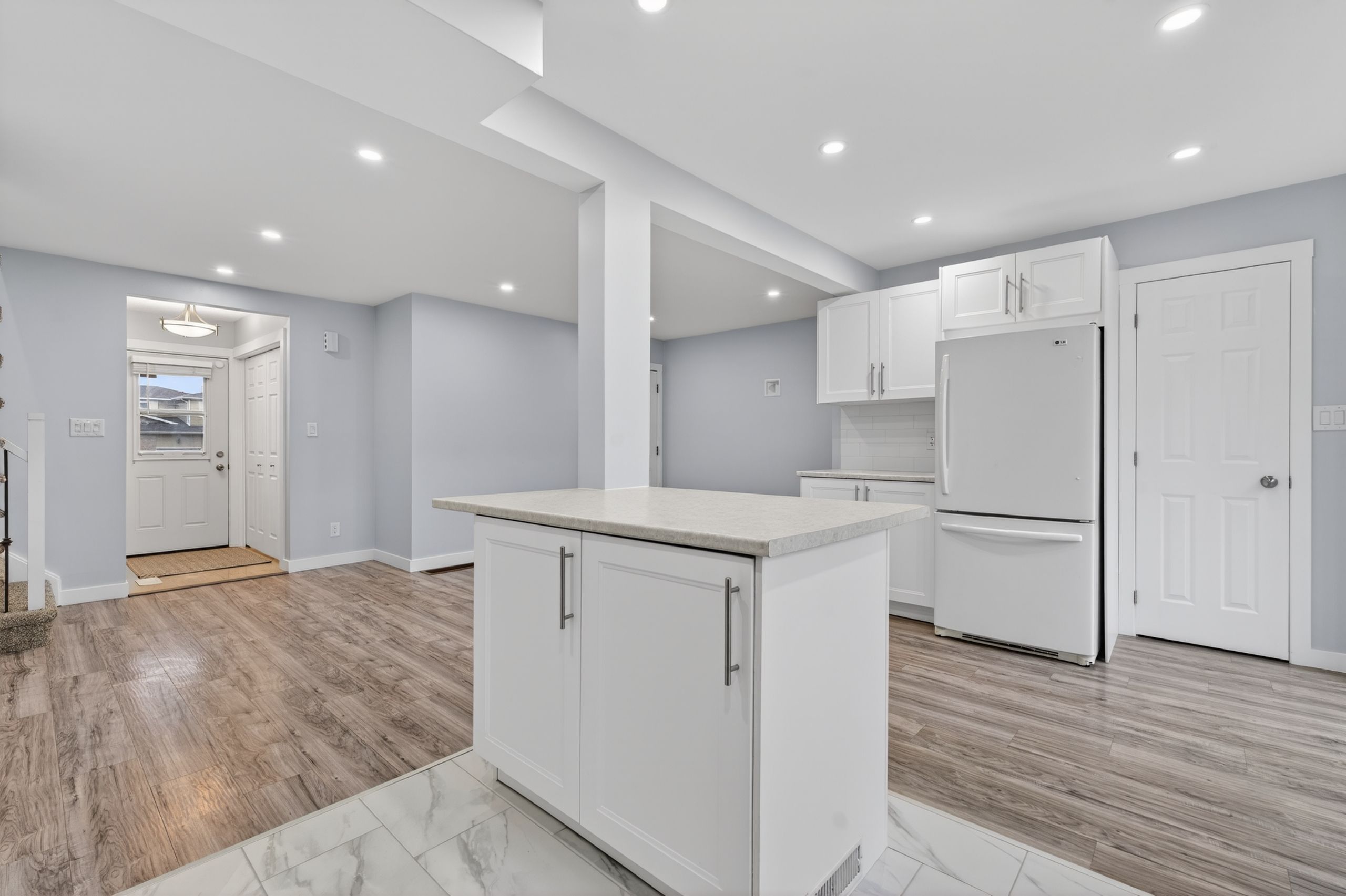 • Updated main floor with spacious kitchen, plenty of cabinets, and center island.