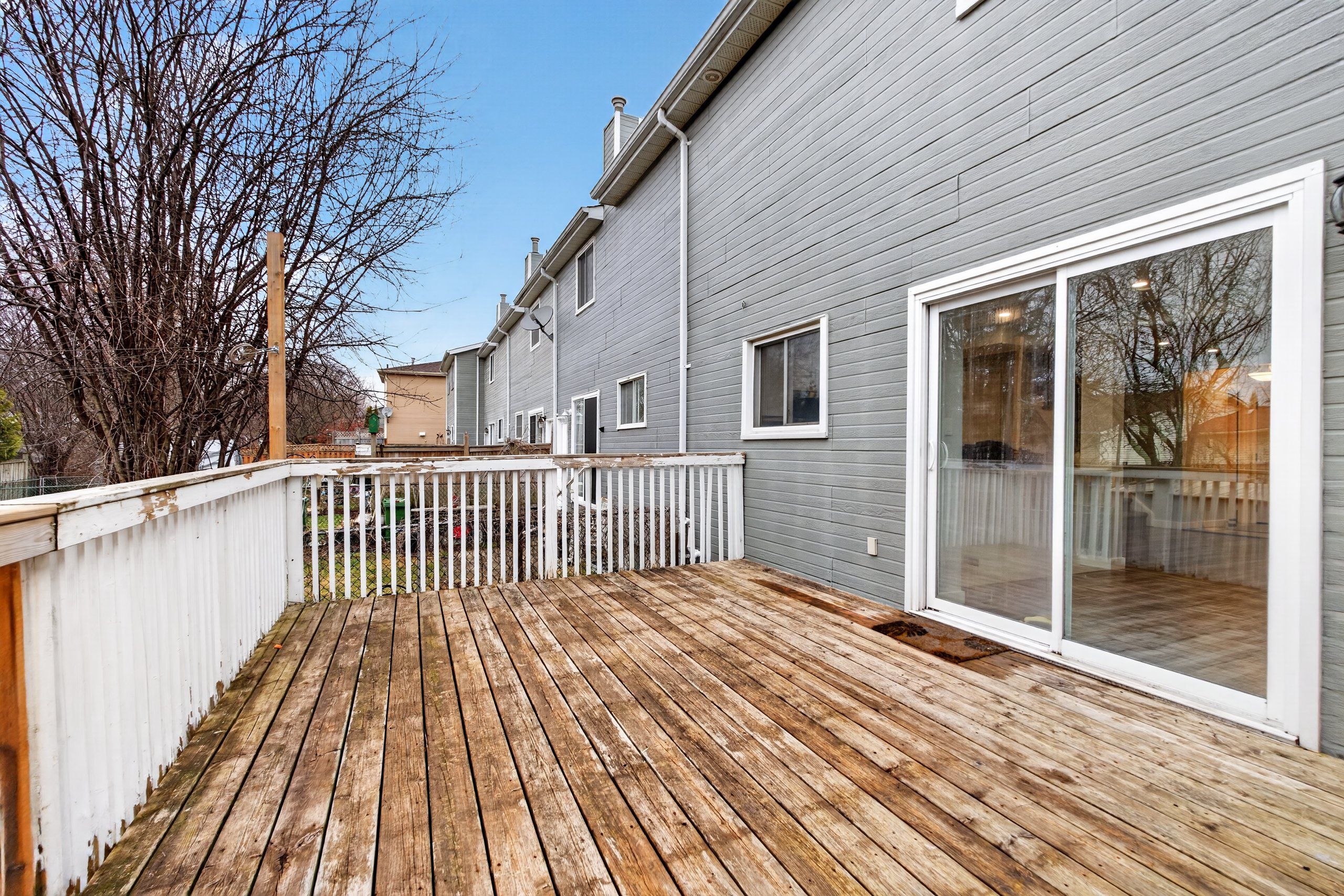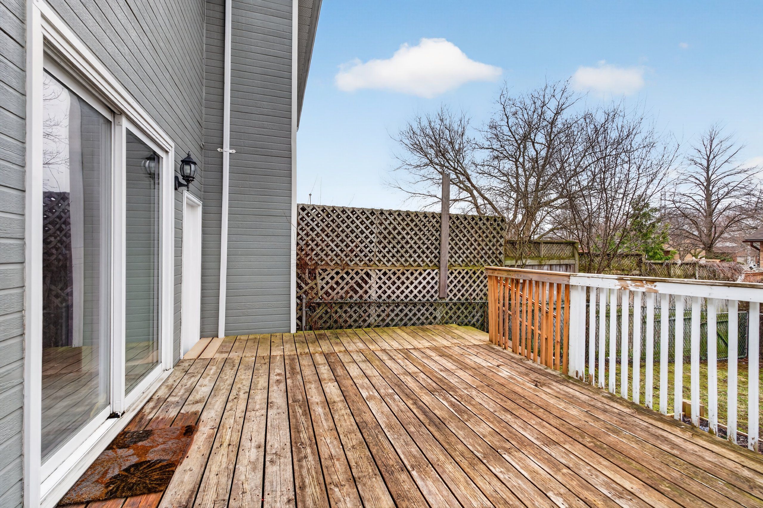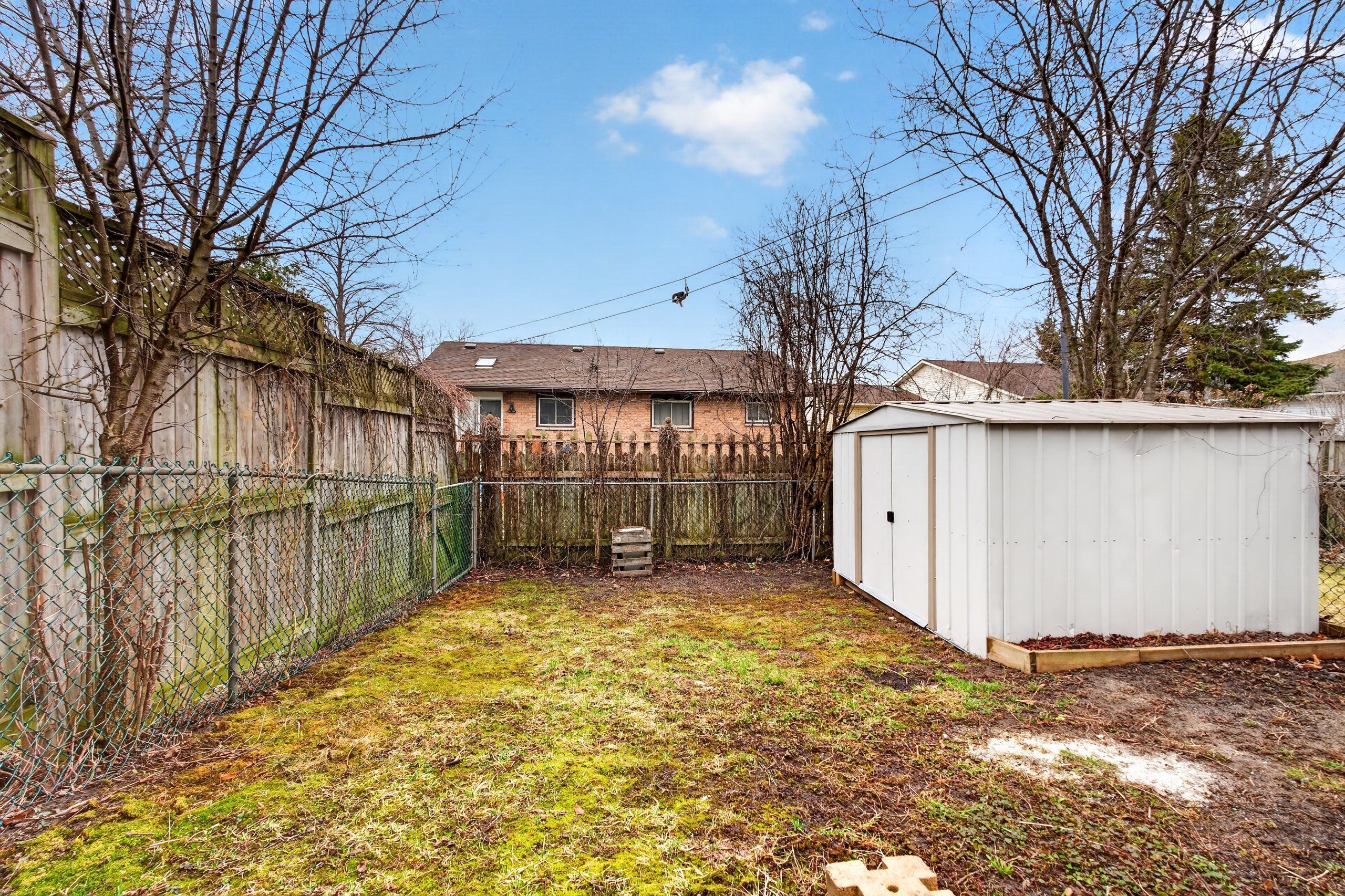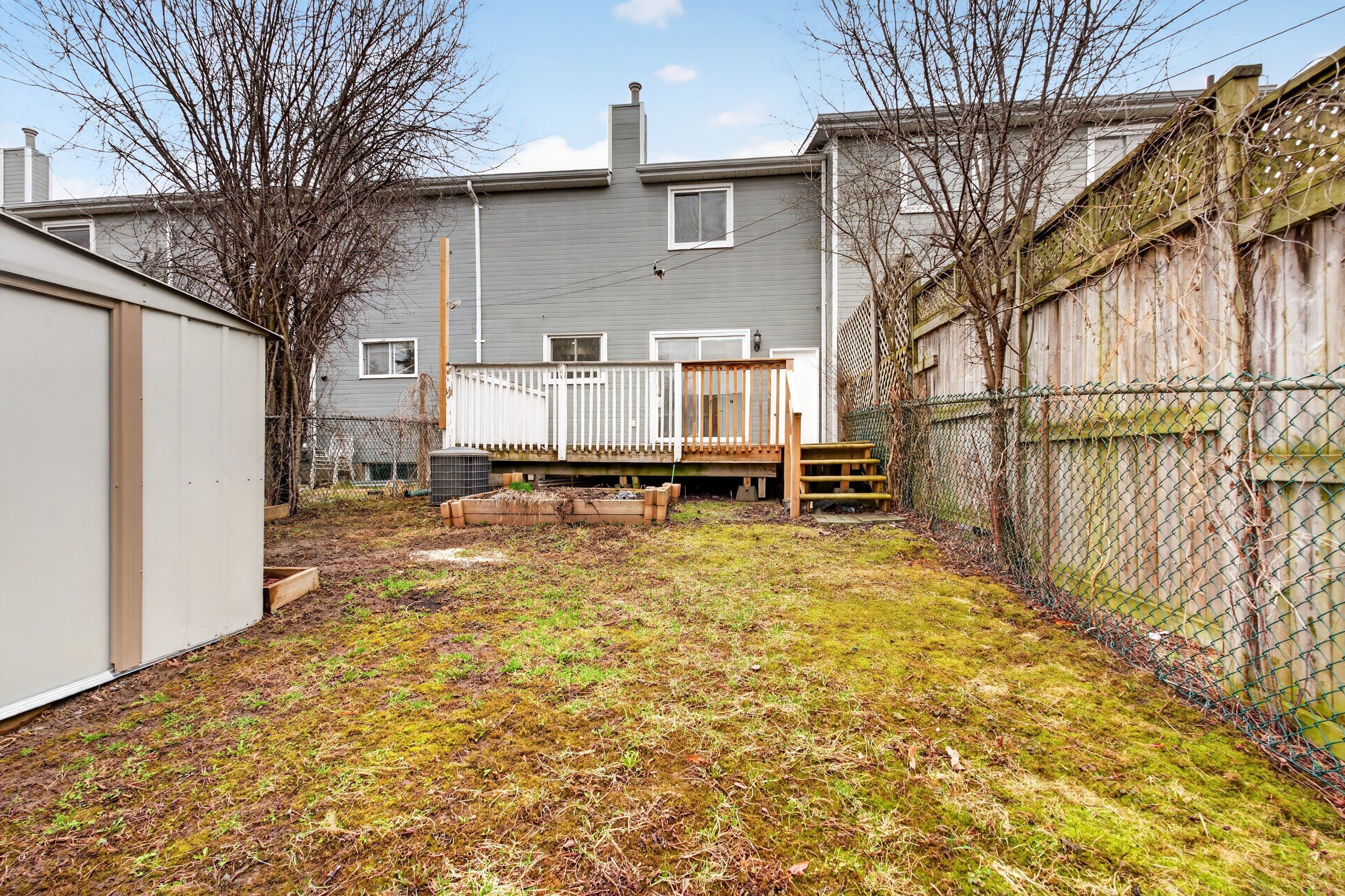 • Fenced backyard features a large shed and deck for outdoor activities.