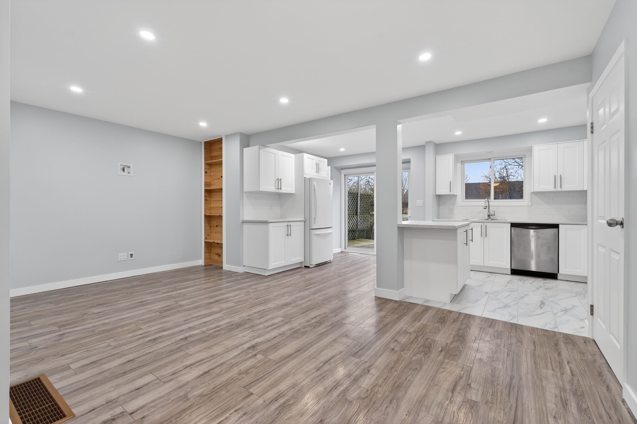 Have you been waiting for an affordable home that is ready for you to just move in and enjoy right away? This freehold townhome has been extensively updated from top to bottom! The main floor features a bright kitchen that has been expanded to a maximum cabinet and counter space. There is a center island with eating bar and space for a small table. The spacious great room with lots of layout options is open to the kitchen. Laundry has conveniently been relocated to a main floor closet. Patio doors lead to the backyard which is fenced and boasts a large shed and deck. There is also an updated 2-pc bathroom and recreation room. A storage & utility room house the new furnace (nov 2025). Other great features include pot lights and custom closets with lighting, bluethooth speaker in bathroom fan and govee permanment outdoor lights! With no condo fees and the hard work completed, this could be the gem you've been patiently awaiting for! Call for your private showing!