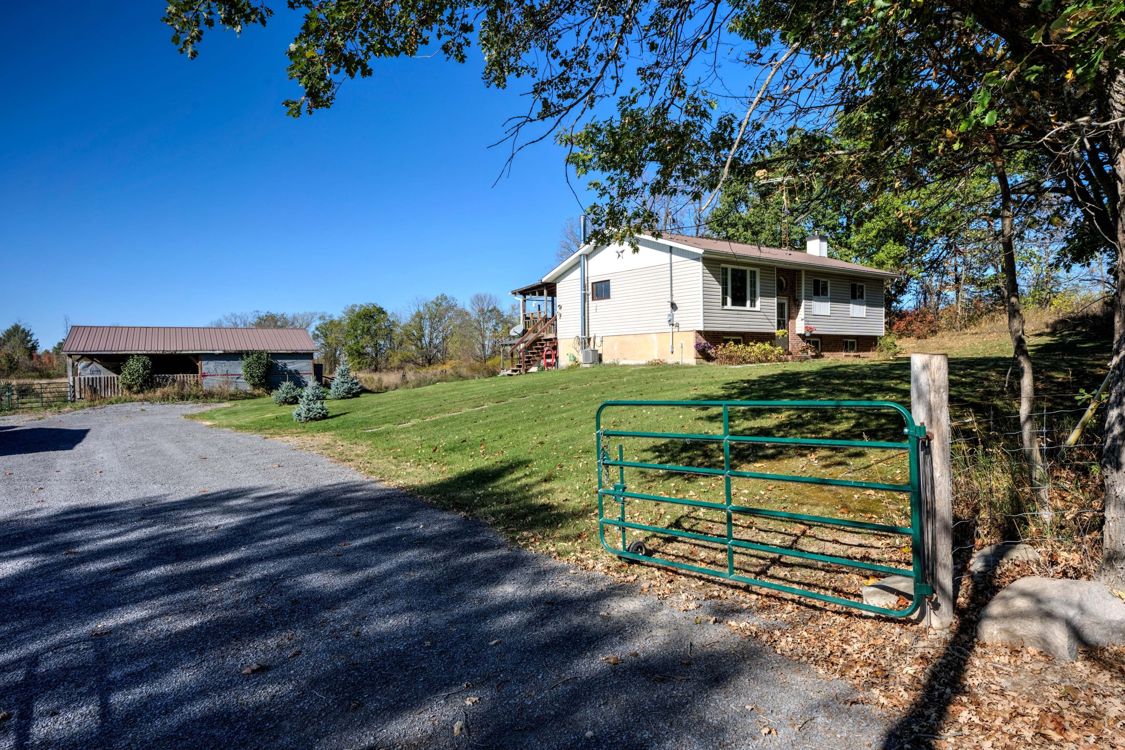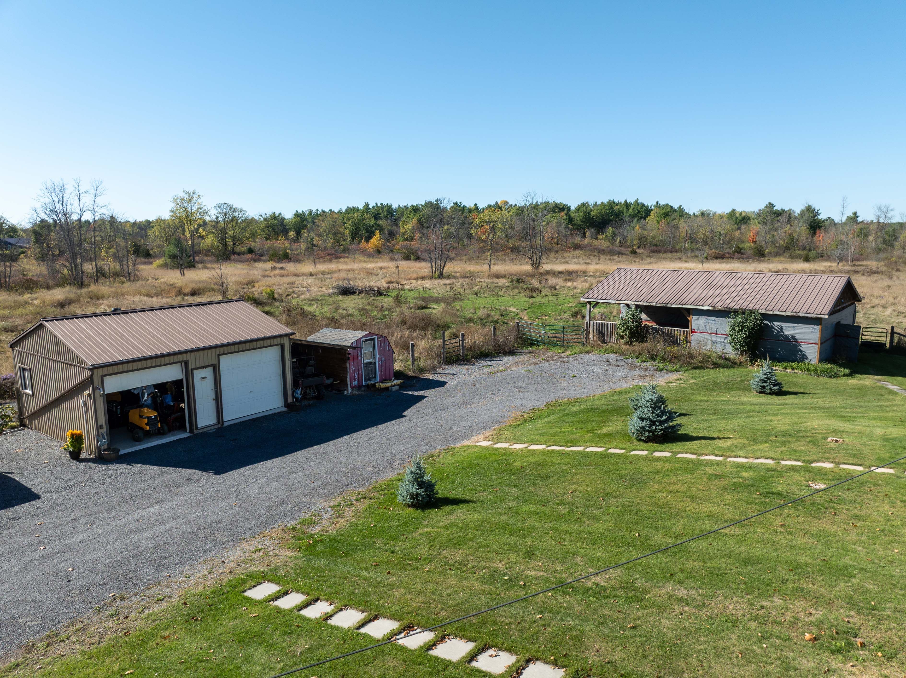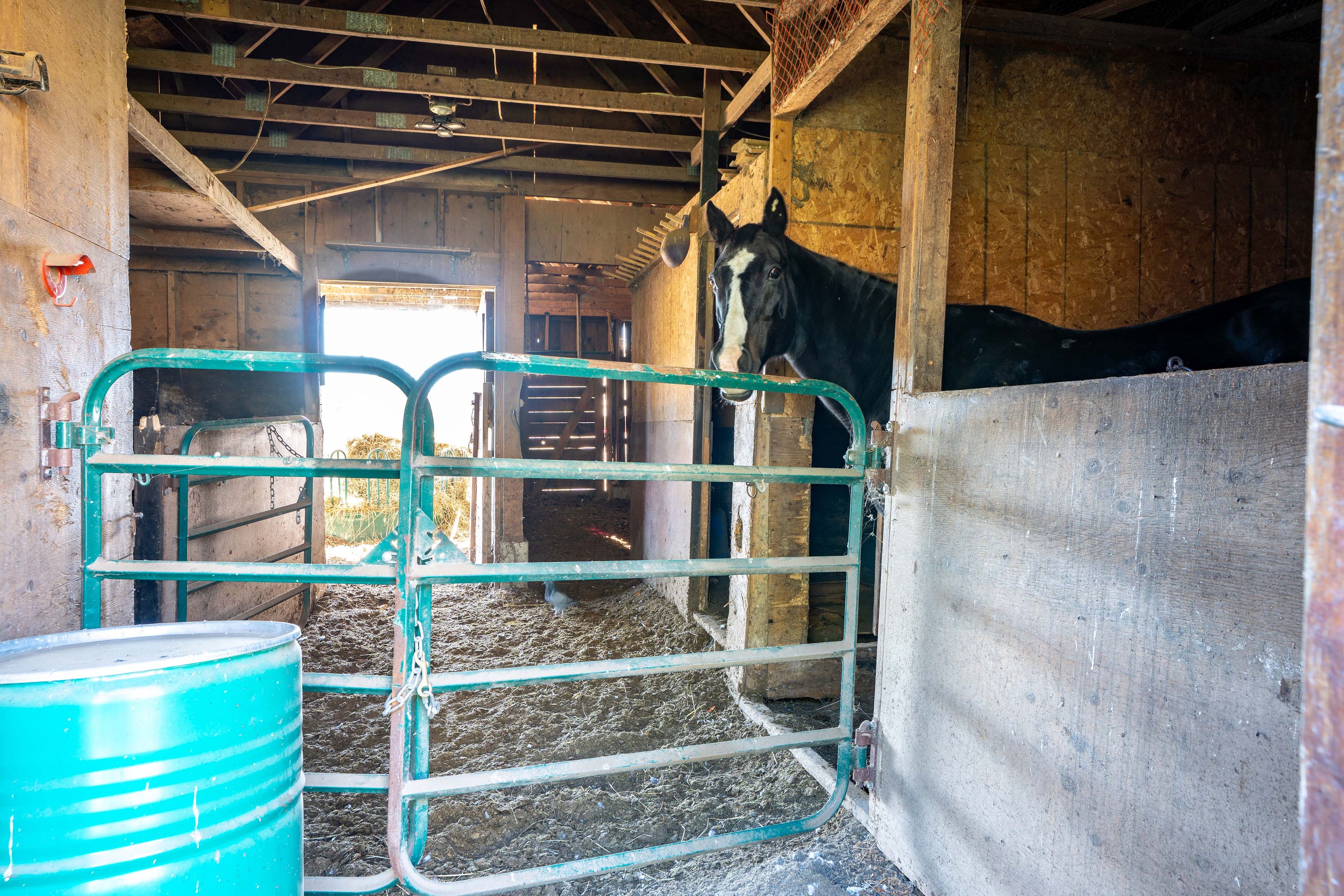 • Barn with box stalls and heated watering system for animals.