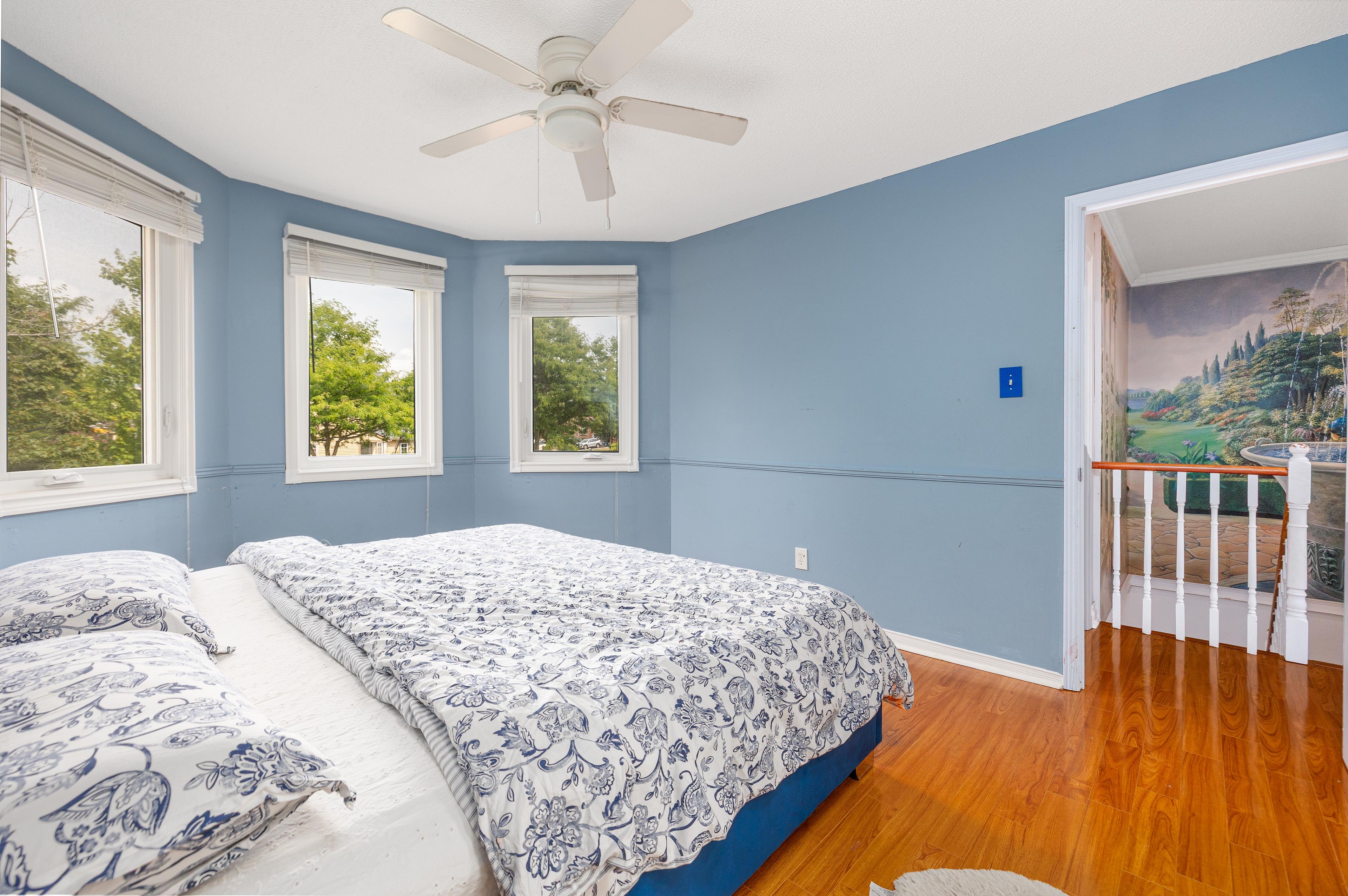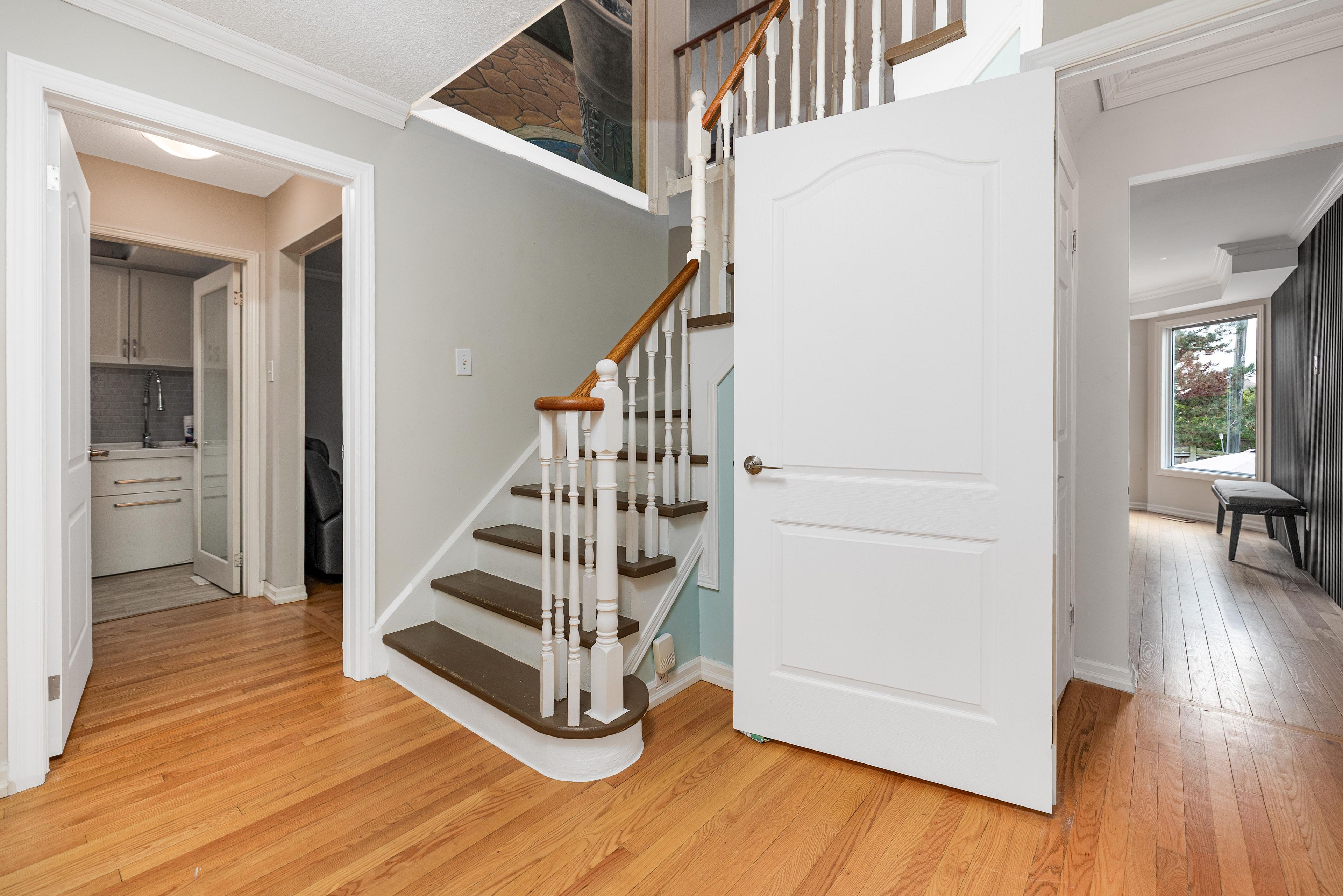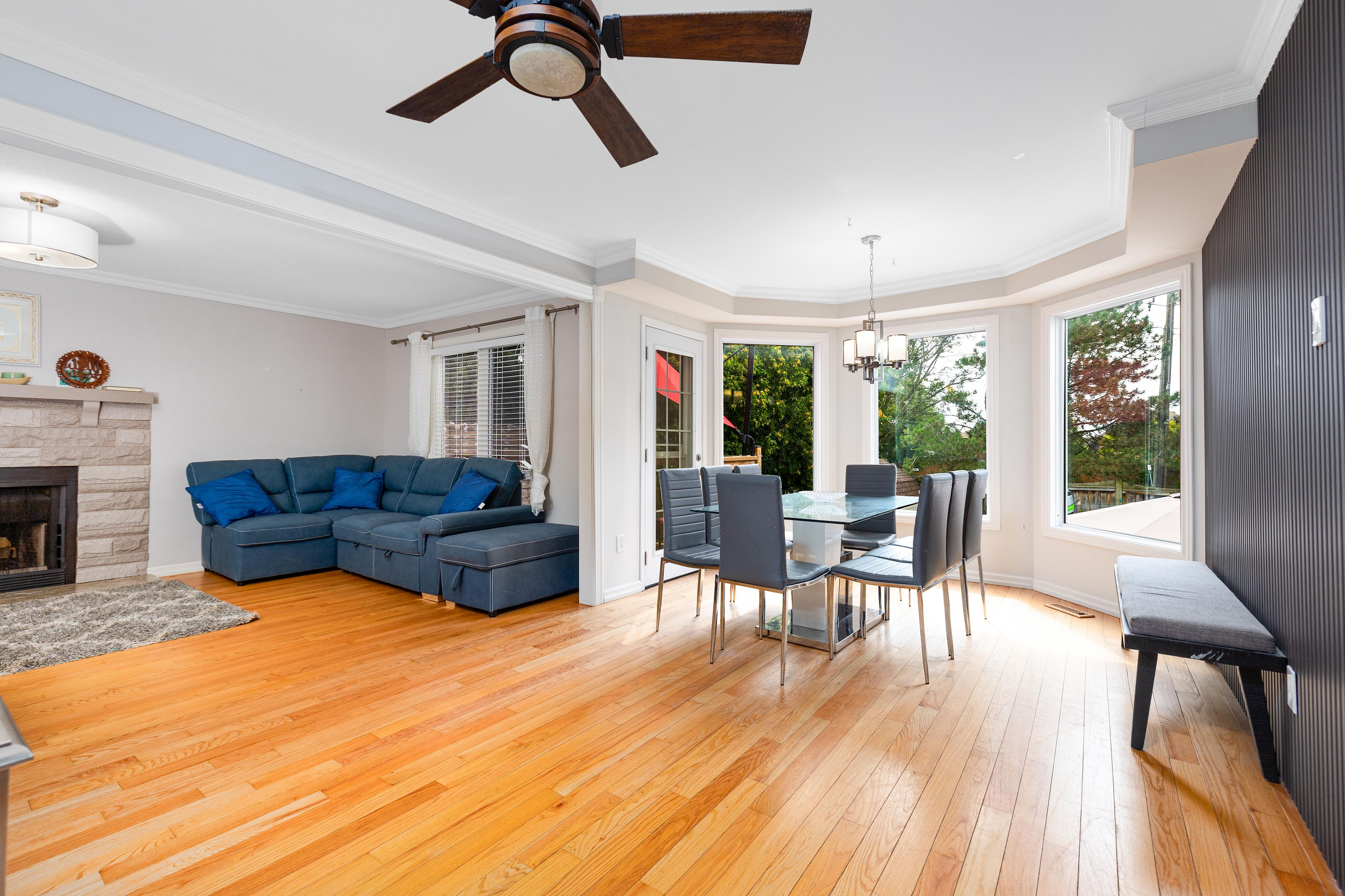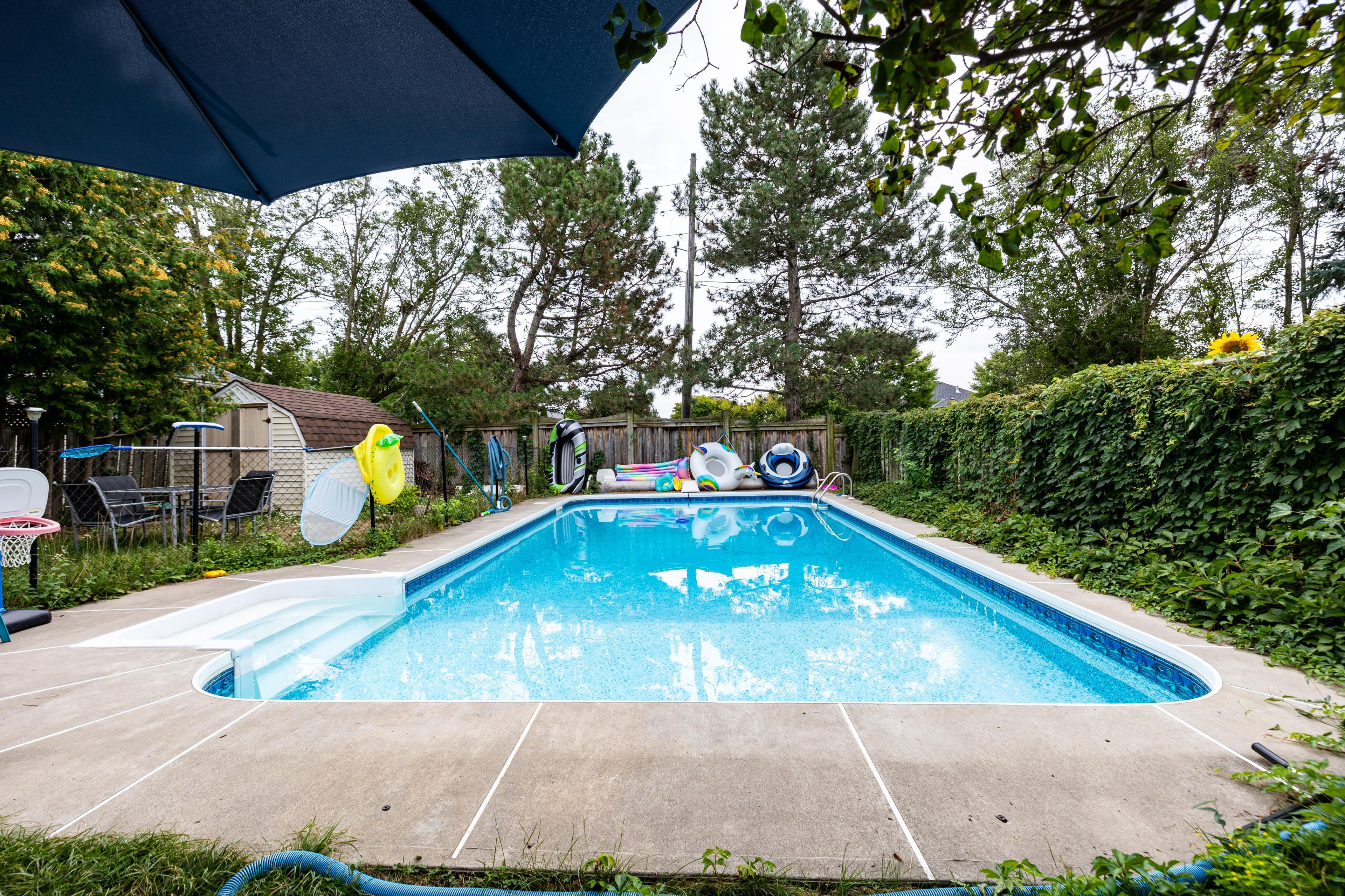Welcoming 4+2 bedroom home with an excellent layout. Good-sized principal room. The main floor features a spacious kitchen with granite counter top, island breakfast bar, large bay window over the sink, stainless steel appliances, backsplash, crown moulding and plenty of counter & cupboard space. Separate dining room boasts hardwood flooring, large window providing tons of natural light and walk-out to deck. Cozy family room with wood-burning fireplace. Separate living room contains hardwood flooring, crown moulding & large windows. The second floor offers four good-sized bedrooms. Primary bedroom boasts an updated 4pc ensuite and walk-in closet. The fully finished lower level is another amazing living area with rec room containing above grade windows, large 5th bedroom, 4 pc bathroom, and plenty of storage. One of the best attributes of the home is the fully fenced, private backyard with no rear neighbours and a fabulous very well-maintained inground pool!