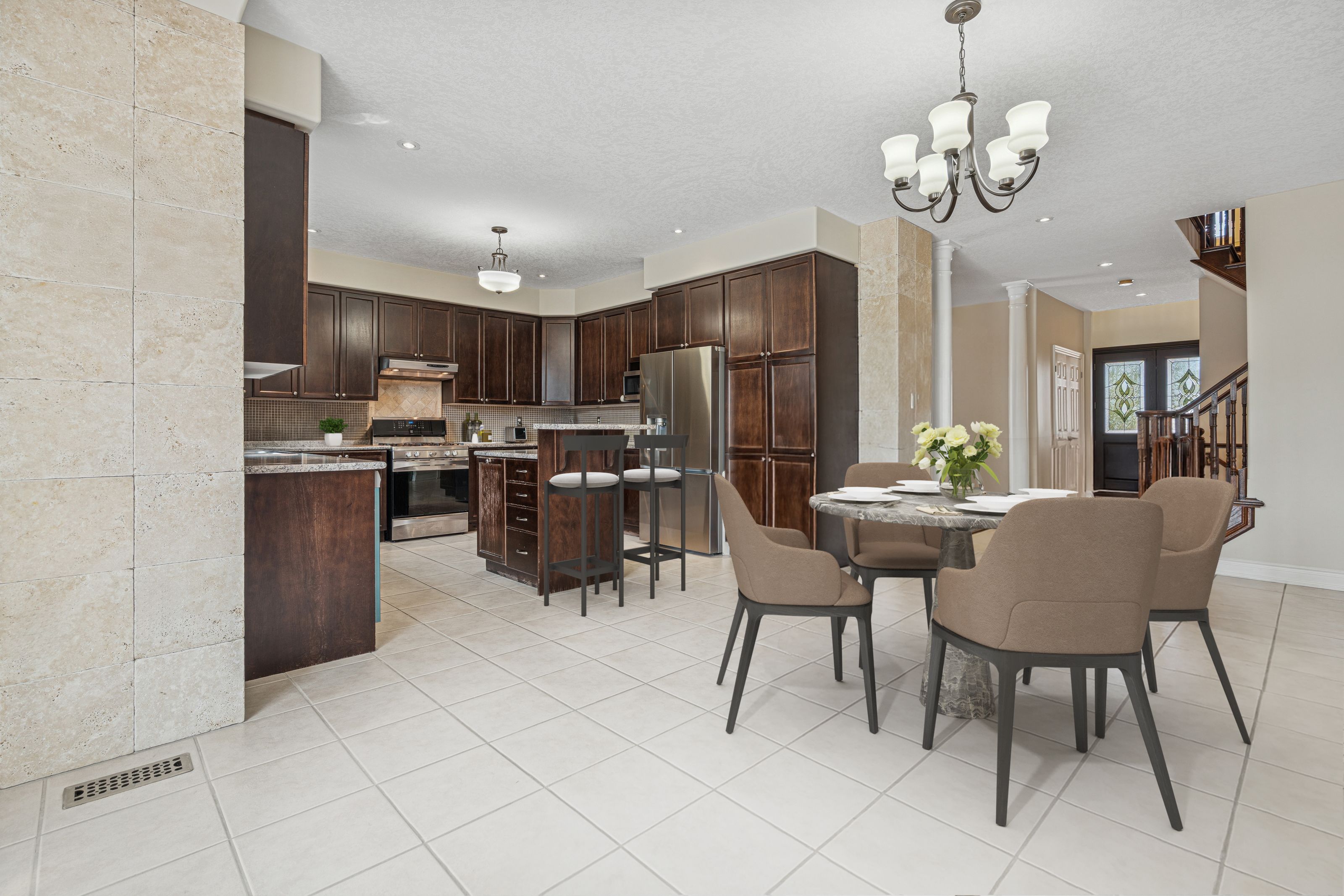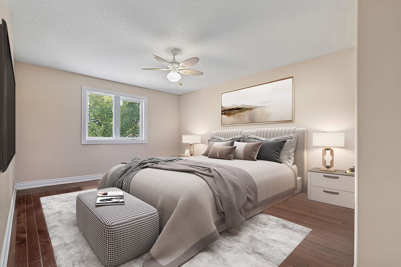 Welcome to this stunning 5-bedroom family home nestled in a sought-after neighbourhood just steps from the lake and nearby parks! Situated in a quiet, family-friendly area, this beautifully updated residence offers over 2,700 sq. Ft. Of above ground living space in addition to a fully finished basement with premium bar from california. Enjoy hardwood flooring throughout, with premium red oak hardwood on the second floor. The spacious layout features a cozy gas fireplace on the main floor and a second gas fireplace in the serene primary bedroom retreat. Thoughtfully upgraded throughout, this home boasts 37 new brick-to-brick windows, all new doors, upgraded plumbing, modern dimmable pot lights, and new fire detectors. The professionally finished basement includes a built-in audio stereo system. Don't miss this rare opportunity to own a truly move-in ready home in an unbeatable location! Some photos have been virtually staged to help showcase the home's potential.