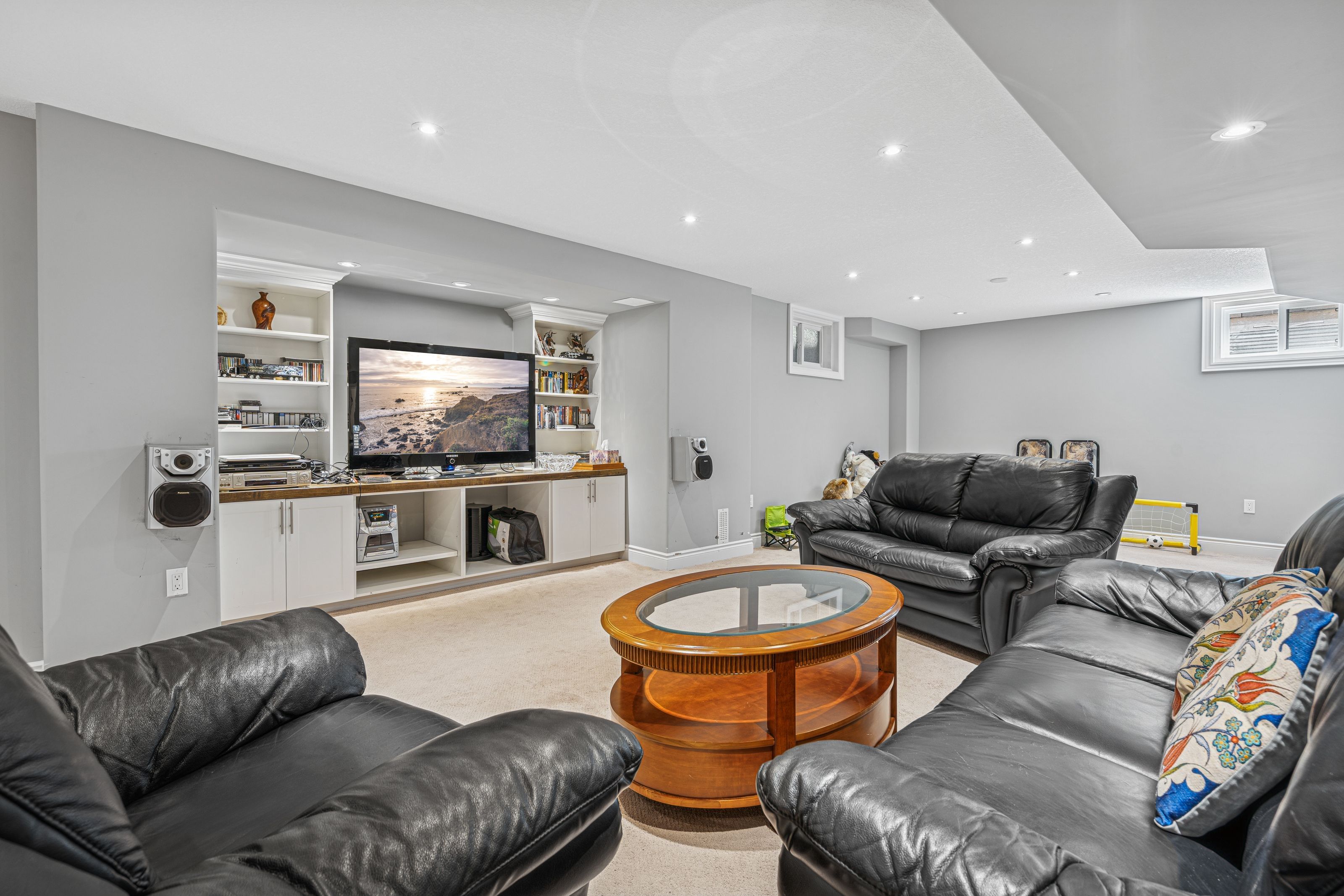 • Finished basement with premium California bar and built-in audio stereo system.