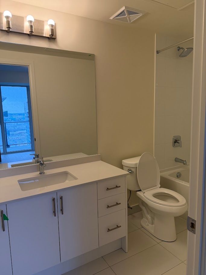 Welcome to charisma on the park in south tower. Luxury condo built by green park. High floor with 9 ft ceiling.. This 1 bedroom condo offers 600 sq. Ft. Of living space, plus a spacious balcony stainless steel appliances, floor-to-ceiling windows, white kitchen cabinets with quartz kitchen island, ensuite-laundry, and modern finishes throughout. The building boasts world-class amenities, including an outdoor pool with a terrace, a state-of-the-art fitness club and yoga studio, a sauna, rooftop sky view lounges, , theatre room, courts, and a billiards room, 24-hourconcierge service for ultimate convenience. Step to vaughan mills mall . This prime location offers easy access to top-rated schools, hospitals, grocery stores, and public transit, one parking spot and one locker included.