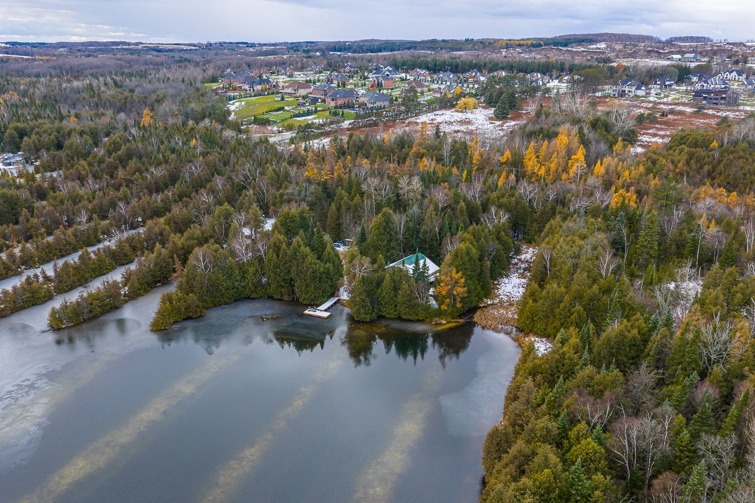 Forget muskoka! Live the cottage lifestyle full-time in caledon's hidden gem of cressview lakes. Lakeside views, kayaking & fishing just outside your doorstep! Only 1 hour from toronto, 3 mins to all of orangeville amenities. Step inside this very private detached 3 bedroom home/cottage and be greeted in the winter/fall months with the warmth of a main floor wood burning stove, this stove can provide enough heat to supplement the main heat source. The main floor also features a large primary bedroom, sitting room, office and rec room. Architecturally designed to have the main living spaces amongst the trees, upstairs you will find a gorgeous sunroom overlooking the canopy of trees with a walk out to both front and backyard decks overlooking spectacular views. The kitchen "in the canopy" features a centre island and dining area. The upper level is complete with two further bedrooms. This home truly feels like a cottage. Enjoy the summer months on your private dock with only one other home on the lake and one seasonal neighbour on the private road. Fish for wide-mouth bass steps from your front door! Swim, boat or kayak through the "finger lakes", skate, cross country ski, or ice fish in the winter. This home is central to hiking and biking trails, cross country ski clubs and downhill skiing. A perfect retreat for a full time residence or a cottage escape from the city. Motorized boats & short-term rentals are not permitted. Not a co-op, land lease or a condo, non conventional financing as 1/16 ownership in not for profit corporation of cressview lakes. Buyer will have a share in the corporation along with the other homeowners on cressview lakes. You own the home and have exclusive use of private lot #30. Cressview fee association is $500 annually. *200 feet of waterfront based on survey. Frontage is irregular shaped