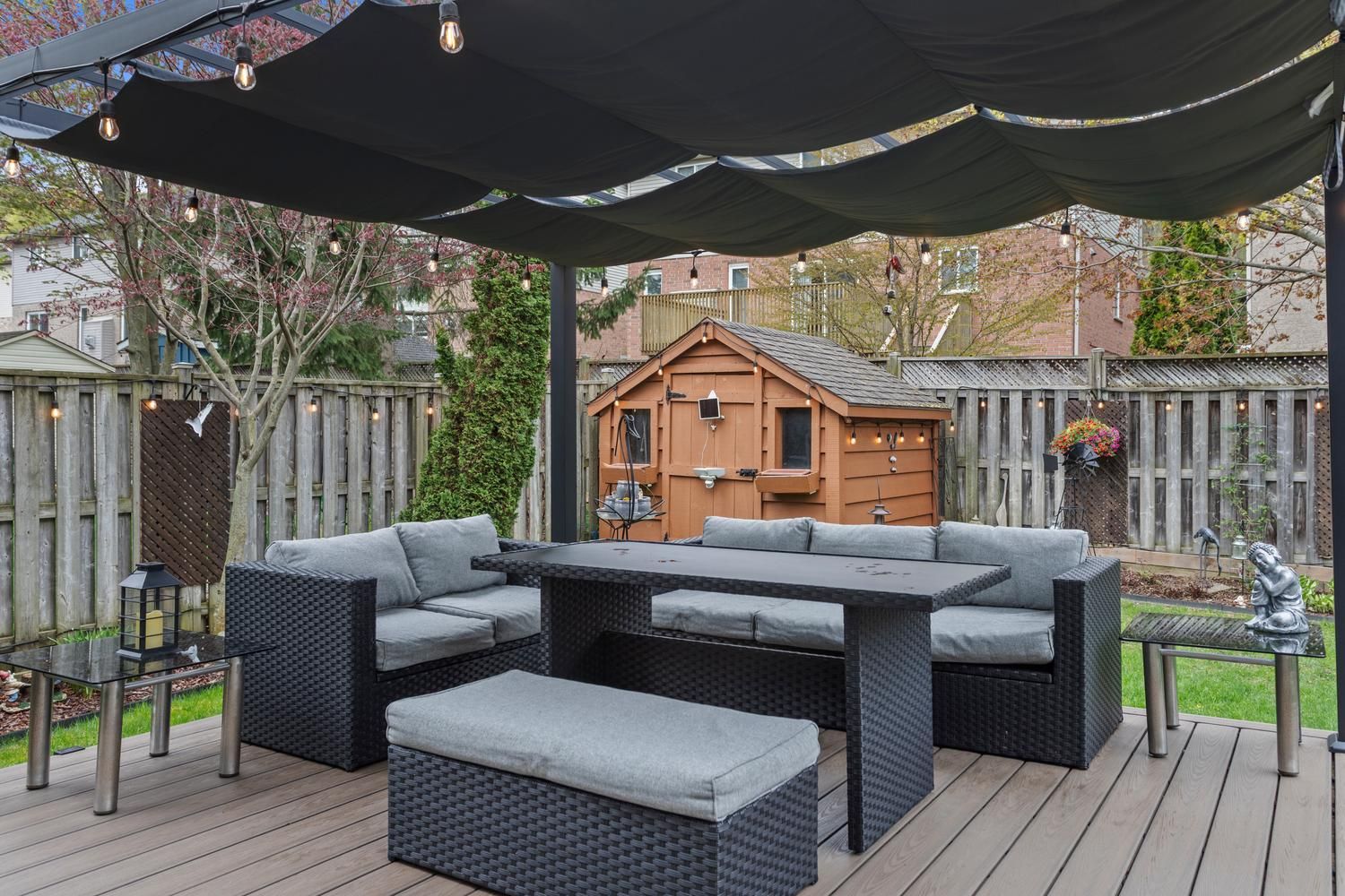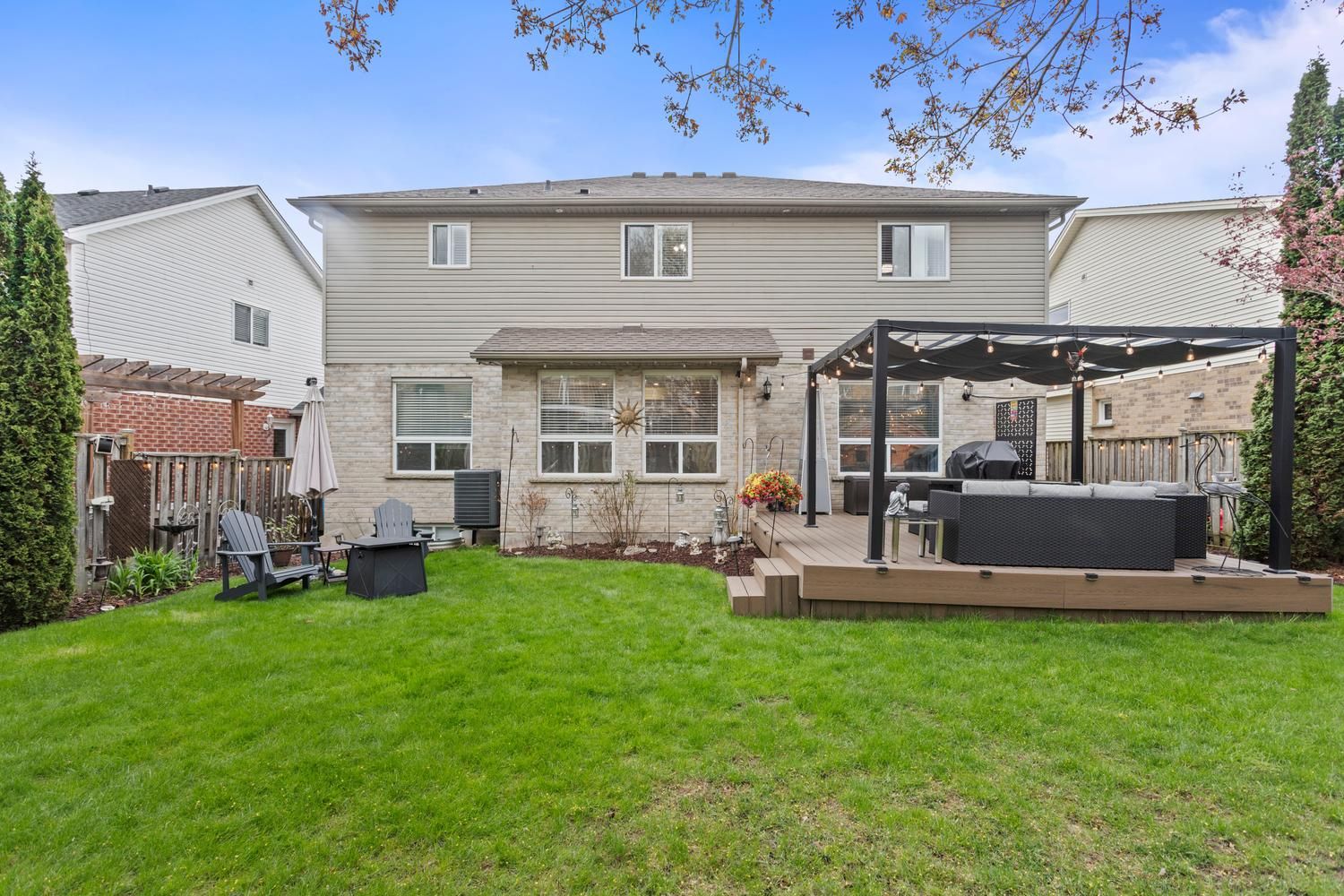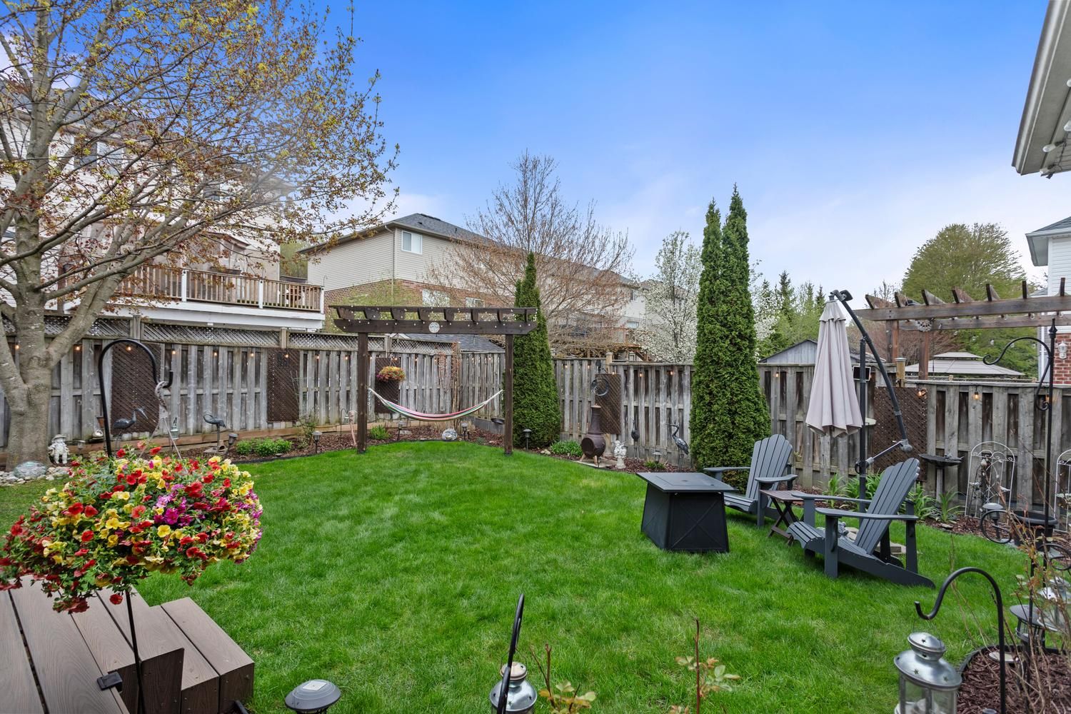• Private backyard with deck, pergola, and mature gardens for relaxation.