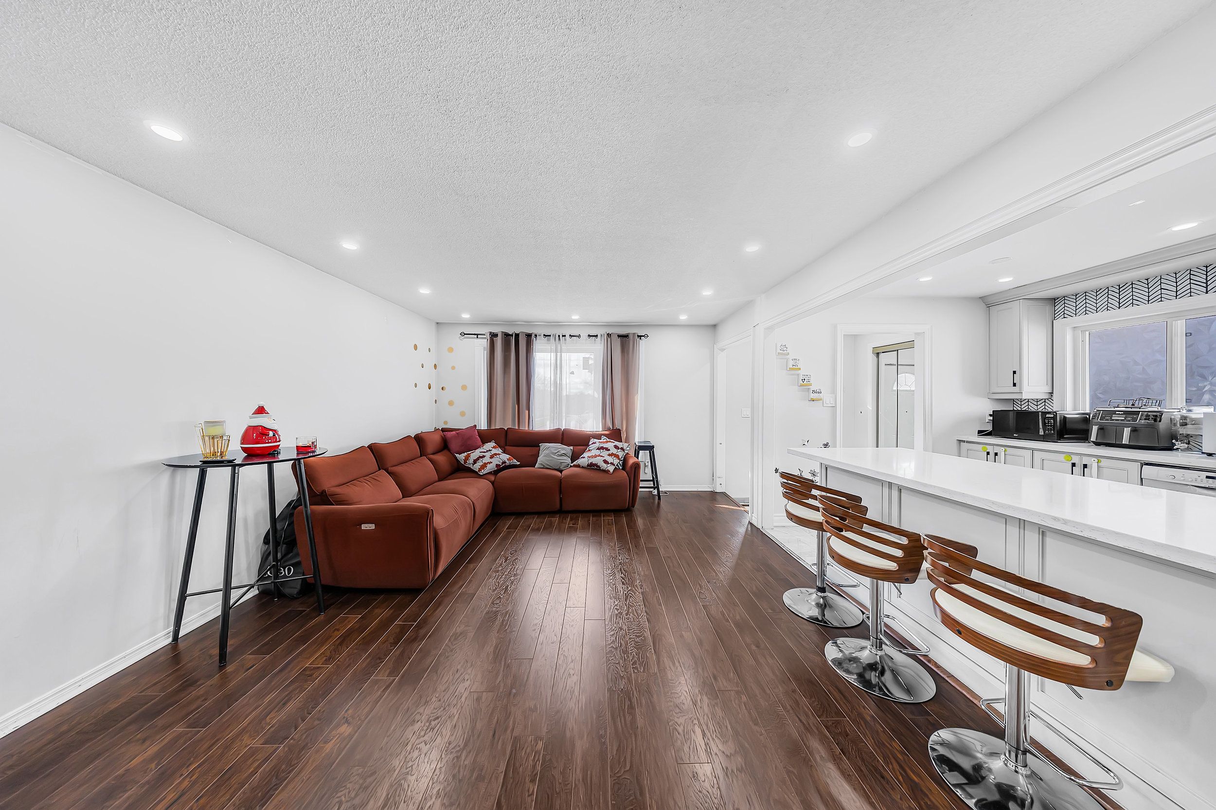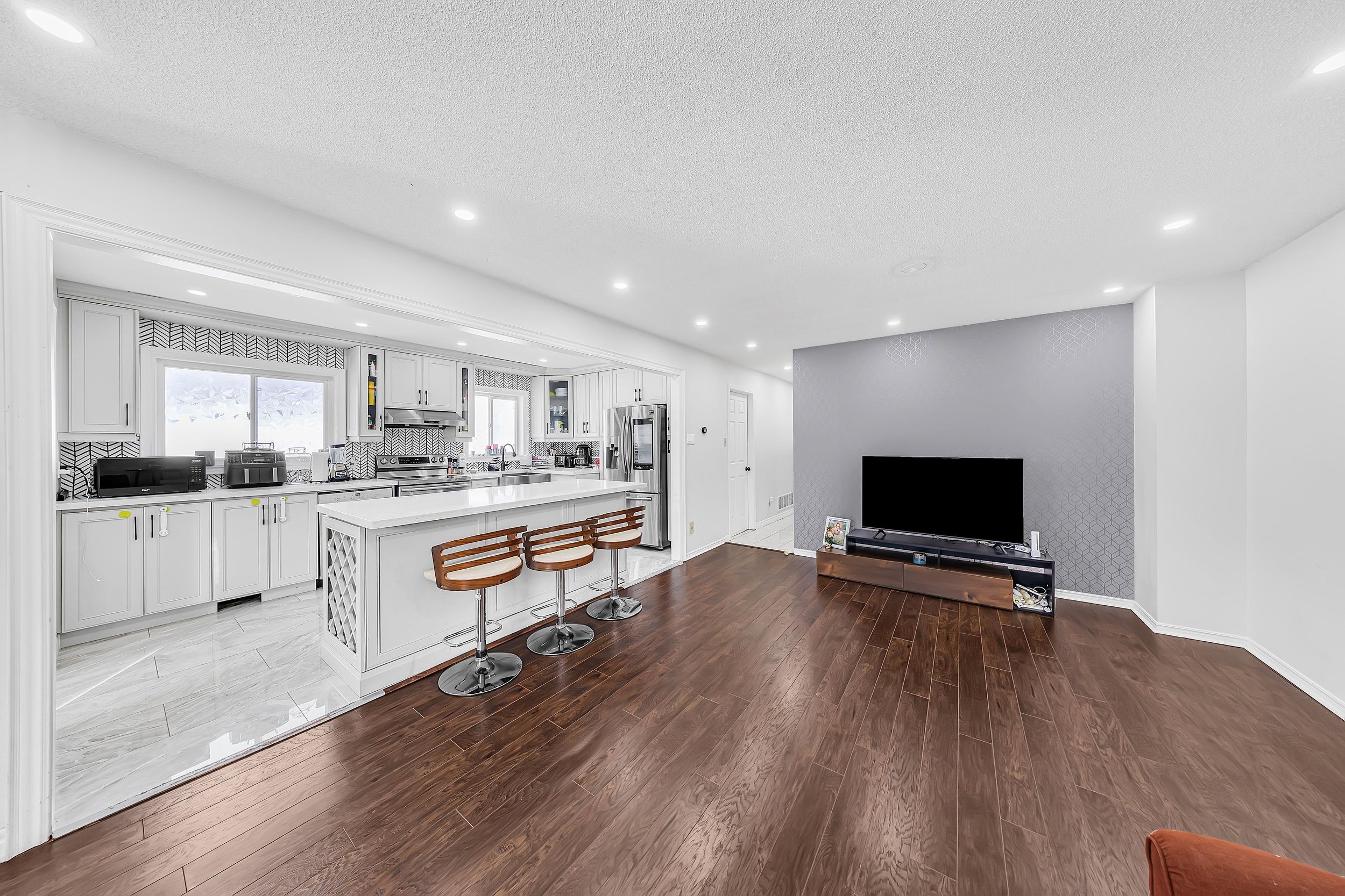 • Bright open-concept kitchen with stainless steel appliances for easy entertaining.