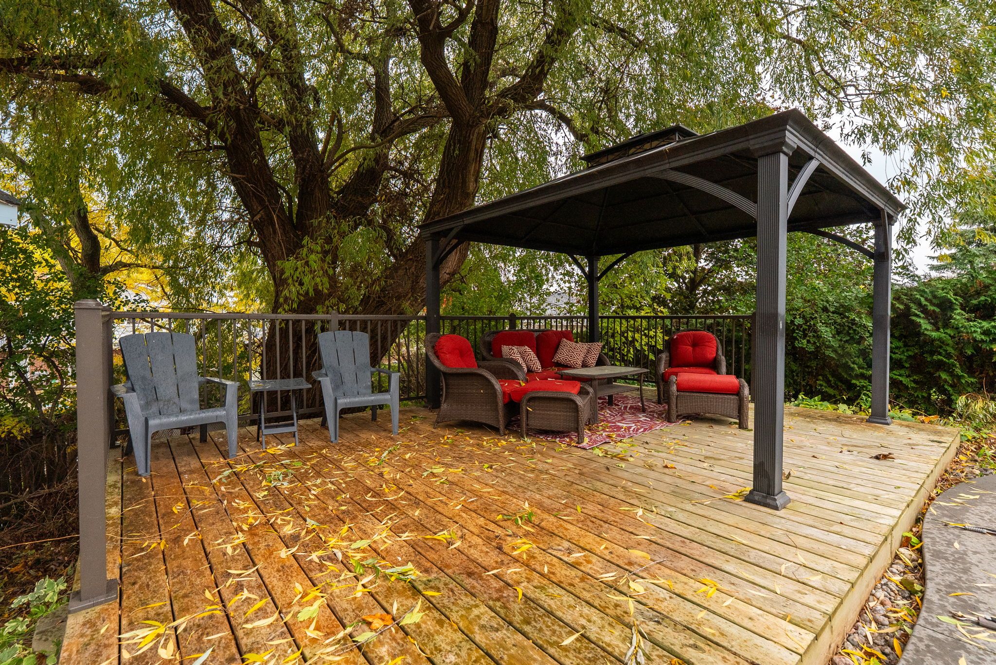 • Private yard with composite deck, saltwater pool, and two gazebos.