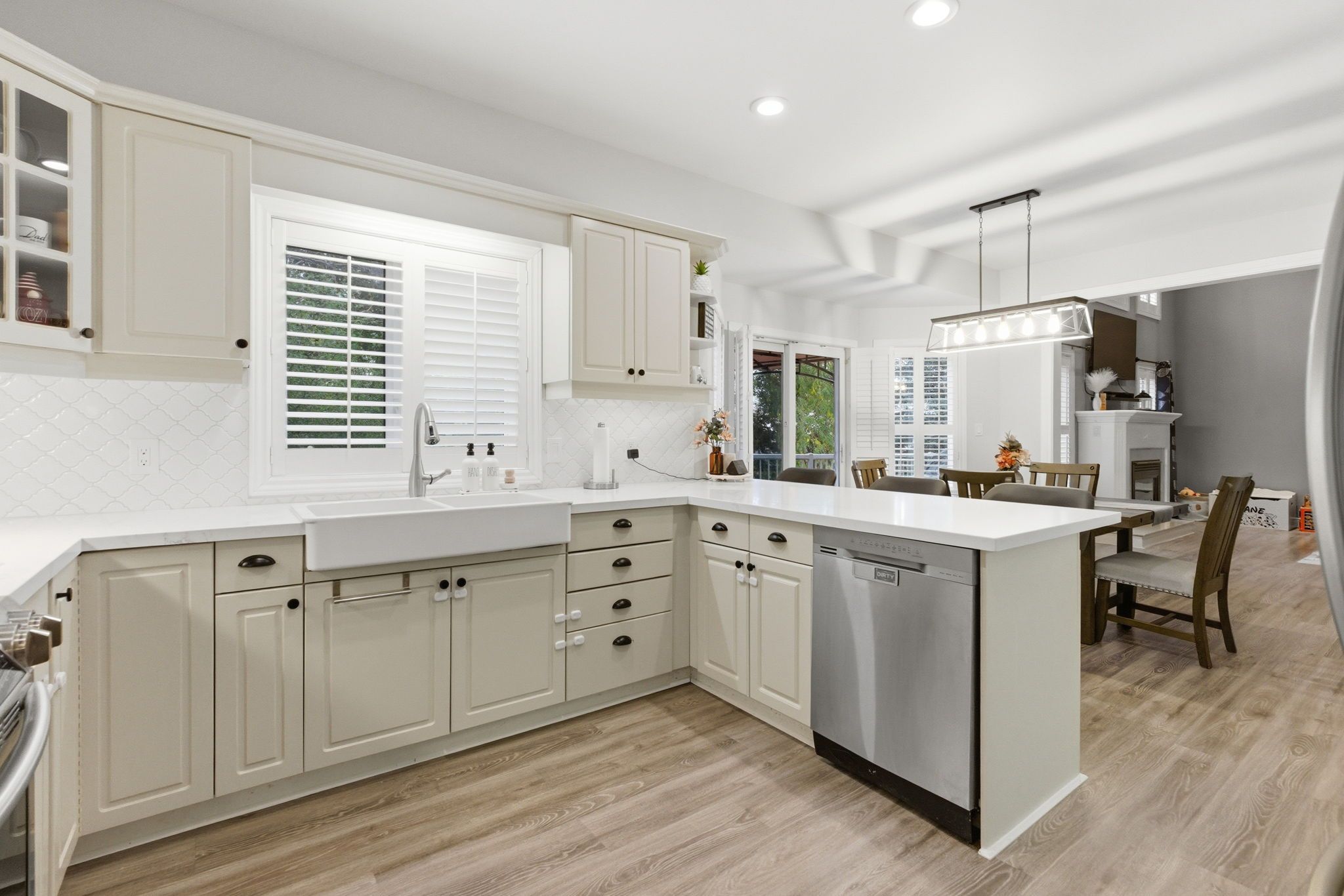 • Large kitchen flows into family room with cathedral ceiling.