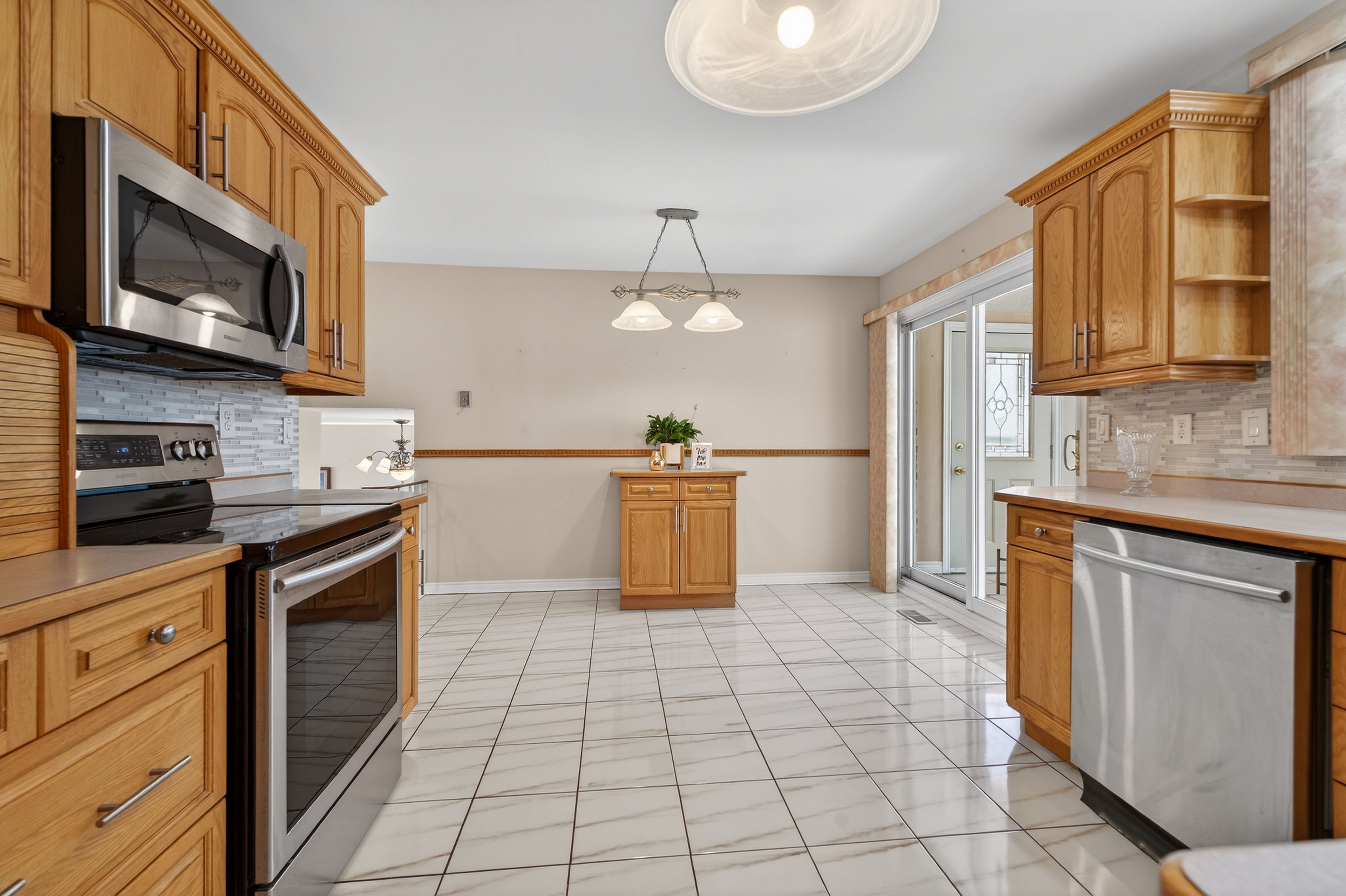 • Generous eat-in kitchen flows into a bright sunroom for relaxation.