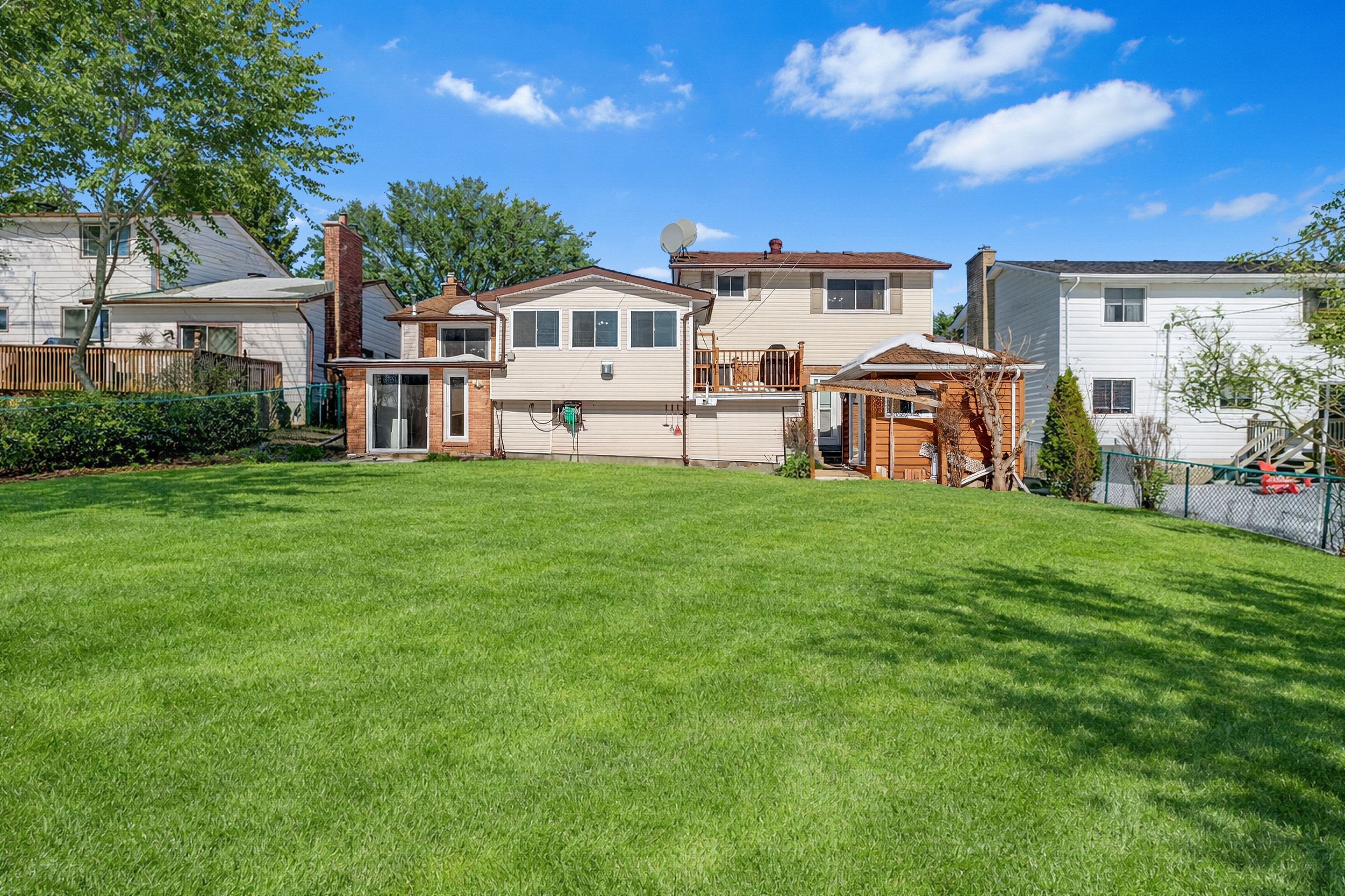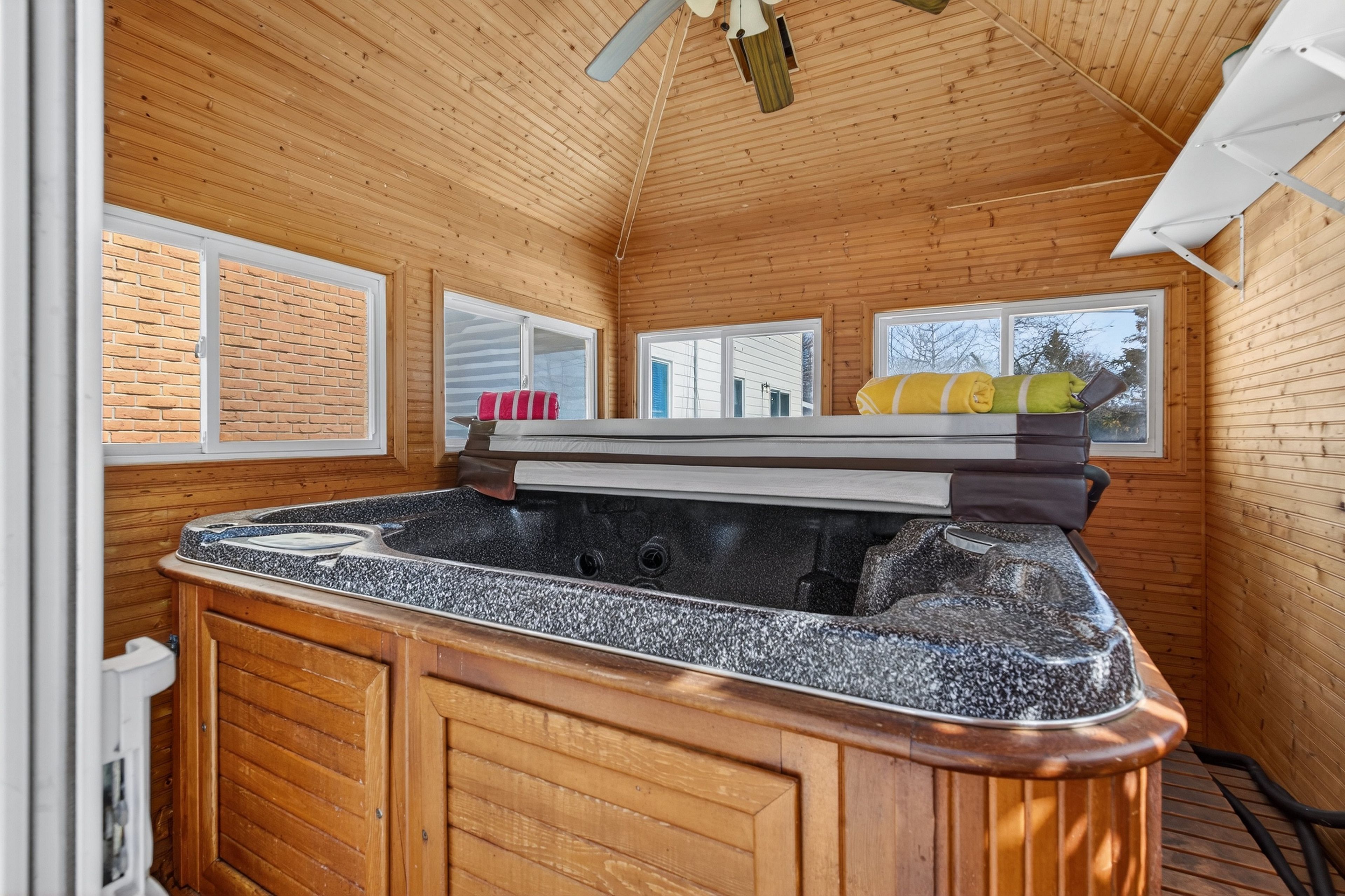 • Oversized backyard oasis with a hot tub for year-round enjoyment.