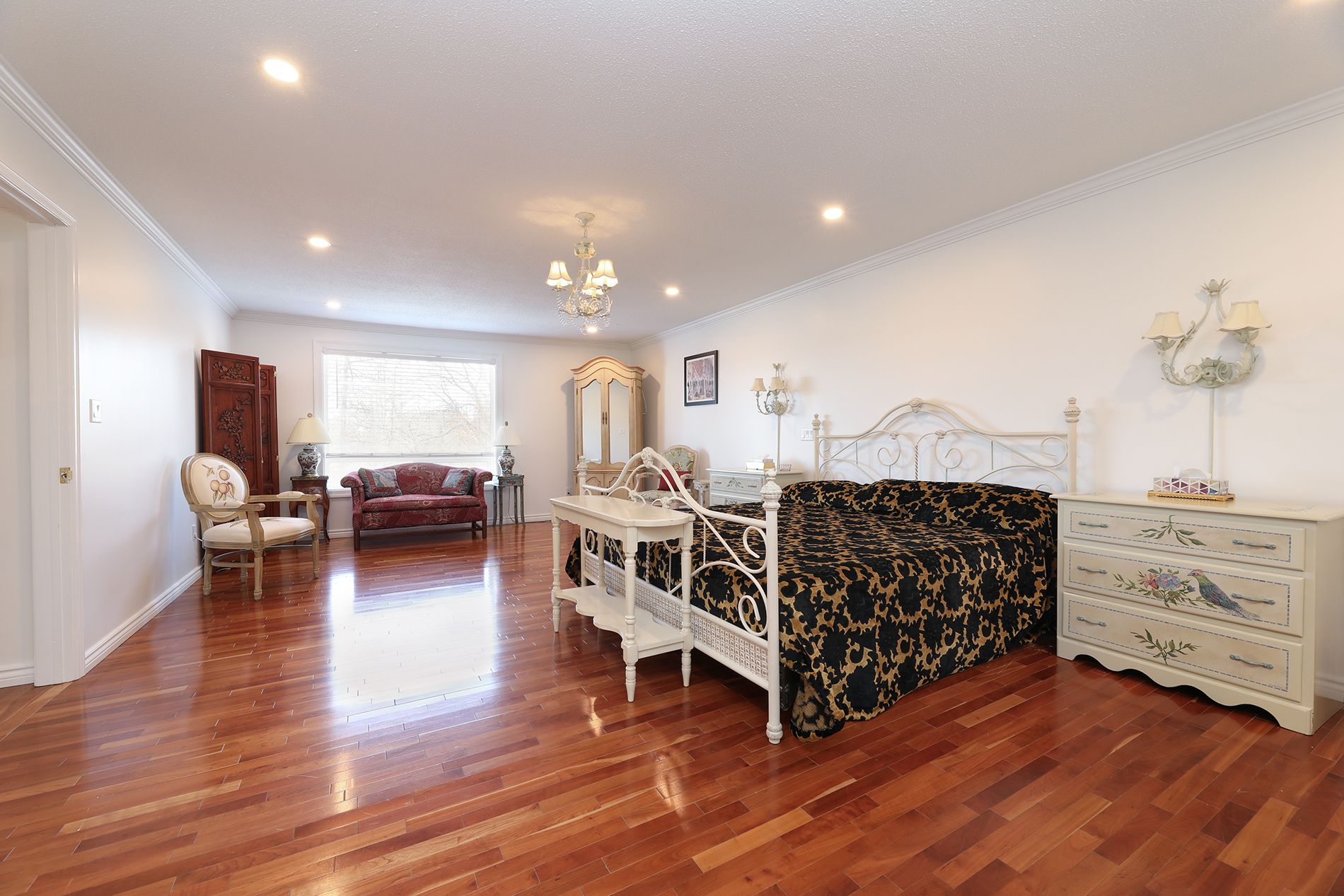 • Grand primary suite features rich hardwood floors and peaceful views.