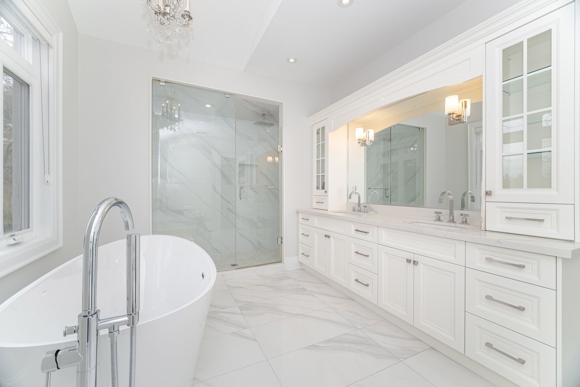 A new era of luxury, steps to the lake ontario! Over 5,500 sqft with its abundant light, lavish amenities, and designer touches, this beauty will captivate your heart. Elegance and sophistication is quickly recognized upon pulling into the 10-car driveway with stone interlocking. Finely crafted living space, offering: high ceilings, exquisite foyer, executive office, designer kitchen w/panoramic view of backyard oasis, breakfast area, great room with coffered ceilings, built in speaker & walk out. The kitchen is the epitome of culinary excellence with granite countertops, jennair appliances, and a butler's servery that seamlessly integrates the kitchen to the formal dining and living areas - perfect for those sophisticated soirees. Retreat to master suite with balcony, sitting area and double sided gas fireplace, spa inspired ensuite with heated floors & large w/i closet. The finished lower level includes a recreation room with a marble fireplace, wet bar, a private cinema with built-in sound system, 5th bedroom, and spa-like 2 bath. Beautifully landscaped backyard with large composite deck. Peace and privacy are guaranteed with a single entry point.