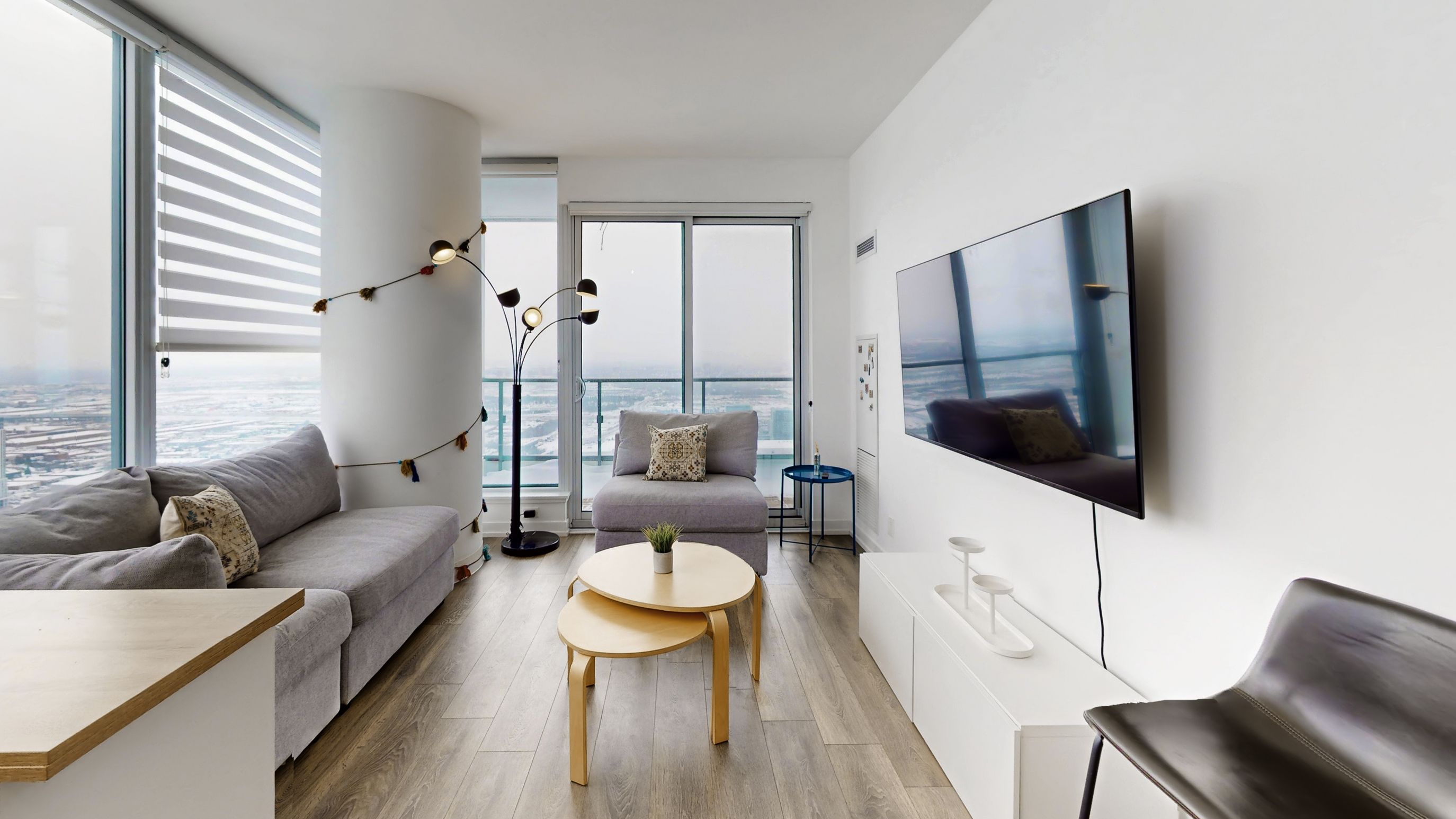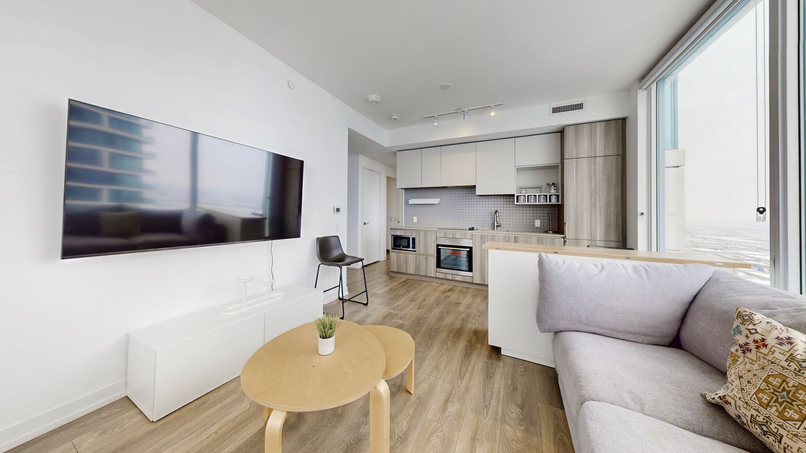 Fully furnished 2-bedroom 2-bathroom corner suite located on the 55th floor with breathtaking, unobstructed views. Featuring a modern open-concept layout with floor-to-ceiling windows, contemporary kitchen with built-in appliances, and stylish finishes throughout. Enjoy abundant natural light and a functional layout ideal for comfortable urban living. Steps to vaughan metropolitan centre subway station and bus terminal, with easy access to highways, shopping, dining, and york university. A turnkey opportunity in one of vaughan's most vibrant communities.