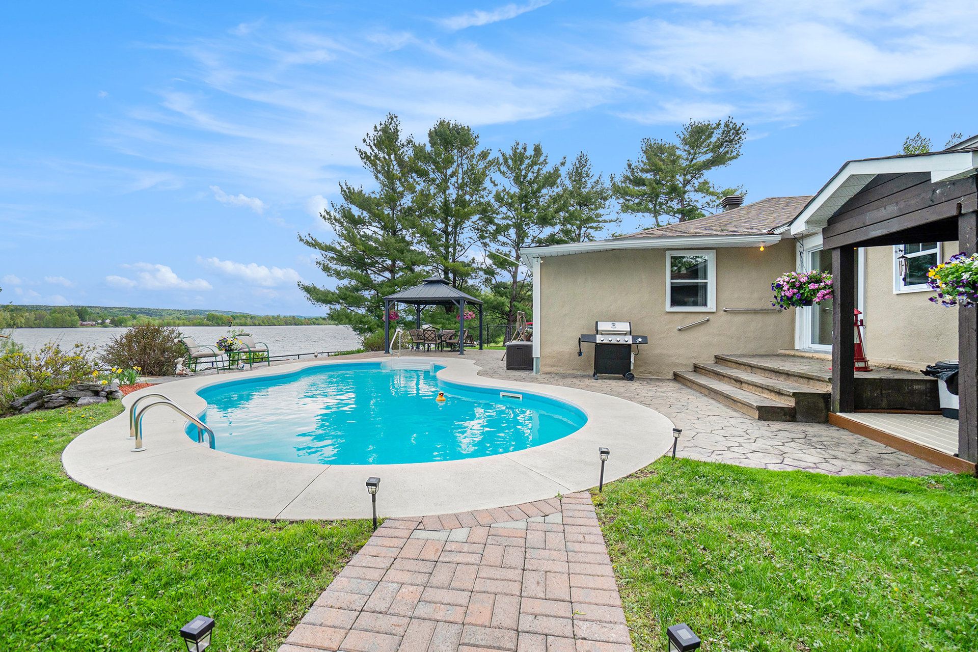 Looking for a waterfront bungalow with an inground pool and heated workshop? Welcome to this spacious lovingly cared for home on just over an acre, situated high and dry along the banks of the ottawa river. Pines, pears, apple and cherry trees surround the property making it a true nature lovers paradise! Take in the spectacular views of the river outside or inside from the living room. Watch the birds from the sunroom at the front of the home with an abundance of windows throughout. You will love to entertain all year round in the massive dining room and living area. The modern kitchen offers functionality with plenty of cupboards, equipped with stainless appliances. You can always find a peaceful retreat in your primary bedroom with ensuite and a bonus room just for you! Two more good sized bedrooms and a full updated bath and laundry area. Work remotely?, there is an office for that too. Now, step outside..... Pool or boating? Why choose when you can do both or hangout on your dock for a little fishing! Sit under the gazebo for a bit of shade or the screened in one to take a nap, both are included! Now in case you have a hobby or just need more space for the toys, there is a 24' x 34' heated workshop for that too plus a 2 car attached garage and carport. Many inclusions. Come take a look. 40 mins to orleans.