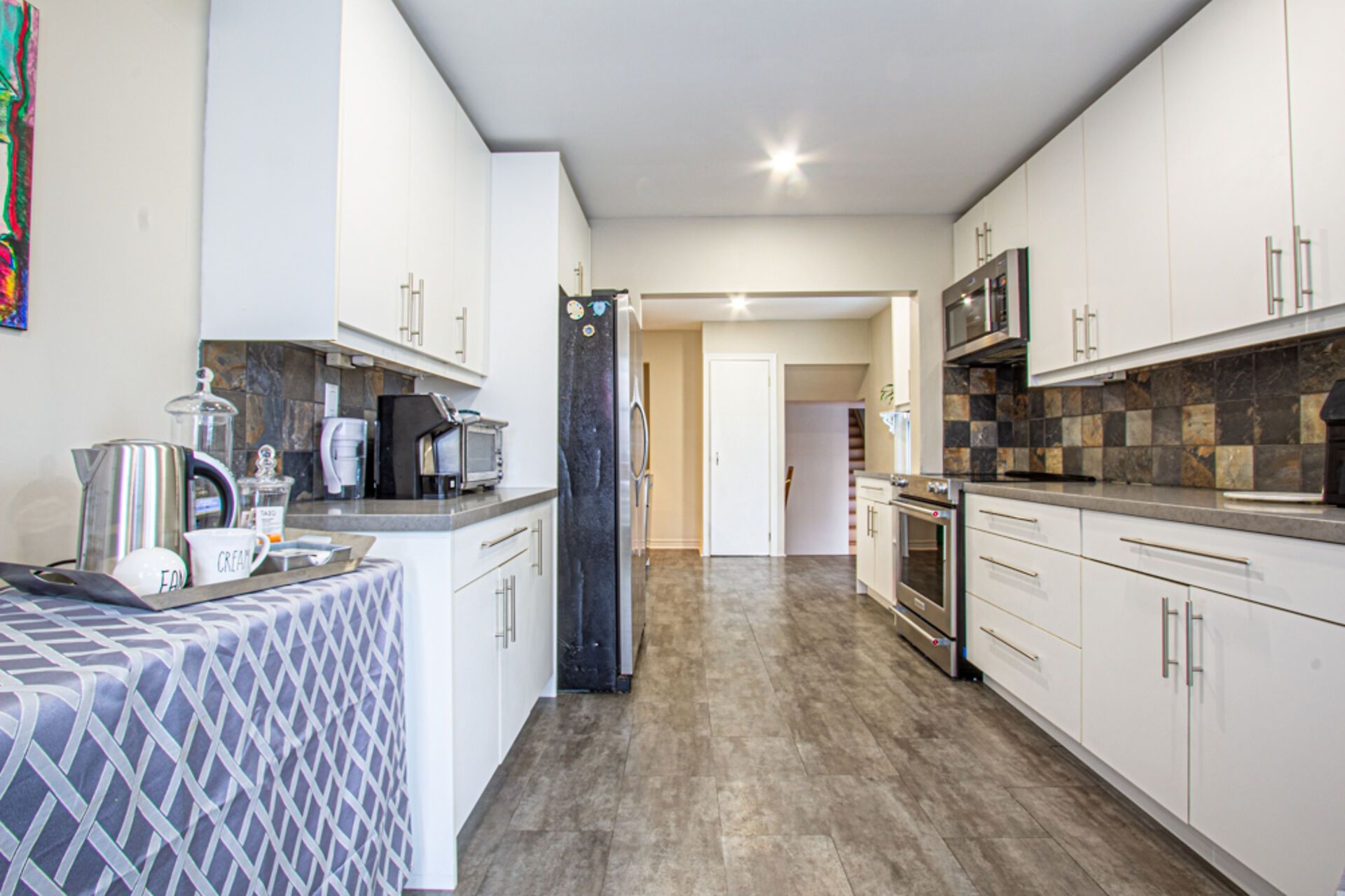 • Remodeled kitchen with modern appliances; perfect for cooking and entertaining.