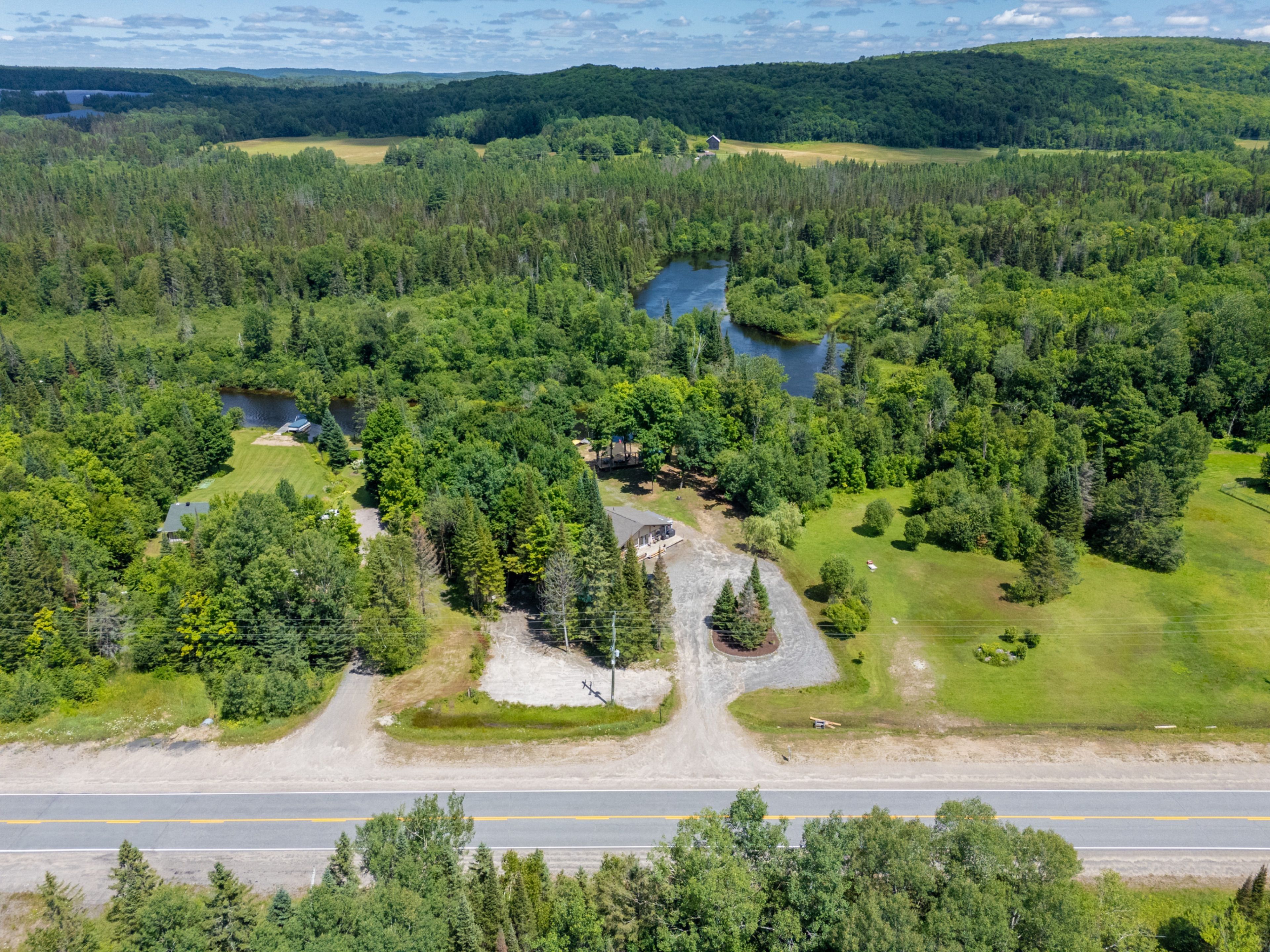 • Charming 3-bedroom bungalow on a spacious 1.1-acre riverside lot.
