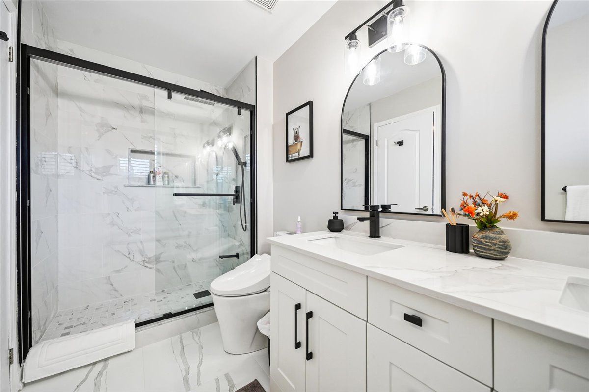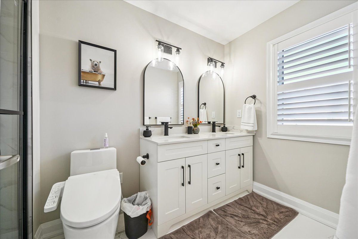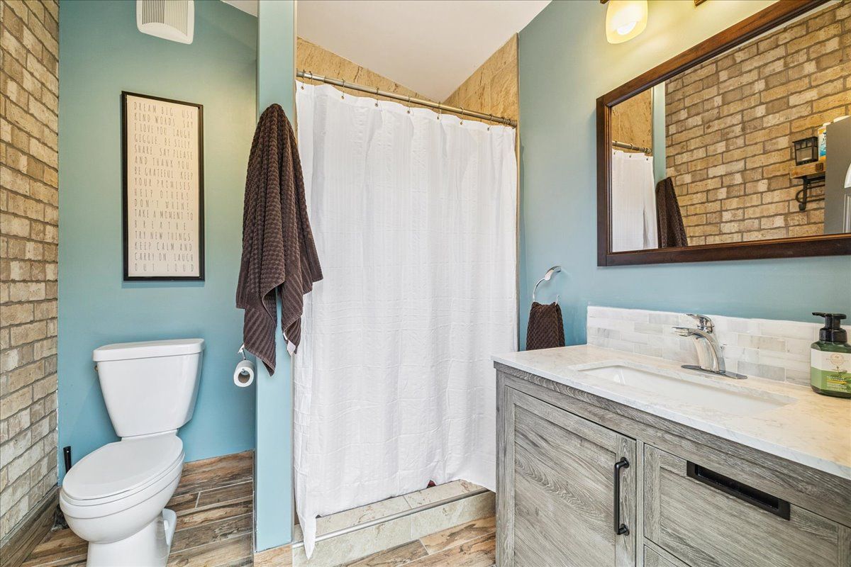 • Cottage-like backyard with an outdoor bathroom for convenience.