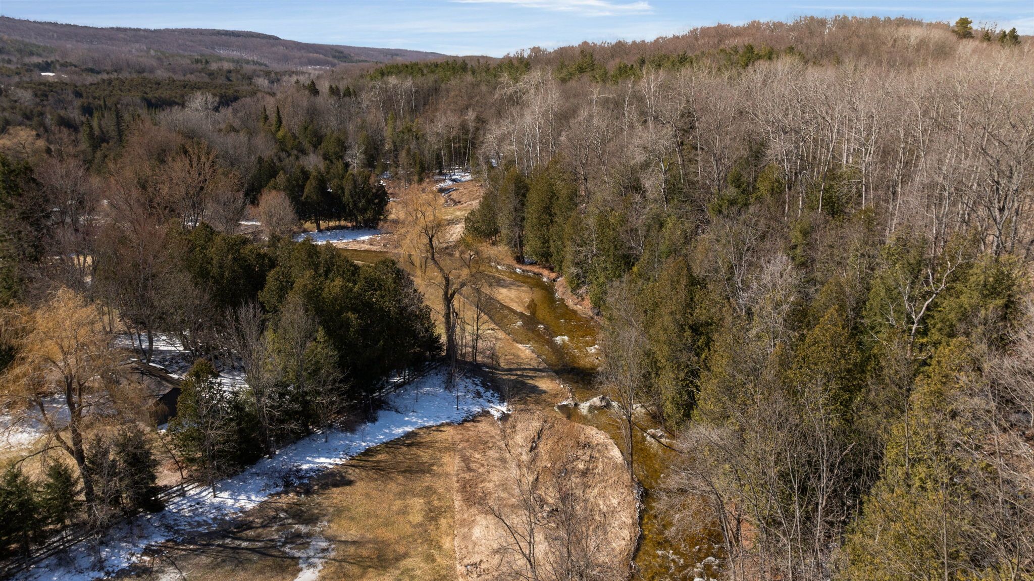 Welcome to a truly rare offering in the heart of dunedin, where heritage, craftsmanship, and modern comfort come together on a beautifully private one-acre parcel. At the centre of the property stands the iconic 1884 fieldstone forge, originally the hamlet's blacksmith shop. This remarkable 1,200 sq ft structure has been thoughtfully preserved and extensively reinforced, including professional excavation, v-cut regrading, and a full weeping tile system for long-term integrity. With updated electrical and soaring interior volume, it presents an exceptional opportunity for an artist's studio, home-based business, or future accessory dwelling. An inspiring space with endless potential under the flexibility of hr zoning. The main residence offers over 1,200 sq ft of warm, refined living. A beautifully renovated kitchen anchors the home, blending function and style for everyday living and entertaining. The inviting living room, centred around a classic woodstove, creates the perfect setting for cozy evenings after a day outdoors. With three bedrooms and a bright, updated bathroom, the home is well-suited for full-time living or a weekend retreat. Step outside and embrace the lifestyle that defines this area. With dunedin river park next door and the bruce trail just steps away, year-round recreation is truly at your doorstep. Skiing at devil's glen and the shops, cafés, and charm of creemore are just a short drive. A property rich in character, thoughtfully updated, and deeply rooted in its surroundings, this is a rare opportunity to own a piece of local history while enjoying the ease of modern living.