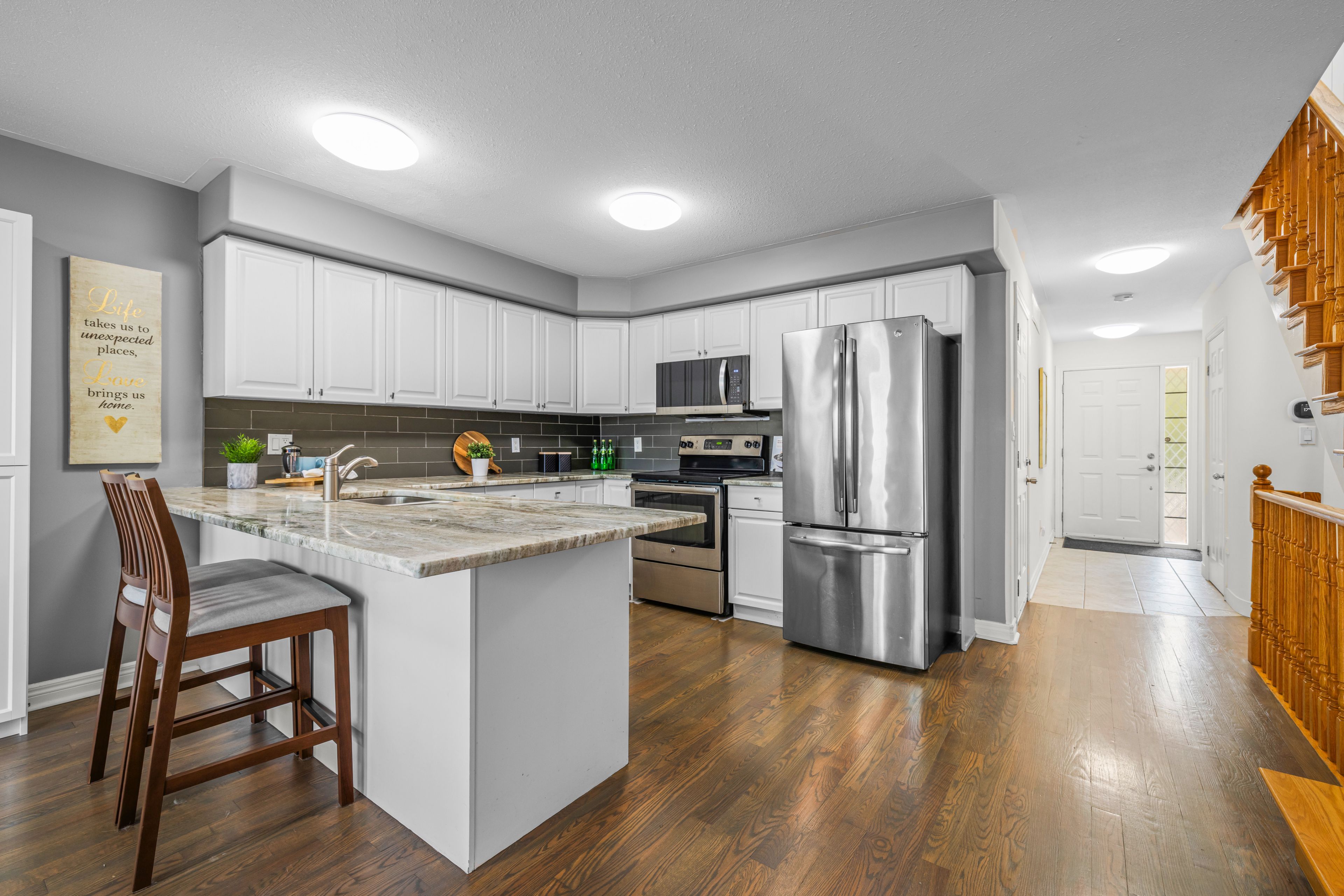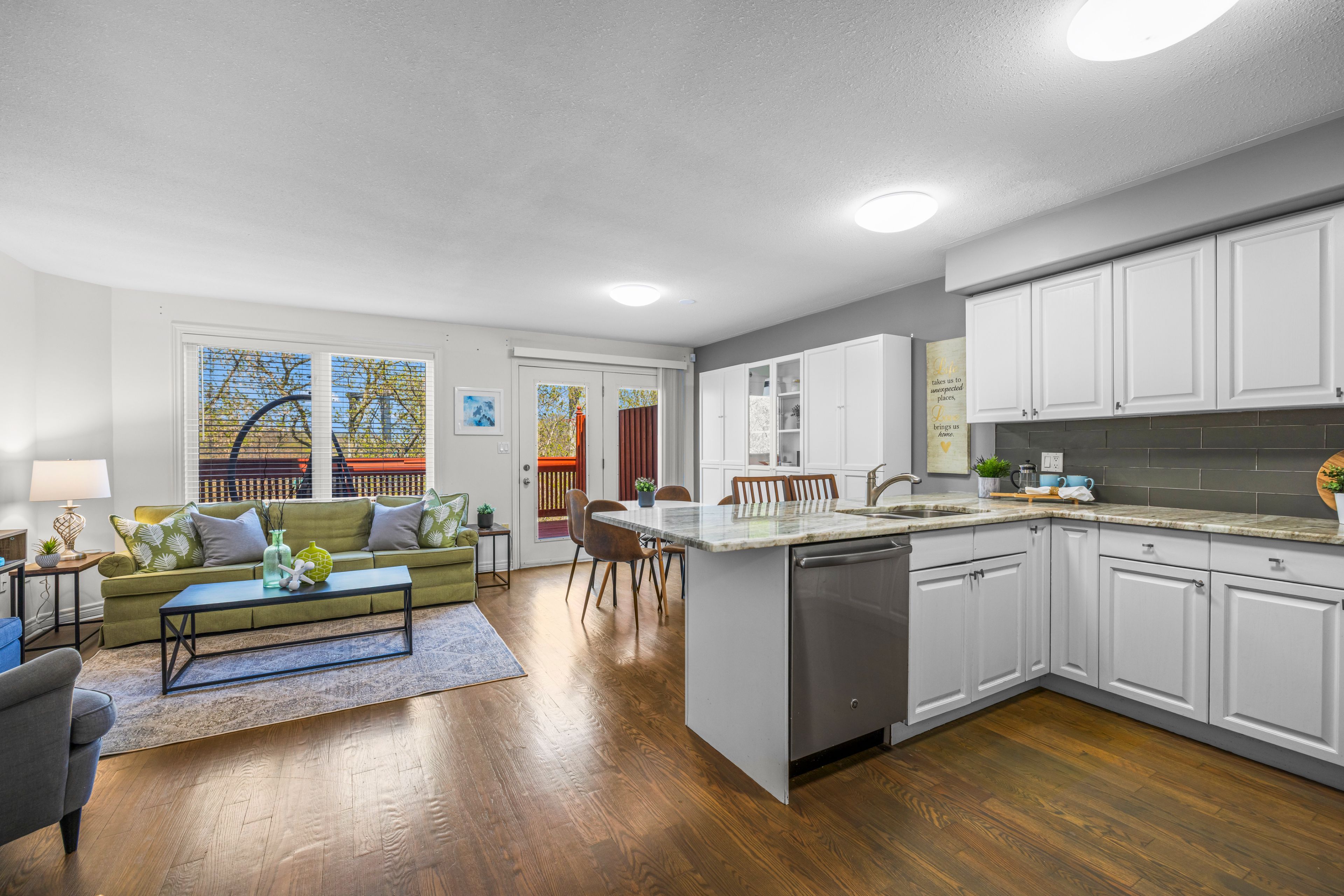 • Open concept main floor with natural light and stylish kitchen features.