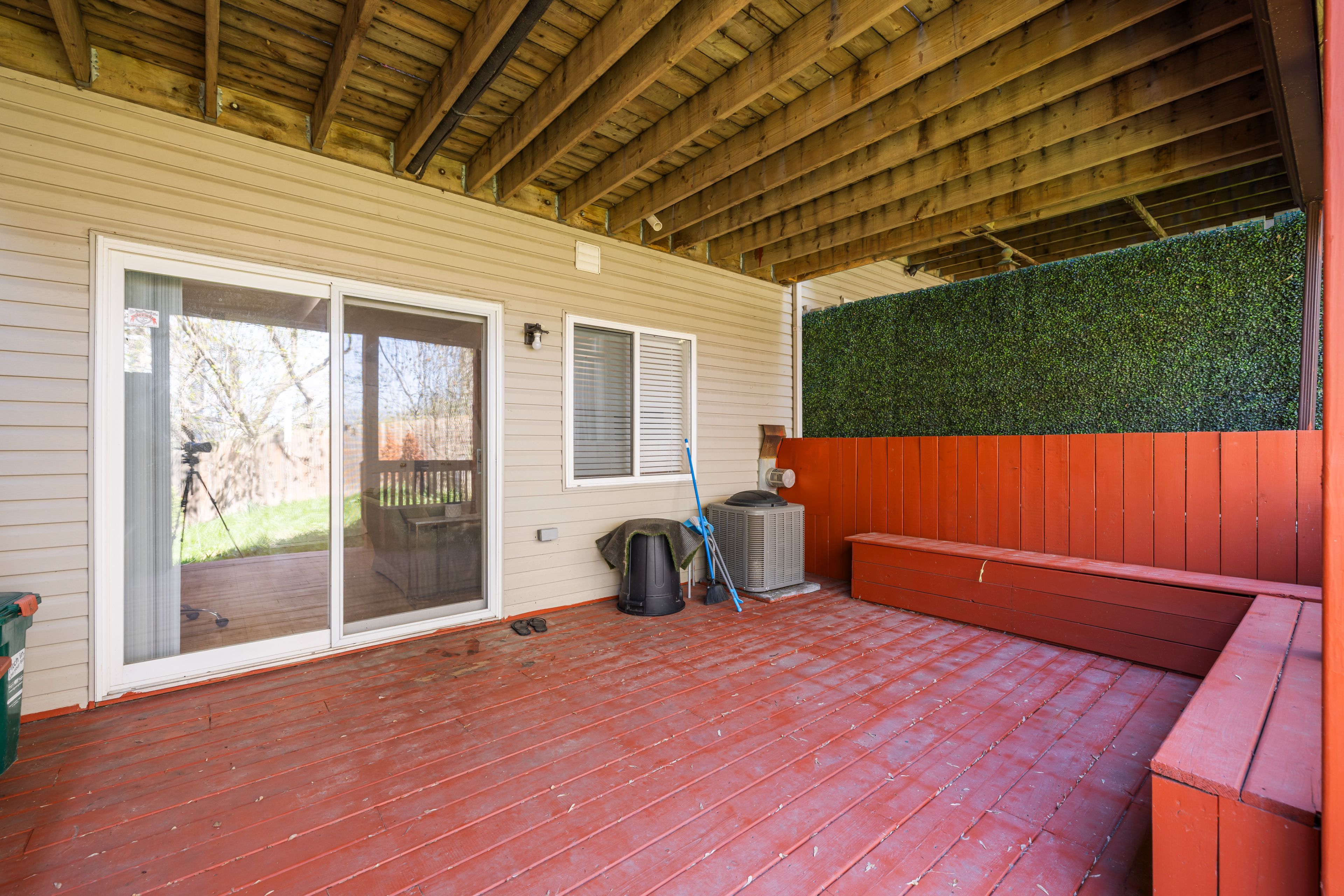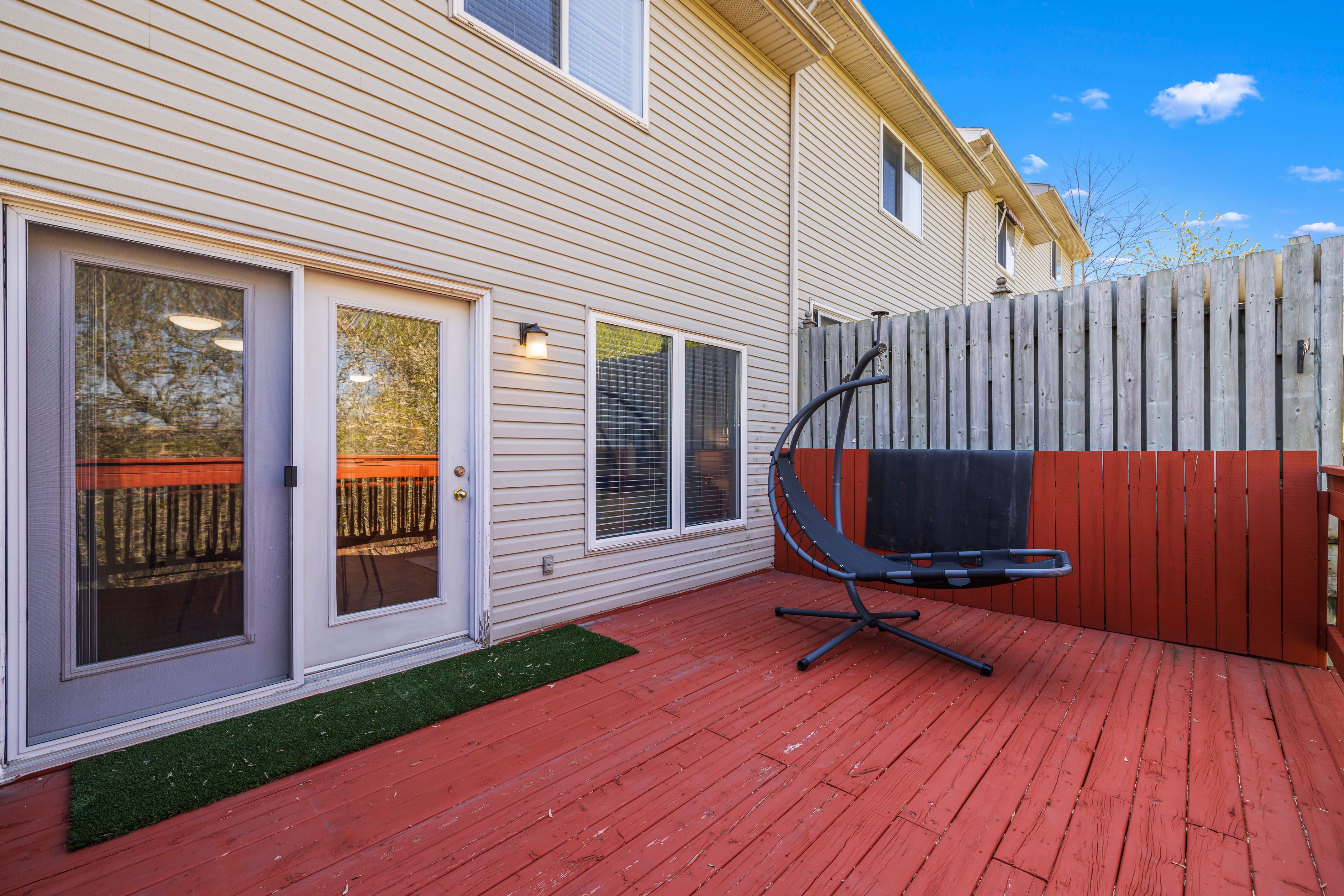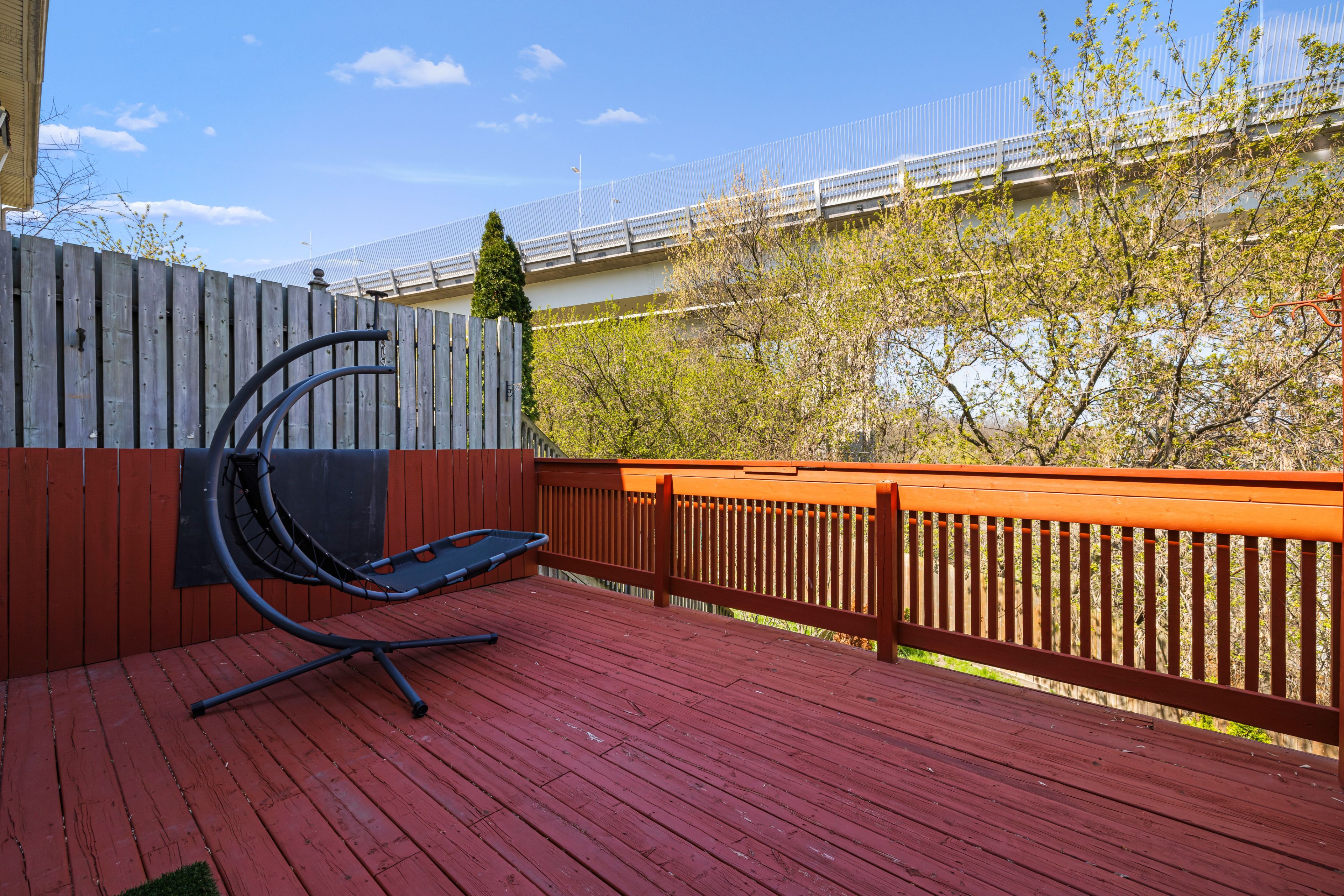• Private backyard with stunning views of the creek and multiple decks.