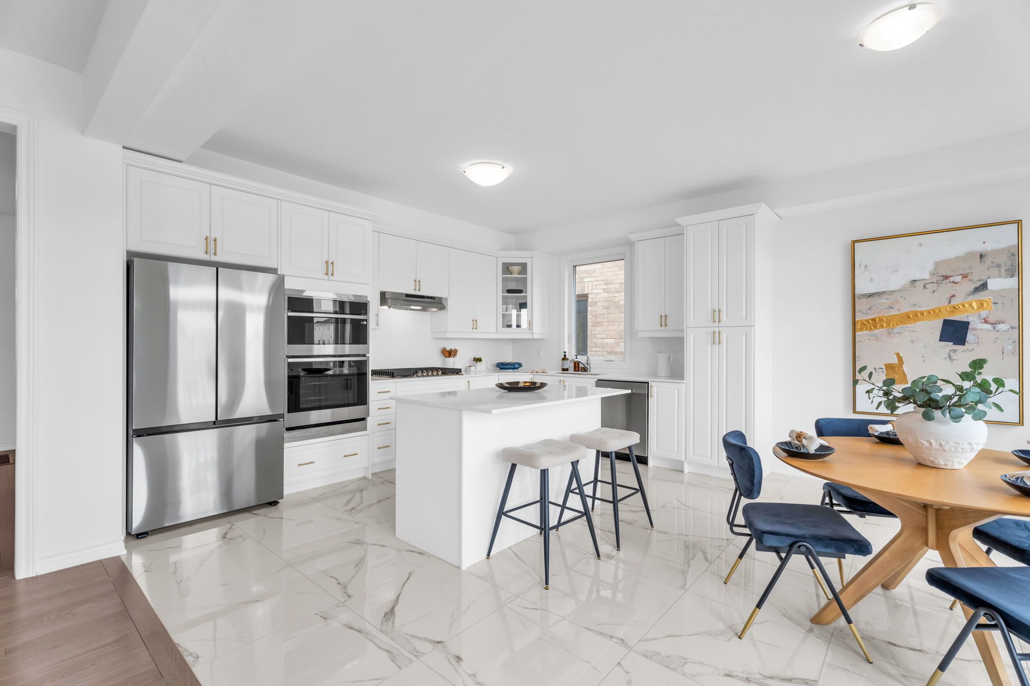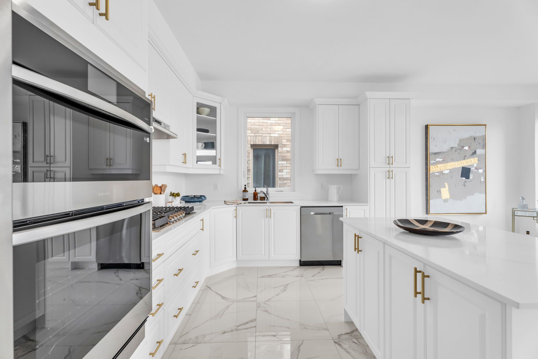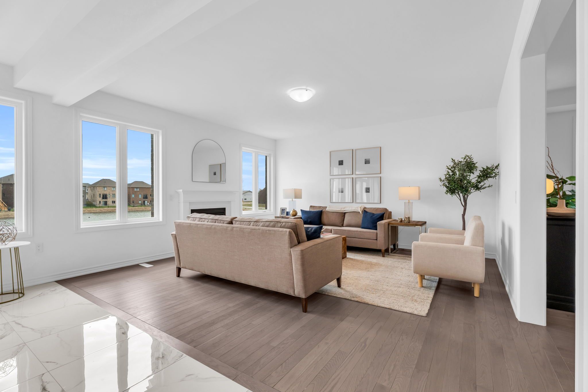 Welcome to this breathtaking, never-lived-in model home-a true showstopper that defines modern luxury and sophistication. Offering approximately 2,850 sq. Ft. Of impeccably designed living space in a rapidly growing neighbourhood, this is a rare opportunity that won't last long. From the moment you enter, you're greeted with refined finishes and a sense of elevated living throughout. Featuring four spacious bedrooms, each with its own private ensuite, this home delivers an exceptional level of comfort, privacy, and upscale convenience. The primary suite is nothing short of a private retreat, showcasing a massive walk-in closet and a spa-inspired ensuite with double sinks, a glass-enclosed shower, and a luxurious soaker tub. At the heart of the home lies a stunning, designer chef's kitchen that is truly magazine-worthy. Featuring a built-in oven and cooktop, this space is highlighted by upgraded quartz countertops, a large centre island, and gleaming oversized tile flooring. Crisp cabinetry, abundant natural light, and refined finishes create the perfect setting for both everyday living and effortless entertaining. The open-concept layout flows seamlessly into the family room, a warm and inviting space designed for both relaxation and gathering. Anchored by a striking gas fireplace with a timeless white mantel and clean architectural detailing, this room creates an elegant focal point. Flanked by large windows that flood the space with natural light and frame tranquil views, the family room offers a perfect balance of comfort and sophistication. Enjoy carpet-free living throughout the main floor. Step outside from the walkout basement backing onto a tranquil pond, offering a serene backdrop and endless potential to create your own outdoor oasis. Move-in ready and curated with luxurious upgrades throughout, this exceptional home shows 10+++ and stands out as a true masterpiece-a must-see for buyers seeking a turnkey, high-end lifestyle.