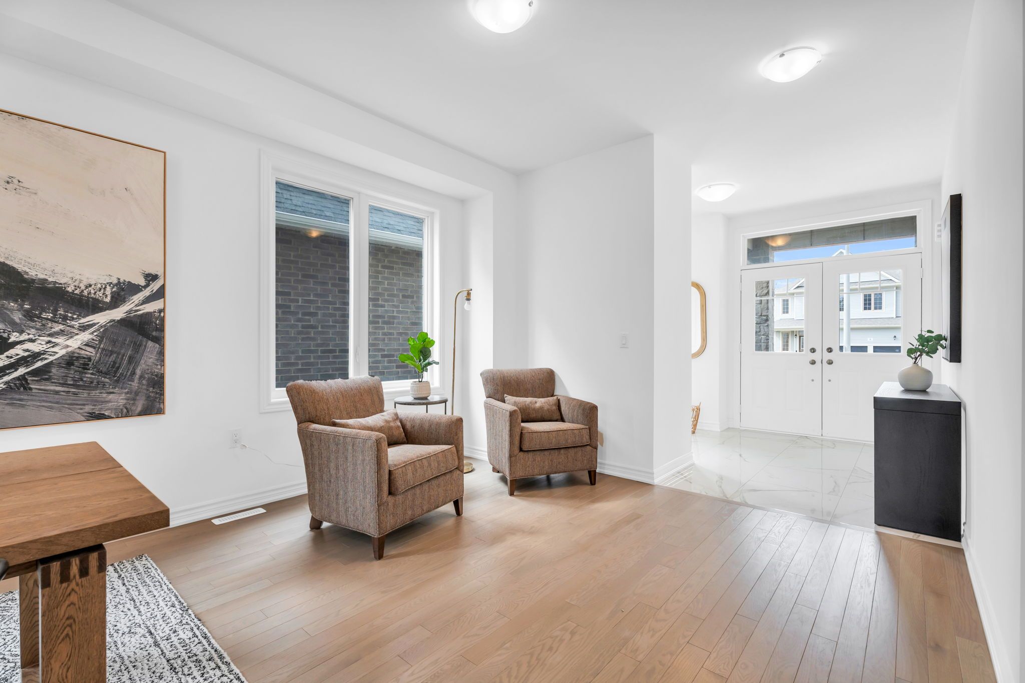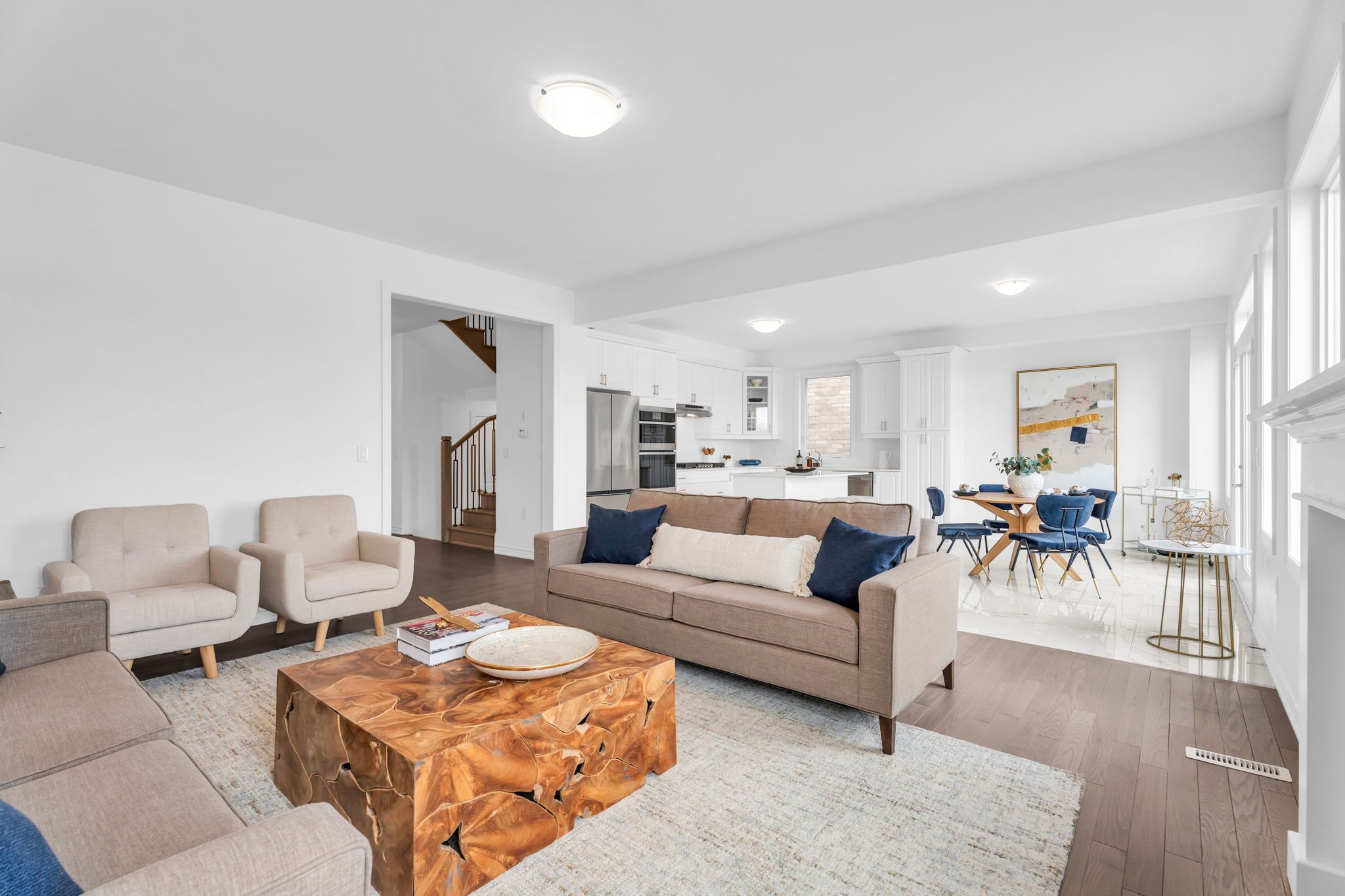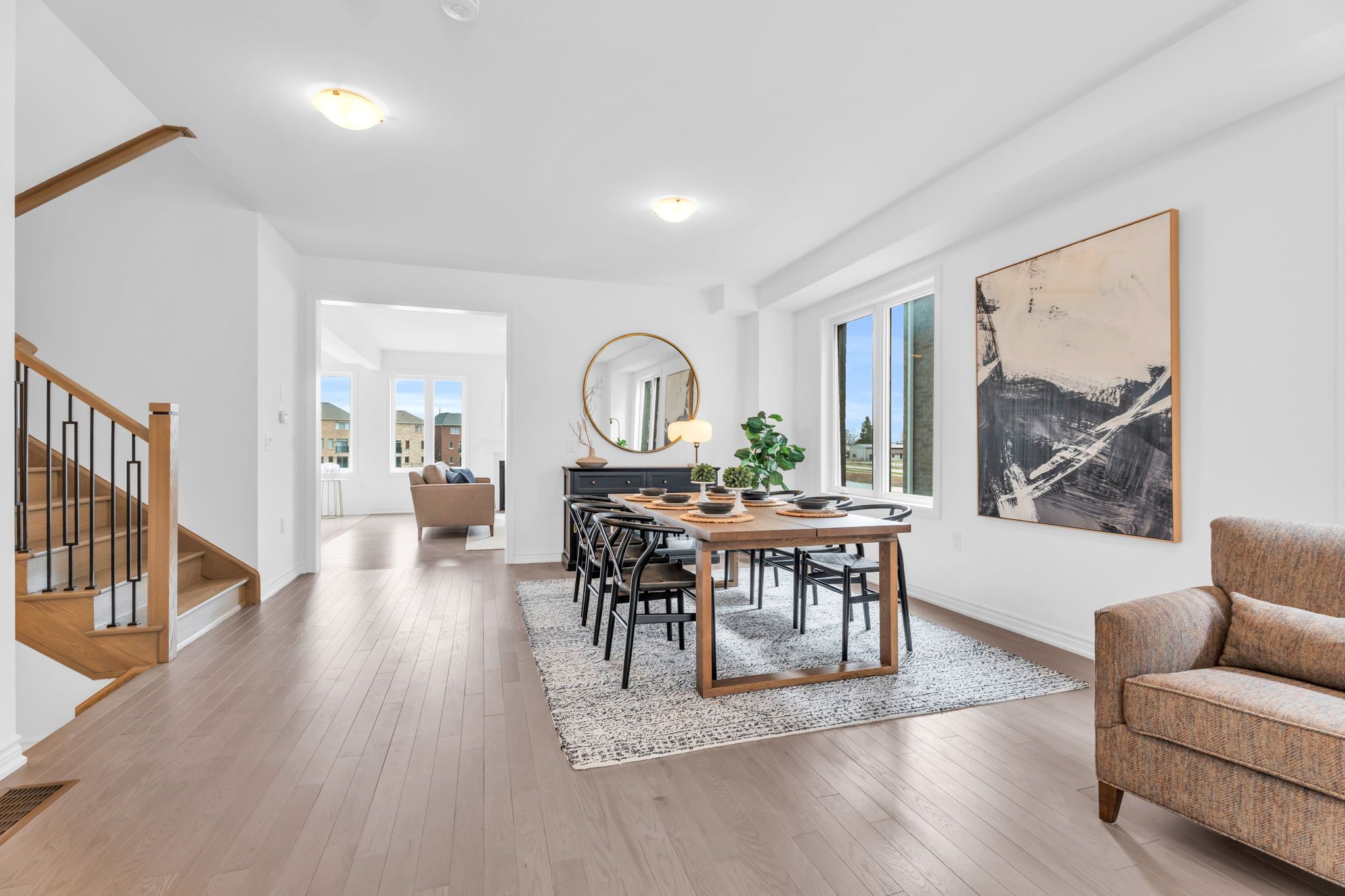 Welcome to this breathtaking, never-lived-in model home-a true showstopper that defines modern luxury and sophistication. Offering approximately 2,850 sq. Ft. Of impeccably designed living space in a rapidly growing neighbourhood, this is a rare opportunity that won't last long. From the moment you enter, you're greeted with refined finishes and a sense of elevated living throughout. Featuring four spacious bedrooms, each with its own private ensuite, this home delivers an exceptional level of comfort, privacy, and upscale convenience. The primary suite is nothing short of a private retreat, showcasing a massive walk-in closet and a spa-inspired ensuite with double sinks, a glass-enclosed shower, and a luxurious soaker tub. At the heart of the home lies a stunning, designer chef's kitchen that is truly magazine-worthy. Featuring a built-in oven and cooktop, this space is highlighted by upgraded quartz countertops, a large centre island, and gleaming oversized tile flooring. Crisp cabinetry, abundant natural light, and refined finishes create the perfect setting for both everyday living and effortless entertaining. The open-concept layout flows seamlessly into the family room, a warm and inviting space designed for both relaxation and gathering. Anchored by a striking gas fireplace with a timeless white mantel and clean architectural detailing, this room creates an elegant focal point. Flanked by large windows that flood the space with natural light and frame tranquil views, the family room offers a perfect balance of comfort and sophistication. Enjoy carpet-free living throughout the main floor. Step outside from the walkout basement backing onto a tranquil pond, offering a serene backdrop and endless potential to create your own outdoor oasis. Move-in ready and curated with luxurious upgrades throughout, this exceptional home shows 10+++ and stands out as a true masterpiece-a must-see for buyers seeking a turnkey, high-end lifestyle.