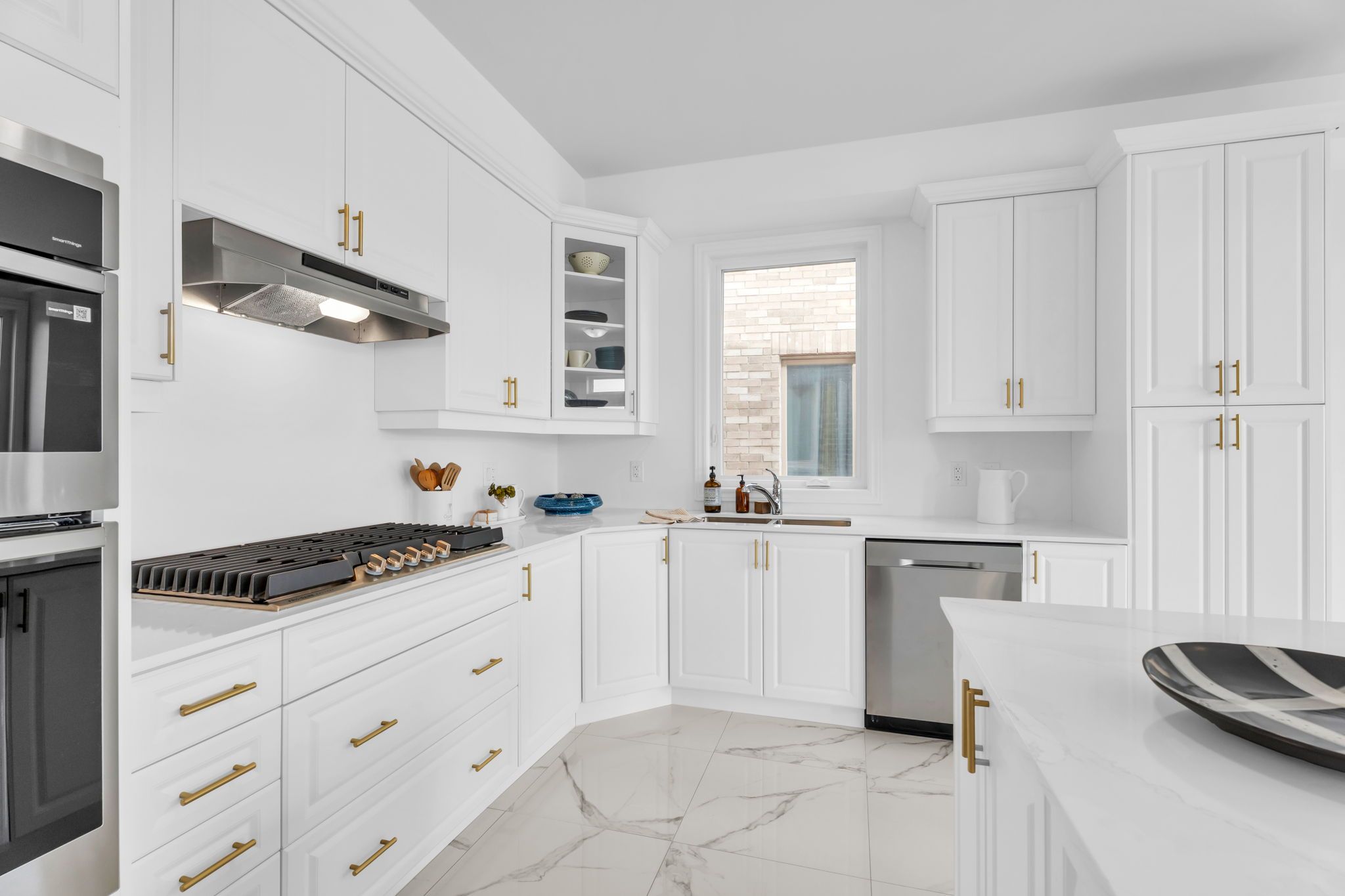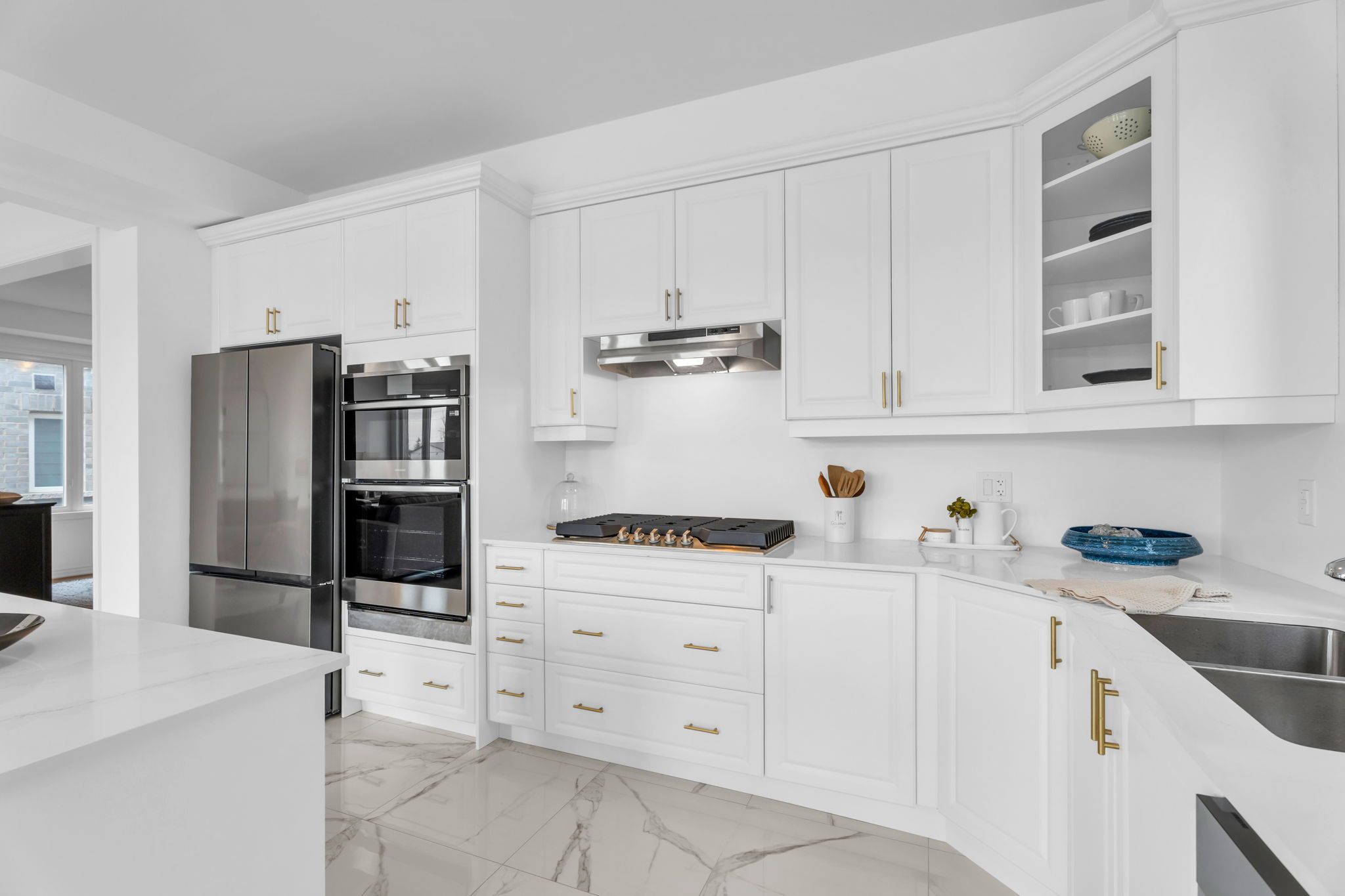 • Designer chef's kitchen with upgraded quartz countertops and abundant natural light.