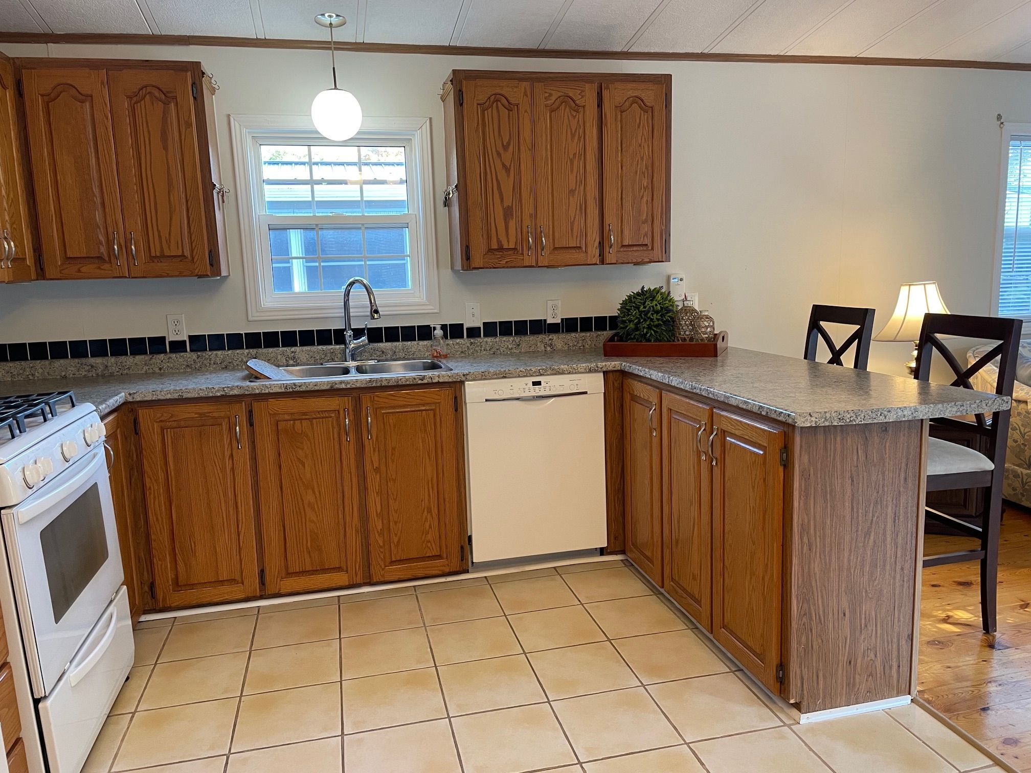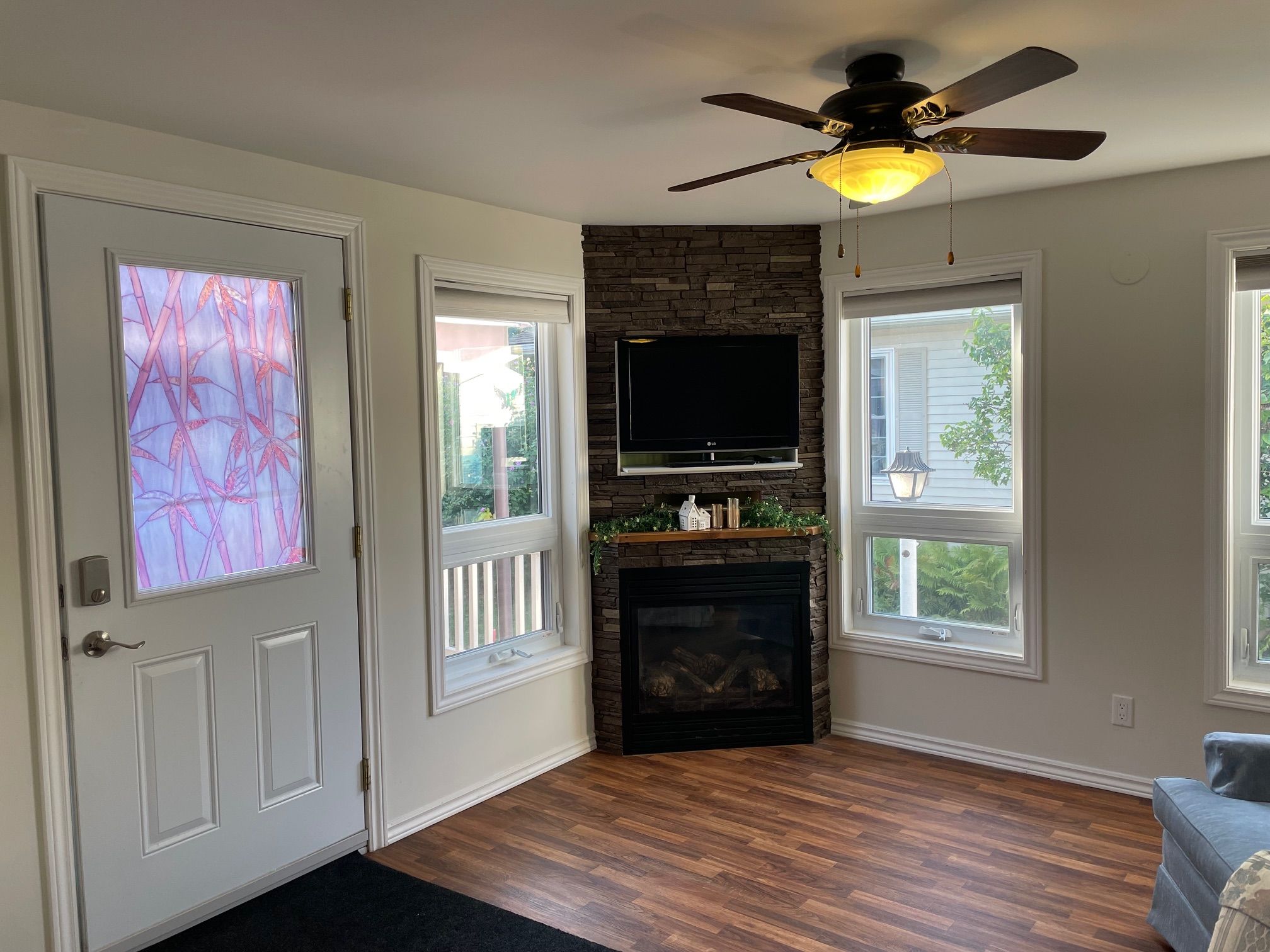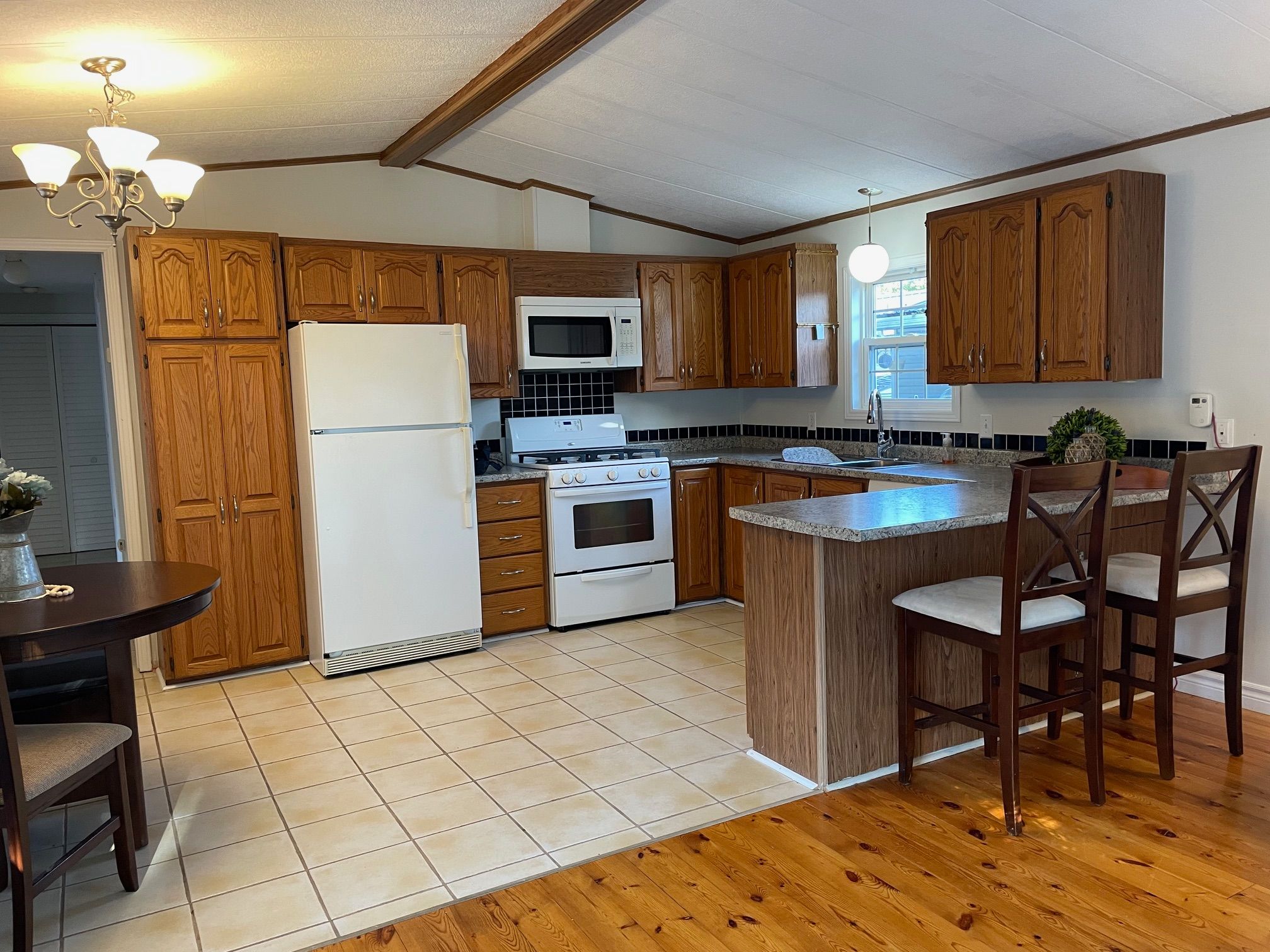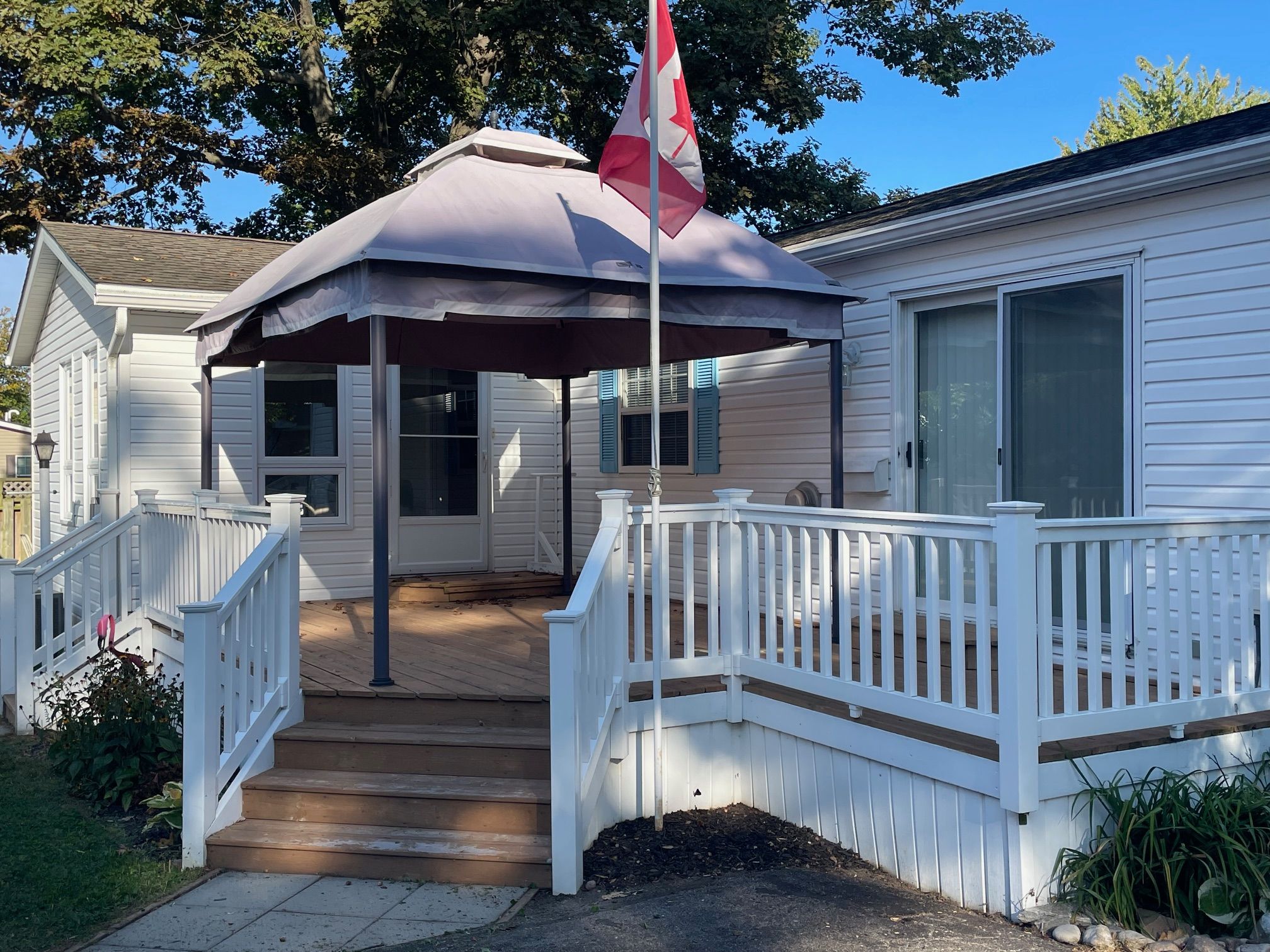 Look what has just hit the market!!! An affordable, well maintained, bright and cheery spacious 2 bedroom, 2 bathroom year round home located at 9 algonquin lane in the highly sought after land lease adult lifestyle lakefront community known as meneset on the lake could be your next home. The well designed interior floor plan consists of a large open concept kitchen lined with oak cabinets, dining area and living room with beautiful hardwood floors towards the front of the home. The 2nd bedroom and storage closets are located in the middle of the home with the master bedroom across the back. The addition features a floor to ceiling statement natural gas fireplace in the sitting area with a spacious 2 piece bathroom and separate laundry with storage. This home is heated with a forced air natural gas furnace throughout, a ng wall heater in the living room and ng fireplace in the sitting room. Exterior features include a double paved driveway, a secluded deck at the back of the home, shed with electricity and large deck spanning from the sitting area entrance to the front of the home. Sit under the fixed gazebo which creates perfect space to enjoy summer evenings while entertaining friends and family or simply reading a book. Meneset on the lake is a lifestyle community with an active clubhouse, drive down immaculate beach, paved streets, garden plots and outdoor storage. If you are looking for low maintenance, lifestyle and the beach, look no further! Meneset on the lake has it all!