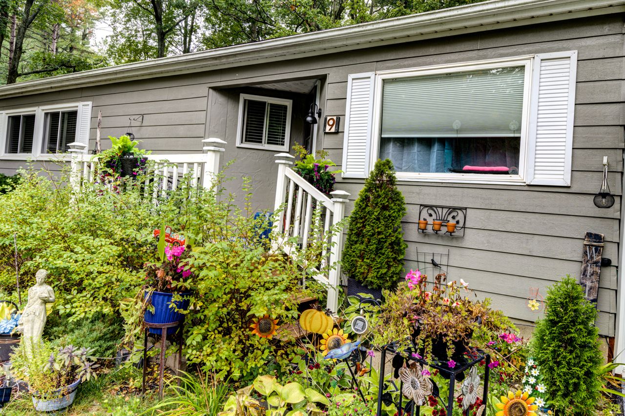 Wake up to the sounds of nature and enjoy the views from your bright sunroom as you drink your morning coffee. Play a round of golf at the onsite course and enjoy afternoon fun by the pool. That's what living is like here. Welcome to 9 allan drive. This home and community offer everything you could ask for! Located in home town community on a cul-d-sac. This home features its own enclosed studio/workshop area off of driveway, private yard, sheds with plenty of storage and plenty of parking. Inside this spacious and bright home you have a large kitchen, living room and dining area all great for entertaining family and friends. New flooring and paint throughout. 2 bedrooms and 2 recently renovated bathrooms make this home a pleasure to be in. Enjoy golf, rec hall, outdoor pool all included when living here. Land lease amount $750 per month and estimated monthly taxes site$36. 69 home $102. 54