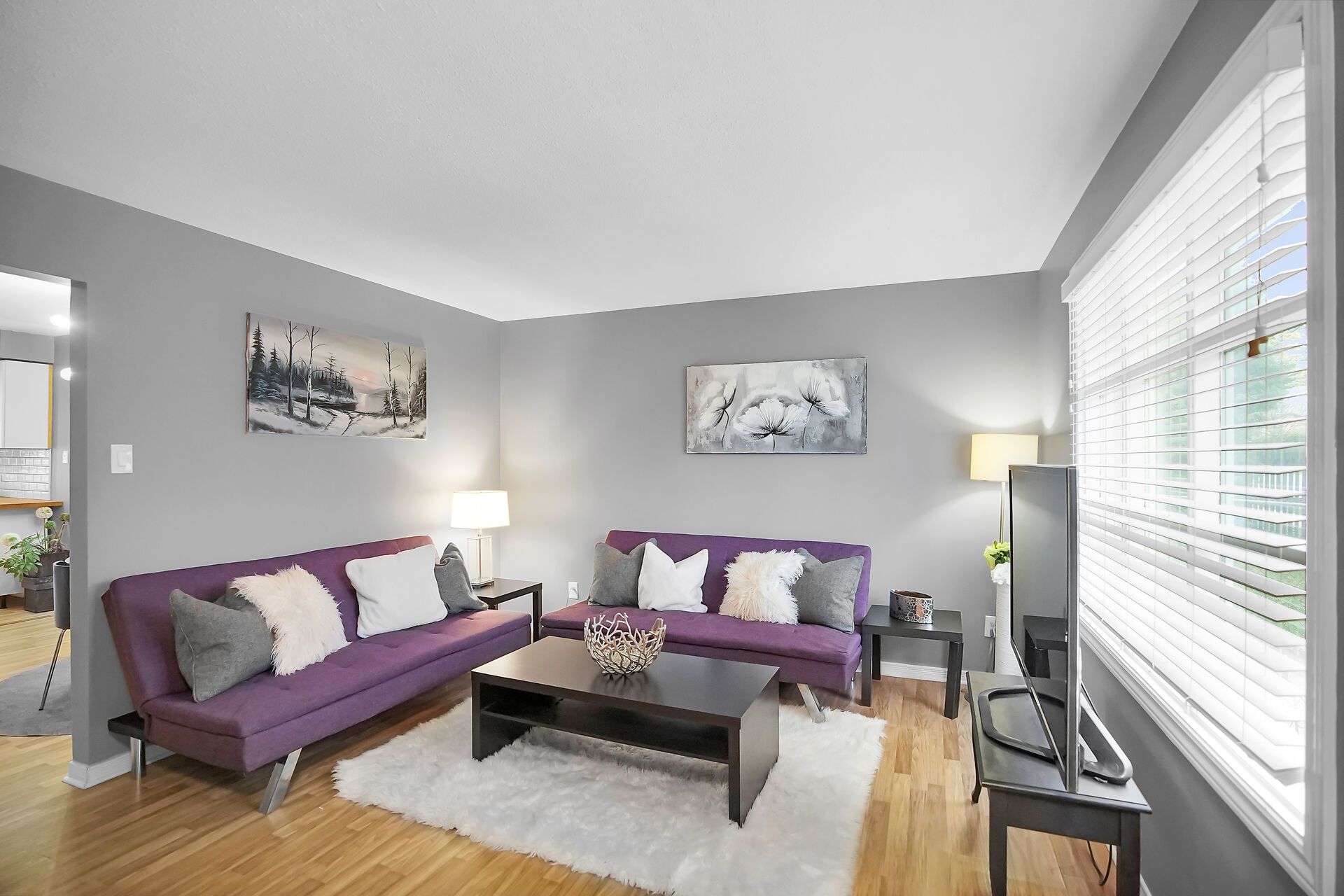 • Bright living space with large windows for plenty of natural light.