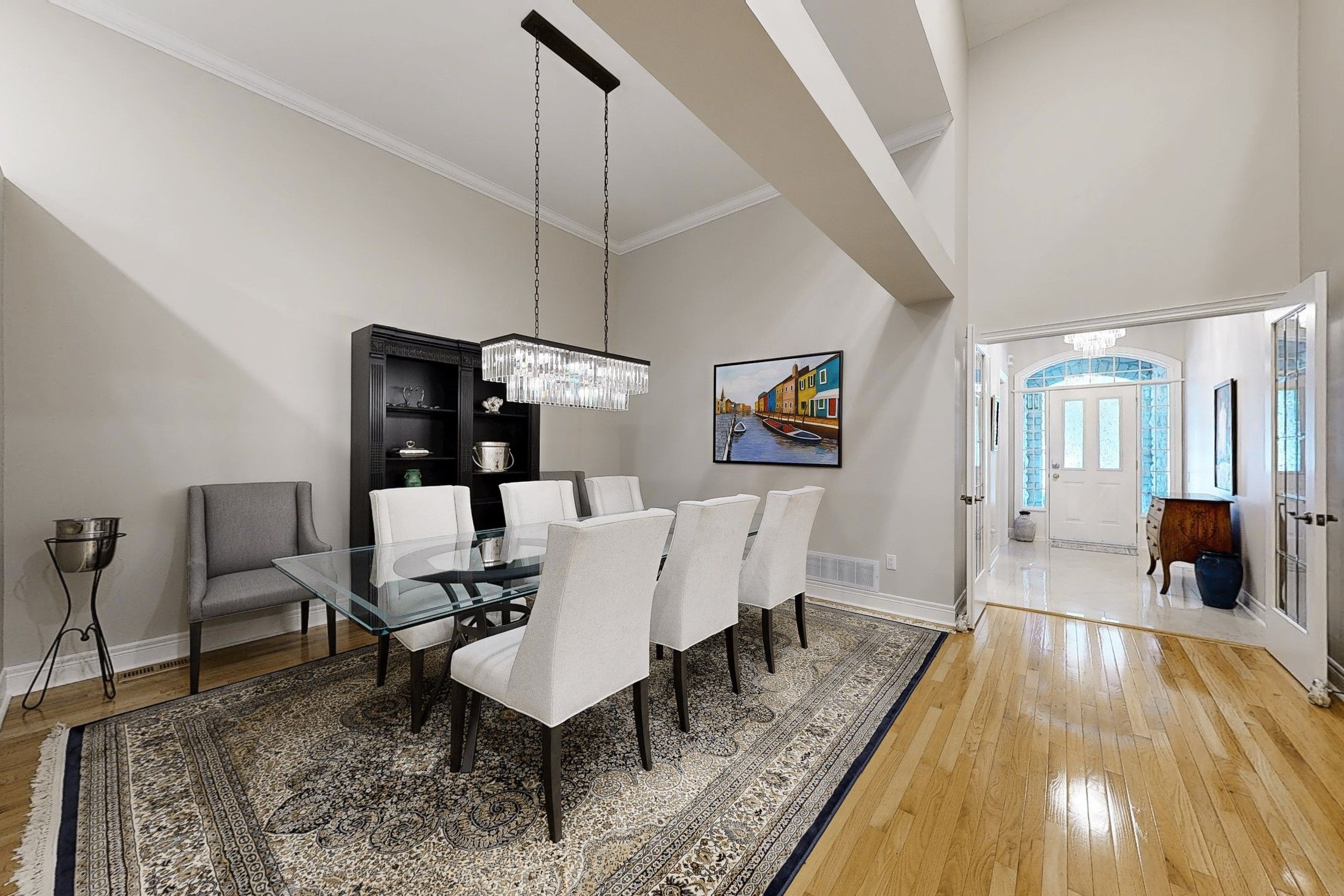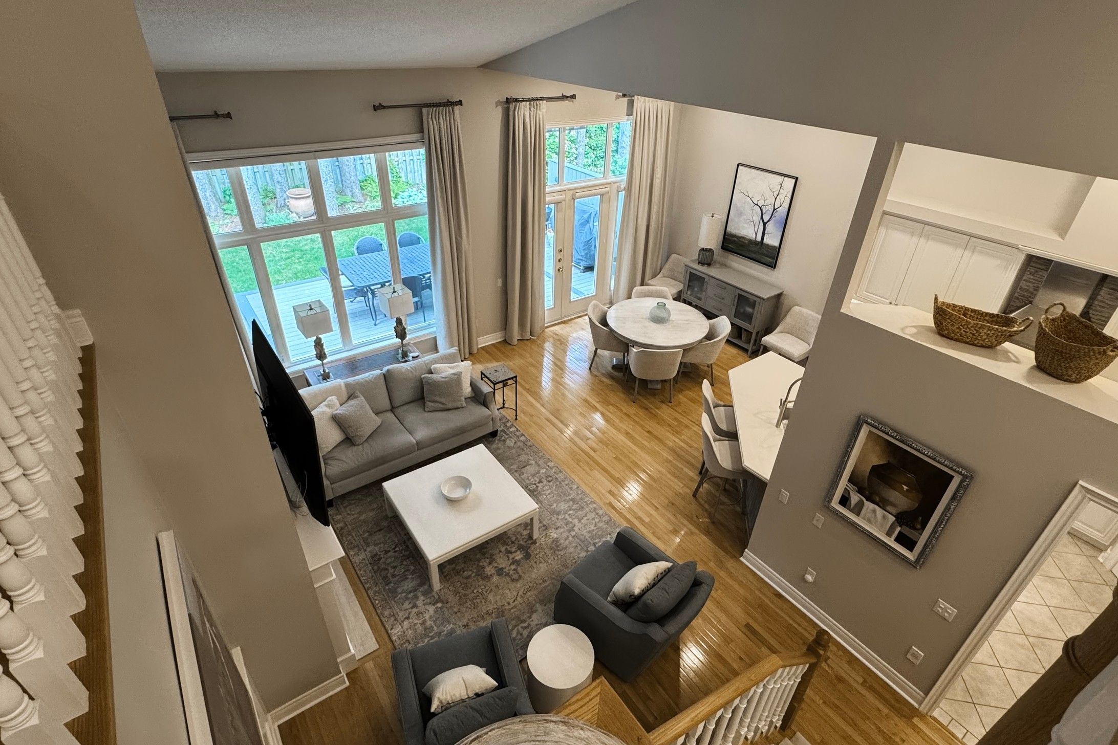 • Bright main floor with an open living, dining area, and gourmet kitchen.