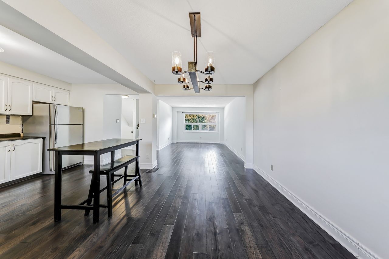 Freshly painted and move-in ready, this bright and spacious end-unit townhouse offers modern living in a highly desirable area. The open-concept kitchen features a stylish backsplash, stainless steel appliances, and plenty of natural light - perfect for entertaining family and friends. The upper level includes three generously sized bedrooms and a beautifully updated bathroom. The lower level offers a comfortable recreation room with a walk-out to the backyard, ideal for relaxing or hosting guests. Enjoy the fantastic amenities including an outdoor pool, meeting room, and visitor parking. Conveniently located within walking distance to shopping, parks, schools, and public transit. Perfect for first-time home buyers or families looking for comfort and convenience!