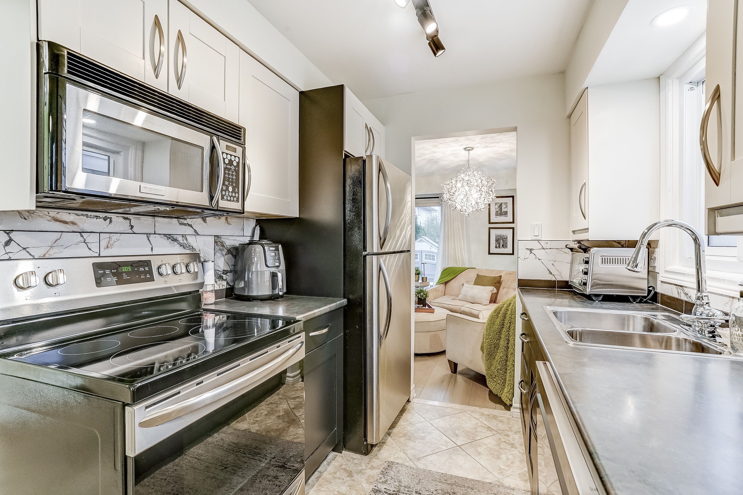 Experience the finest of waterdown just minutes from your doorstep. Delight in nearby restaurants, boutique shops, and cozy cafes, all within easy reach. This rare gem is tucked away on a quiet court, ensuring minimal traffic and serene surroundings. Situated in a prime east-end location, the commute is effortless: just minutes to aldershot go, highway 403, qew, and highway 407. The lengthy driveway accommodates over two vehicles with ease. Additionally, the home features professionally installed gutter guards, reducing maintenance and protecting against water damage. Step inside to a freshly painted interior that welcomes you home. The living room and dining room boast brand new laminate flooring, adding warmth and modern style. All light fixtures and door handles throughout the home have been thoughtfully updated, enhancing both functionality and aesthetic appeal. The charming galley style eat-in kitchen boasts stainless steel appliances and rich maple cabinetry, seamlessly connecting to the dining room, ideal for entertaining guests. The living area opens to a fully fenced backyard with ample space for barbecues or sun soaked relaxation. Upstairs, the spacious primary bedroom is bathed in natural light from large windows and shares convenient access to a well-appointed 4-piece bathroom. Two generously sized secondary bedrooms complete the upper level. The lower level features a spacious recreation room complete with a built-in gas fireplace, creating an inviting ambiance ideal for cozy movie nights. Welcome home to a lifestyle where comfort, convenience, and charm converge.
