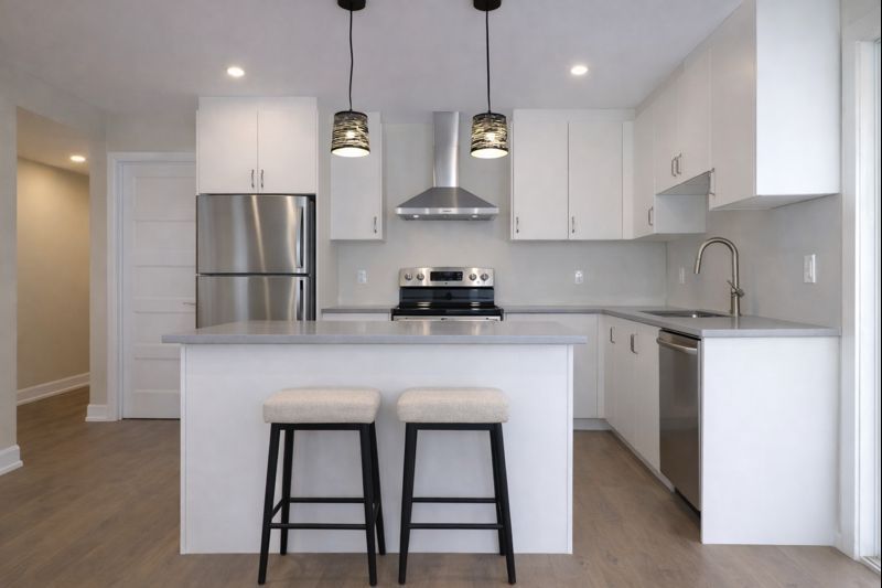 • Bright open-concept layout with a sleek kitchen and in-suite laundry.