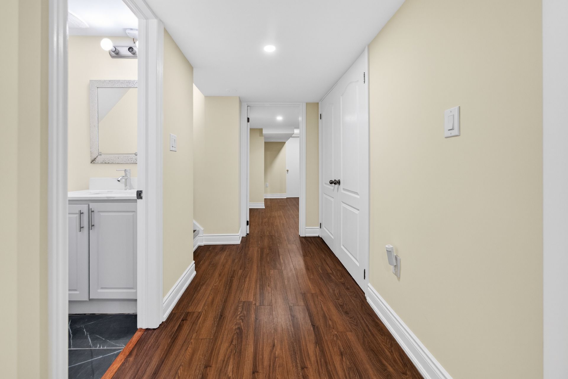 Welcome to this stunning north-facing, upgraded 4-bedroom semi-detached home located in the highly sought-after community of northwest brampton. Offering over 2,400 sq. Ft. Of above-grade living space, this beautifully maintained home is ideal for families, first-time buyers, or investors alike. The home features 9-foot ceilings on both the main and second floors, creating a bright and spacious feel throughout. The main floor is tastefully upgraded with elegant wainscoting, pot lights, and built-in electric fireplaces in both the living and family rooms-perfect for cozy evenings and stylish entertaining. The modern kitchen boasts the latest ceramic tiles, high-end stainless steel appliances (stove, refrigerator, dishwasher), and flows. Seamlessly into the main living areas. California shutters throughout, fresh paint, and contemporary finishes add to the home's move-in-ready appeal. The finished basement with a separate entrance includes one bedroom, a kitchen, and a washroom, offering excellent potential for rental income. Enjoy the convenience of separate laundry areas for the main home and basement. Step outside to a huge wooden deck, ideal for summer entertaining, along with an extended driveway featuring interlocking for added parking and curb appeal. Situated just steps from elementary and secondary schools, parks, mount pleasant go station, grocery stores, banks, and plazas, this home is located in an exceptional family-friendly neighbourhood with everything you need close by. A must-see, tastefully upgraded home with income potential in one of brampton's most desirable areas-don't miss this opportunity!