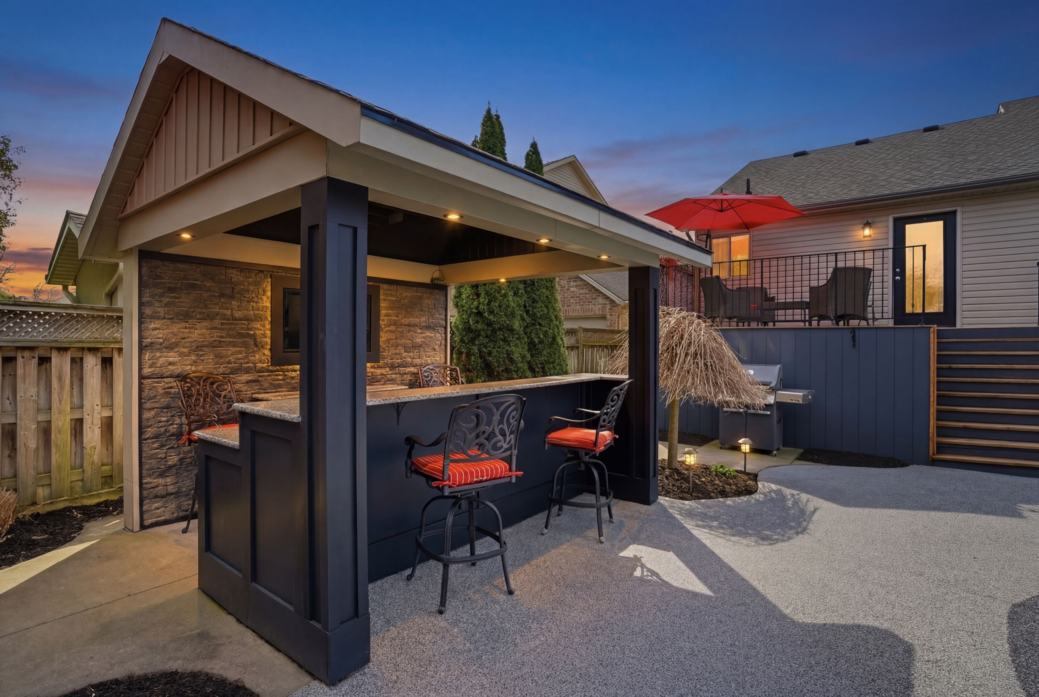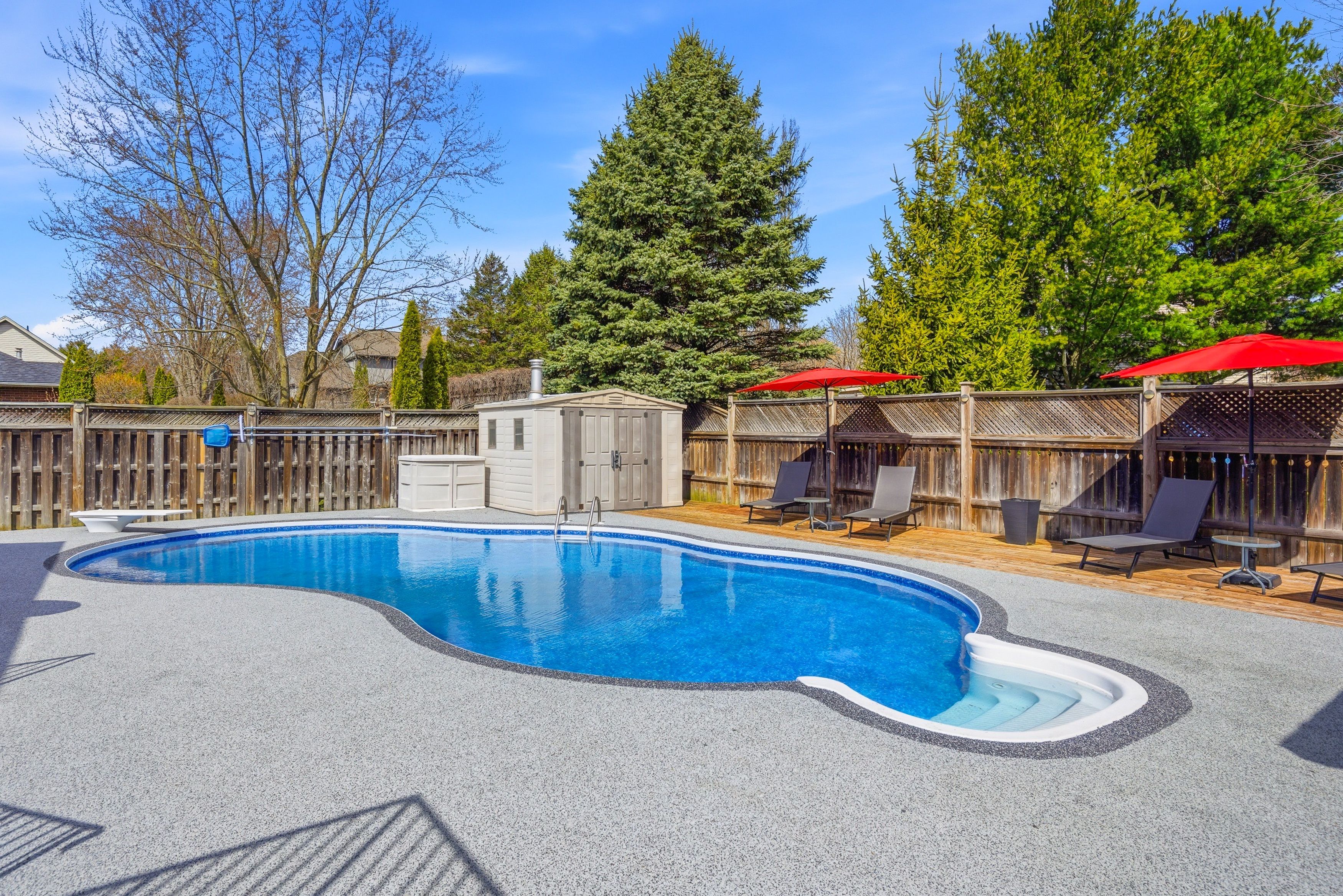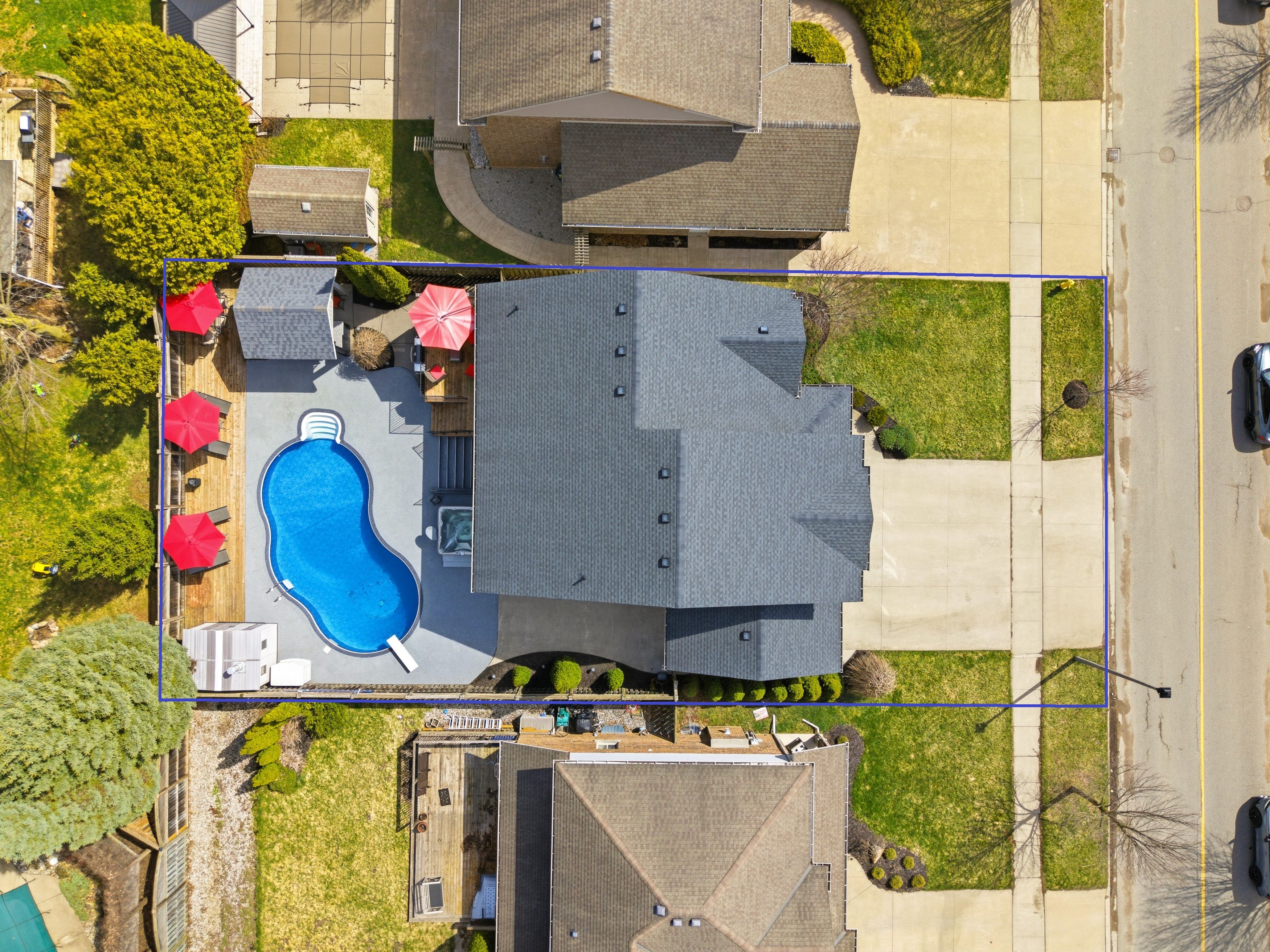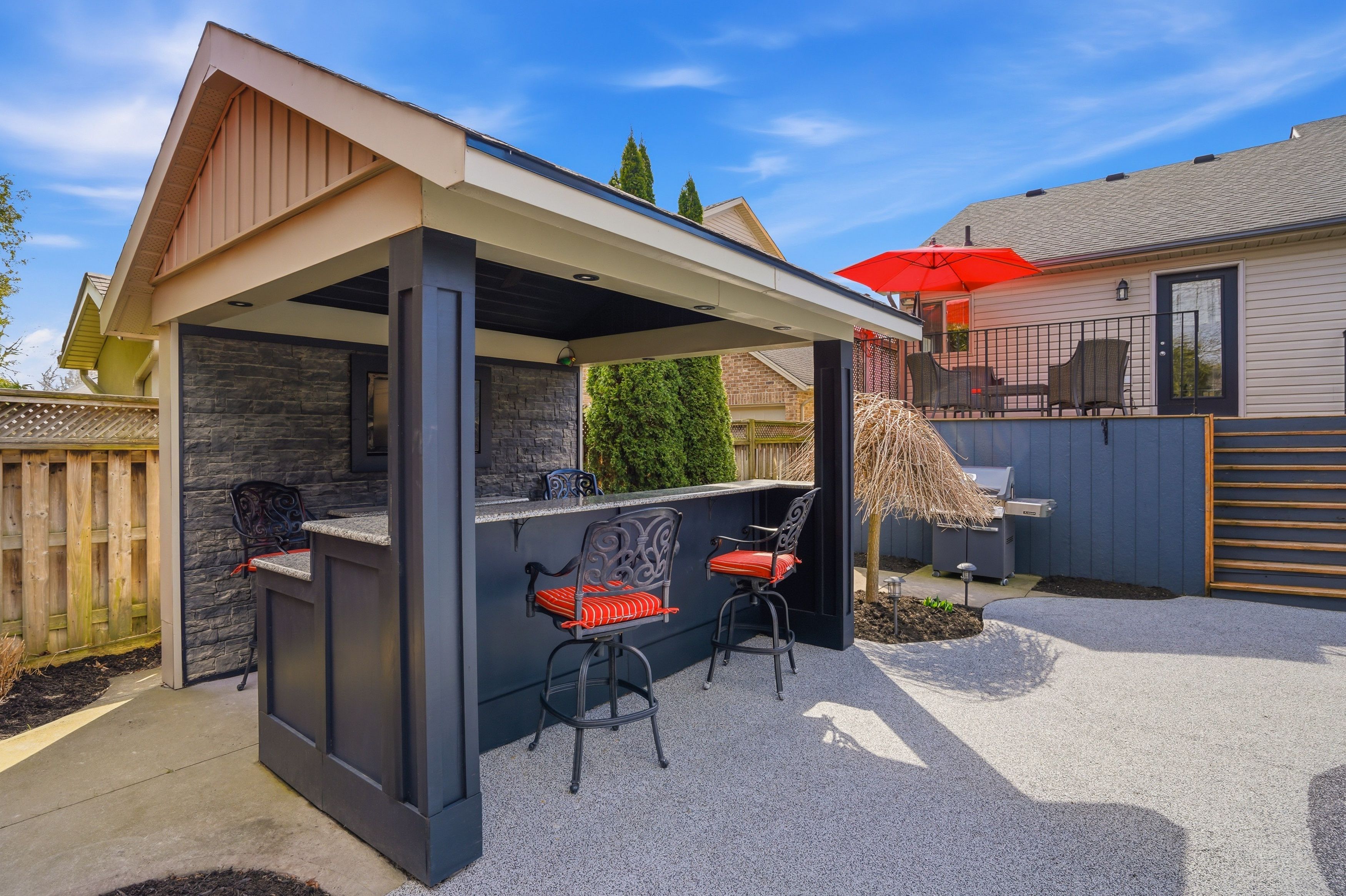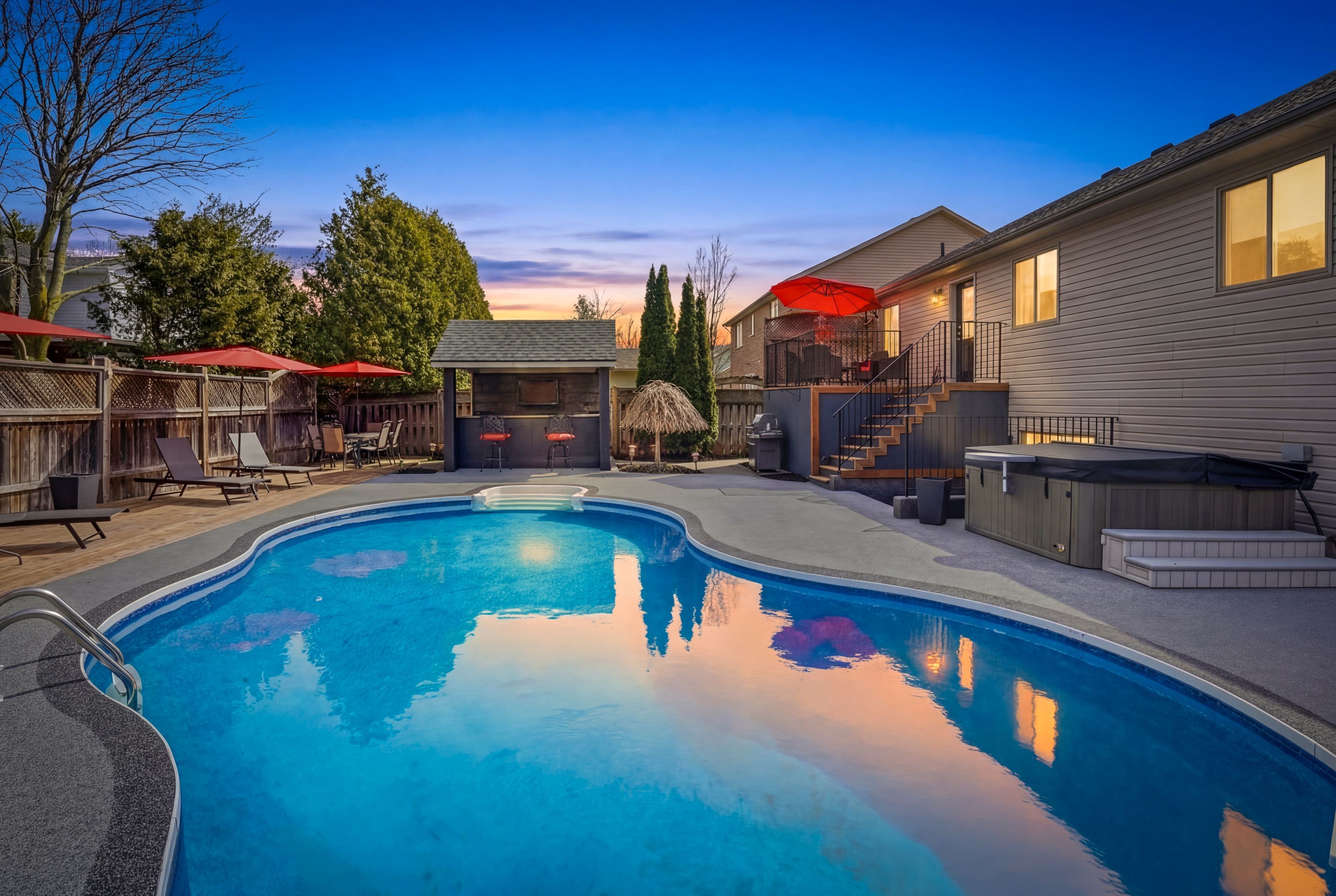 • Stunning backyard oasis featuring an in-ground pool, hot tub, and custom bar.